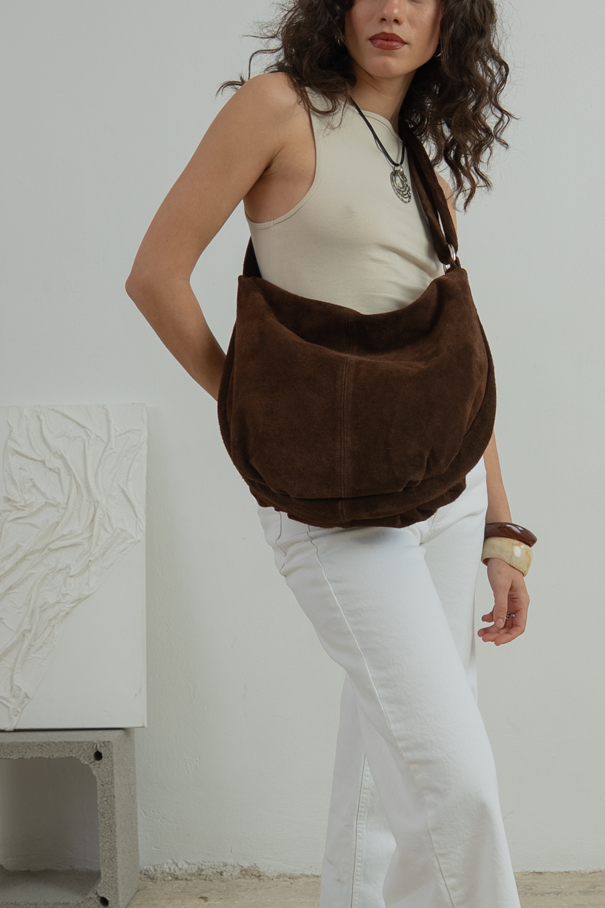 Σουέτ Crossbody τσάντα ώμου σε chocolate brown χρώμα