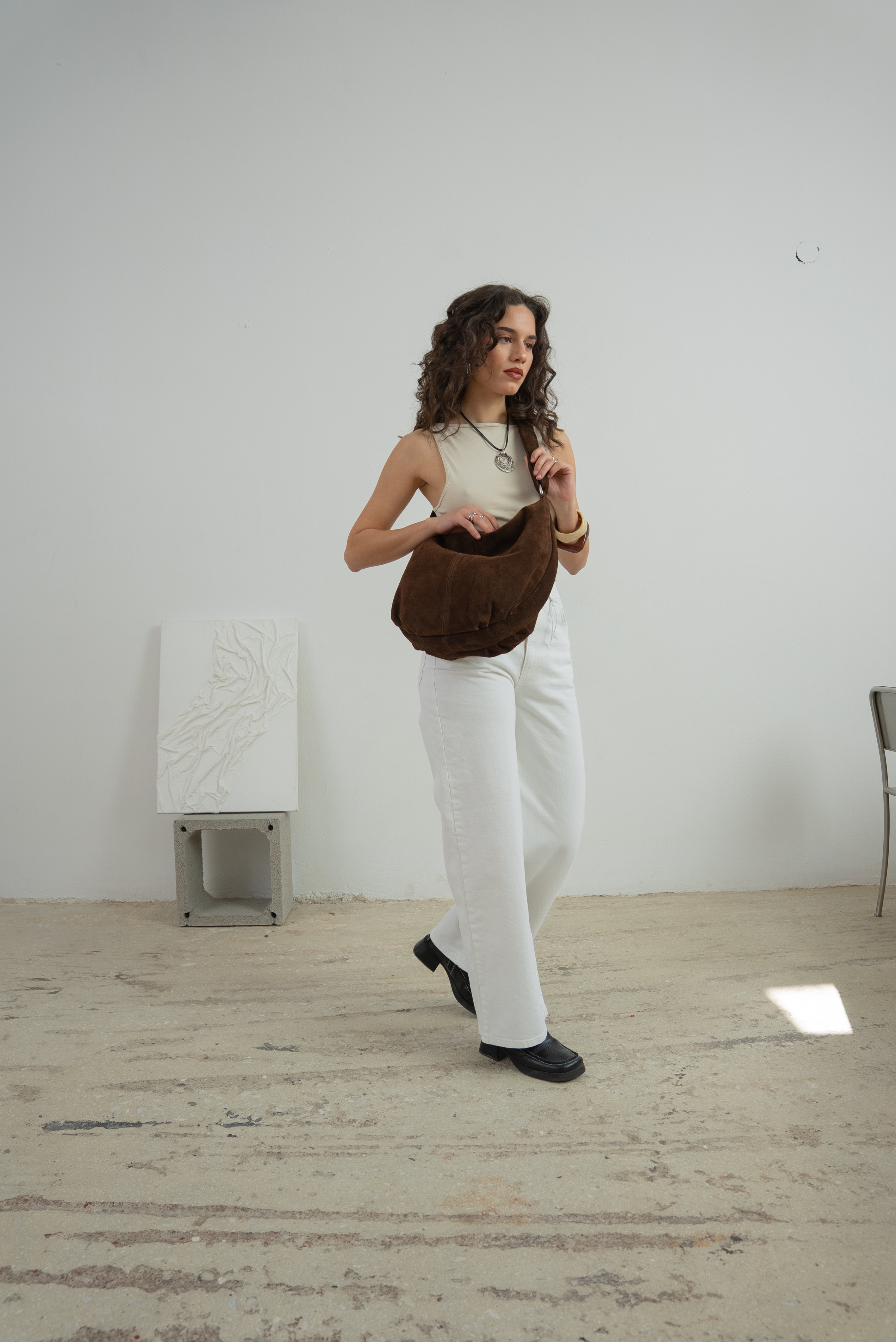 Οι σουέτ/suede τσάντες μας είναι κατασκευασμένες από 100% γνήσιο δέρμα μοσχαριού ή αιγοειδών.