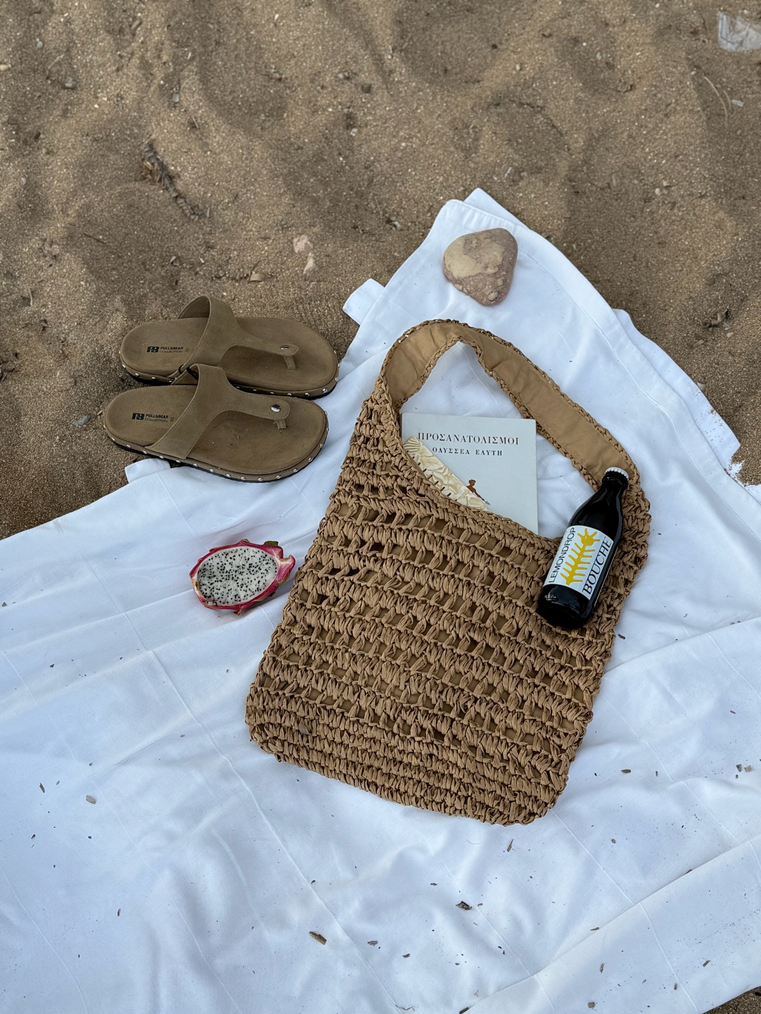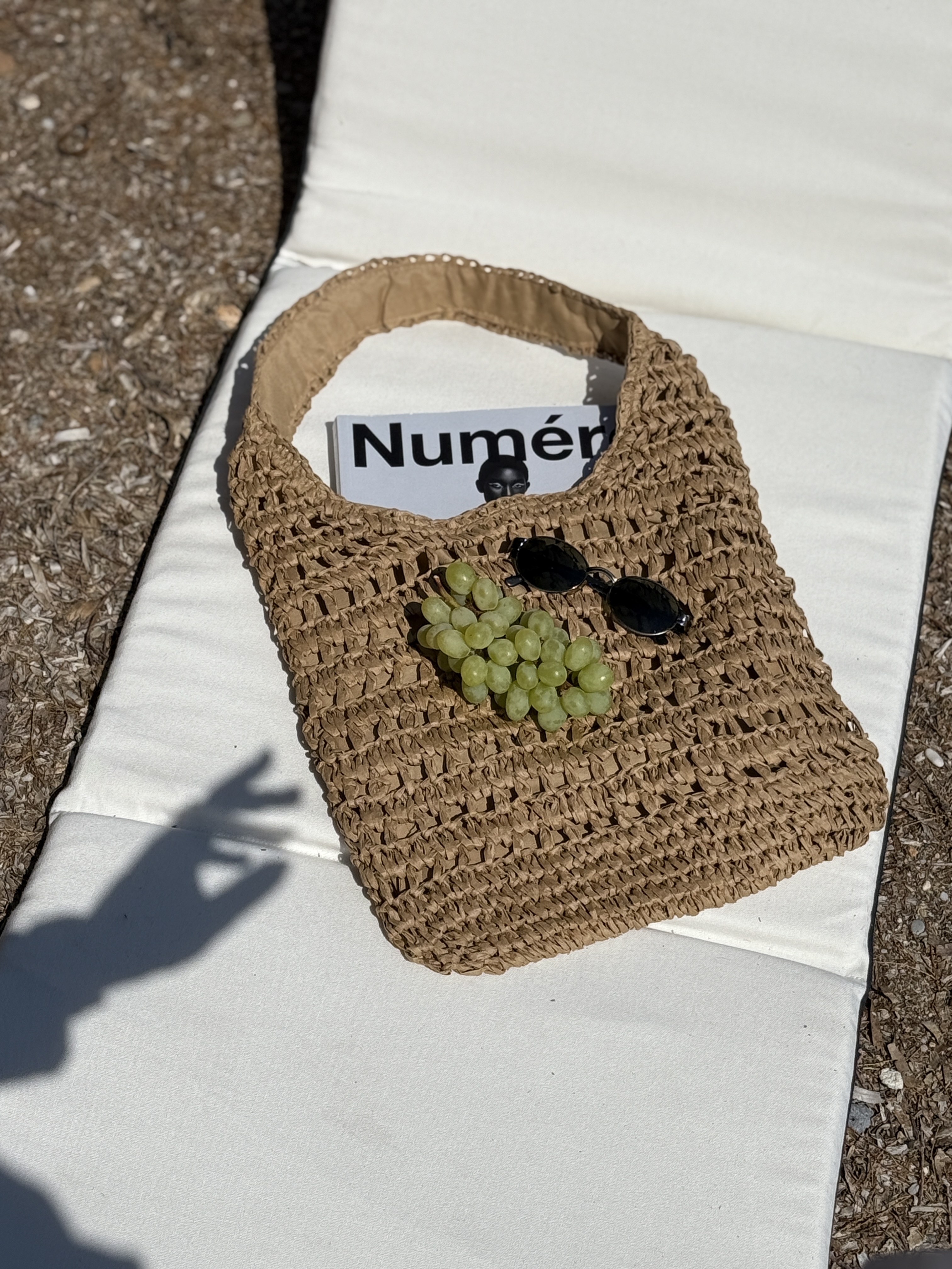 Raffia styled shoulder bag in warm beige