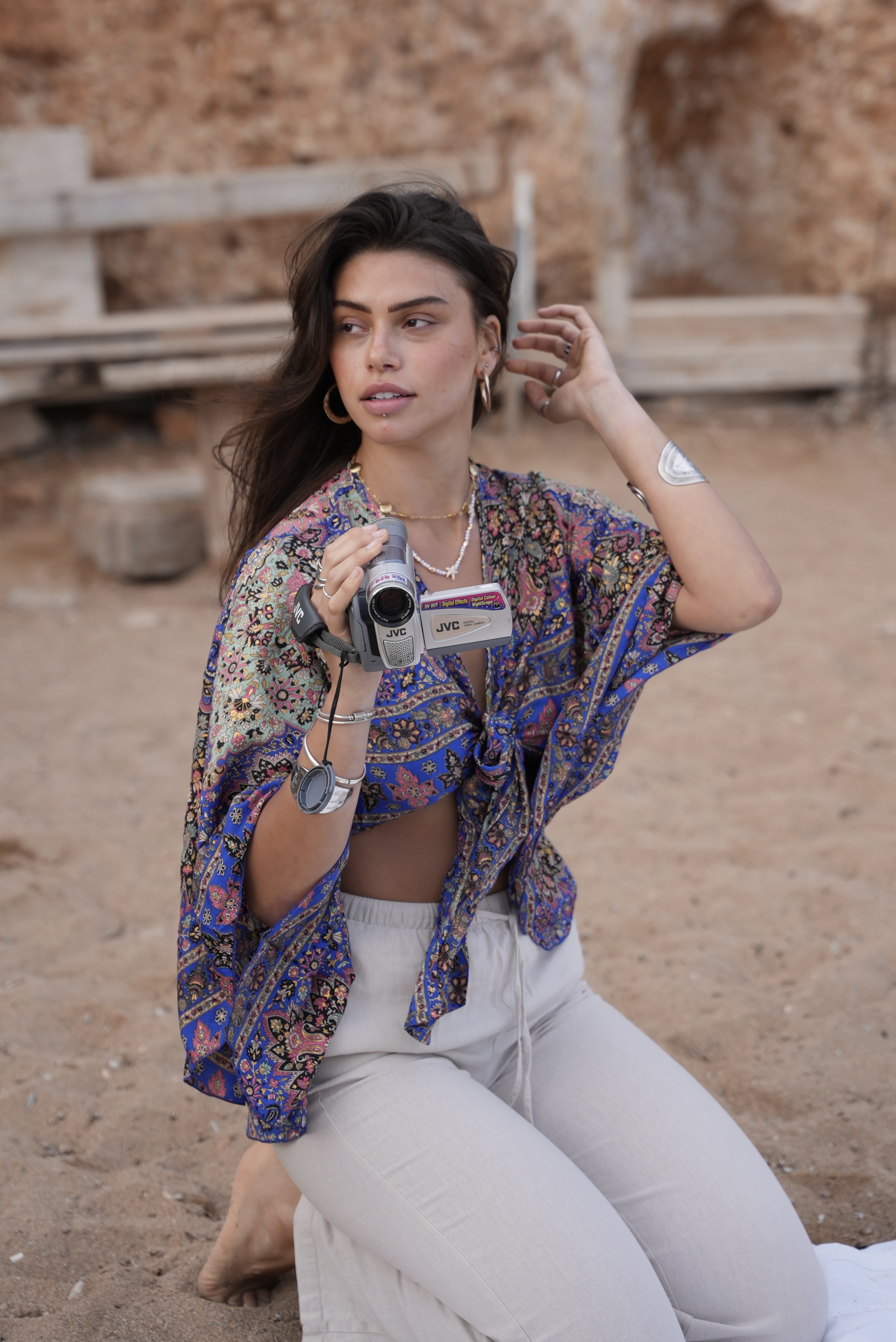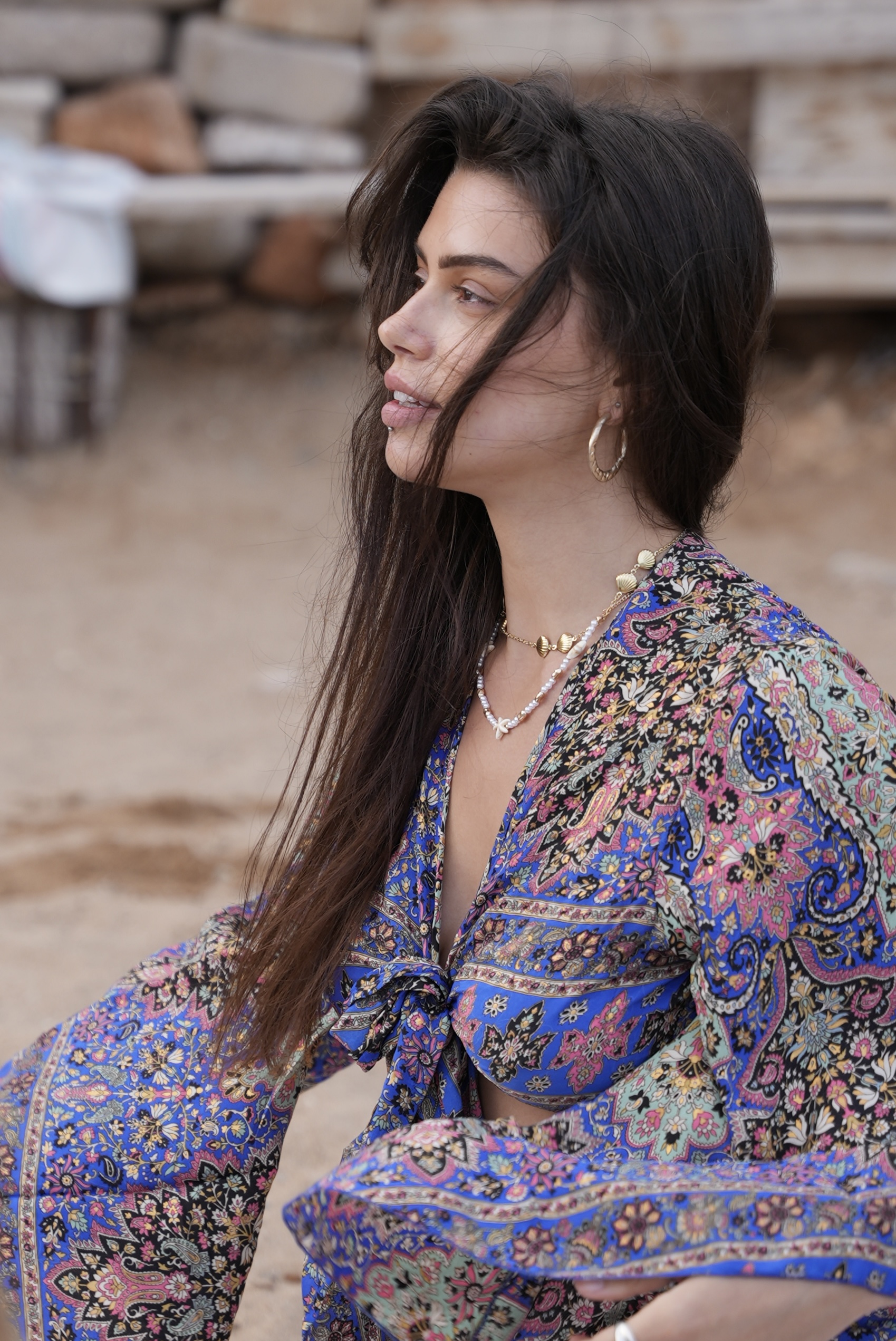 Wrap Shirt with gold details in violet