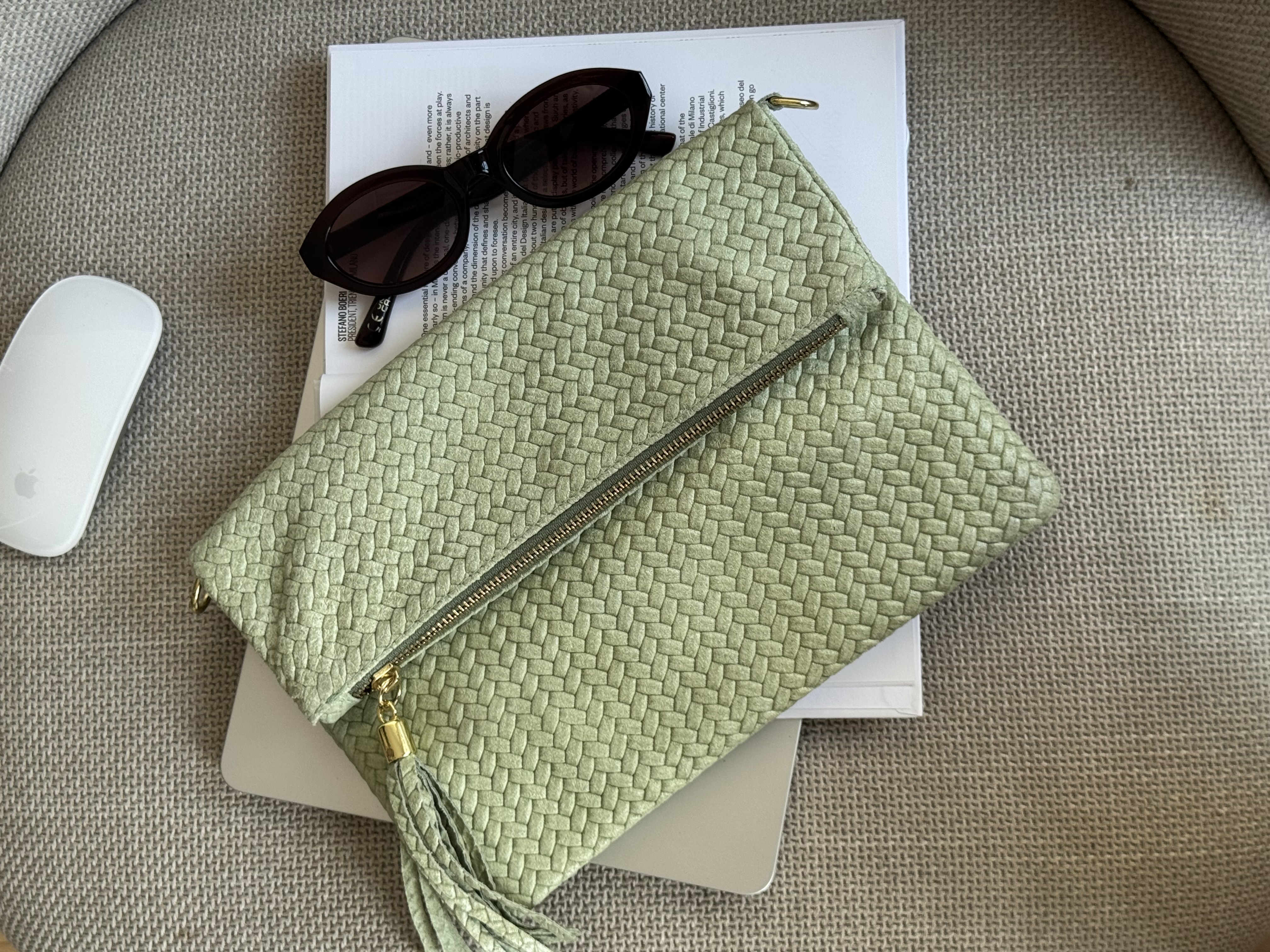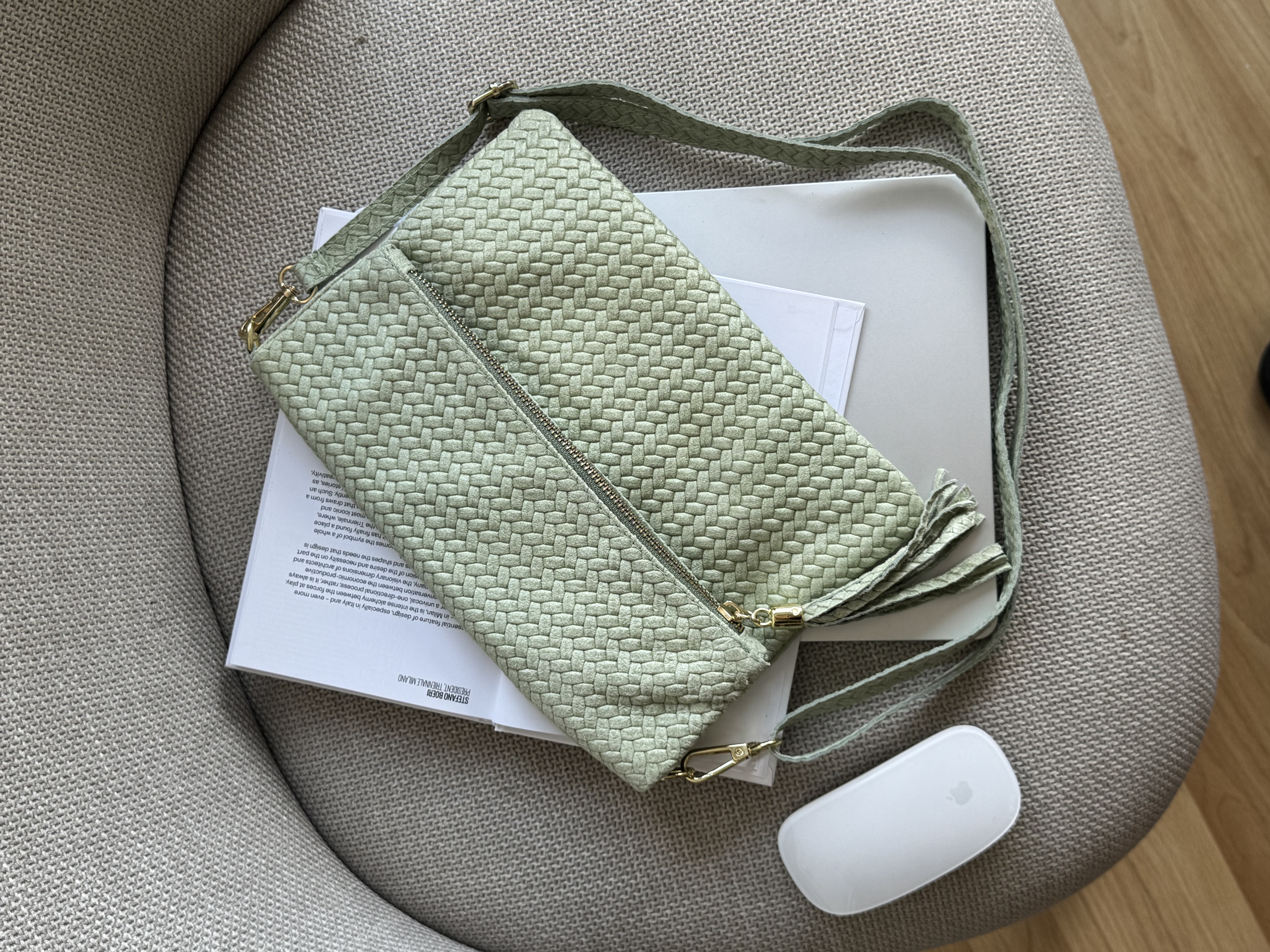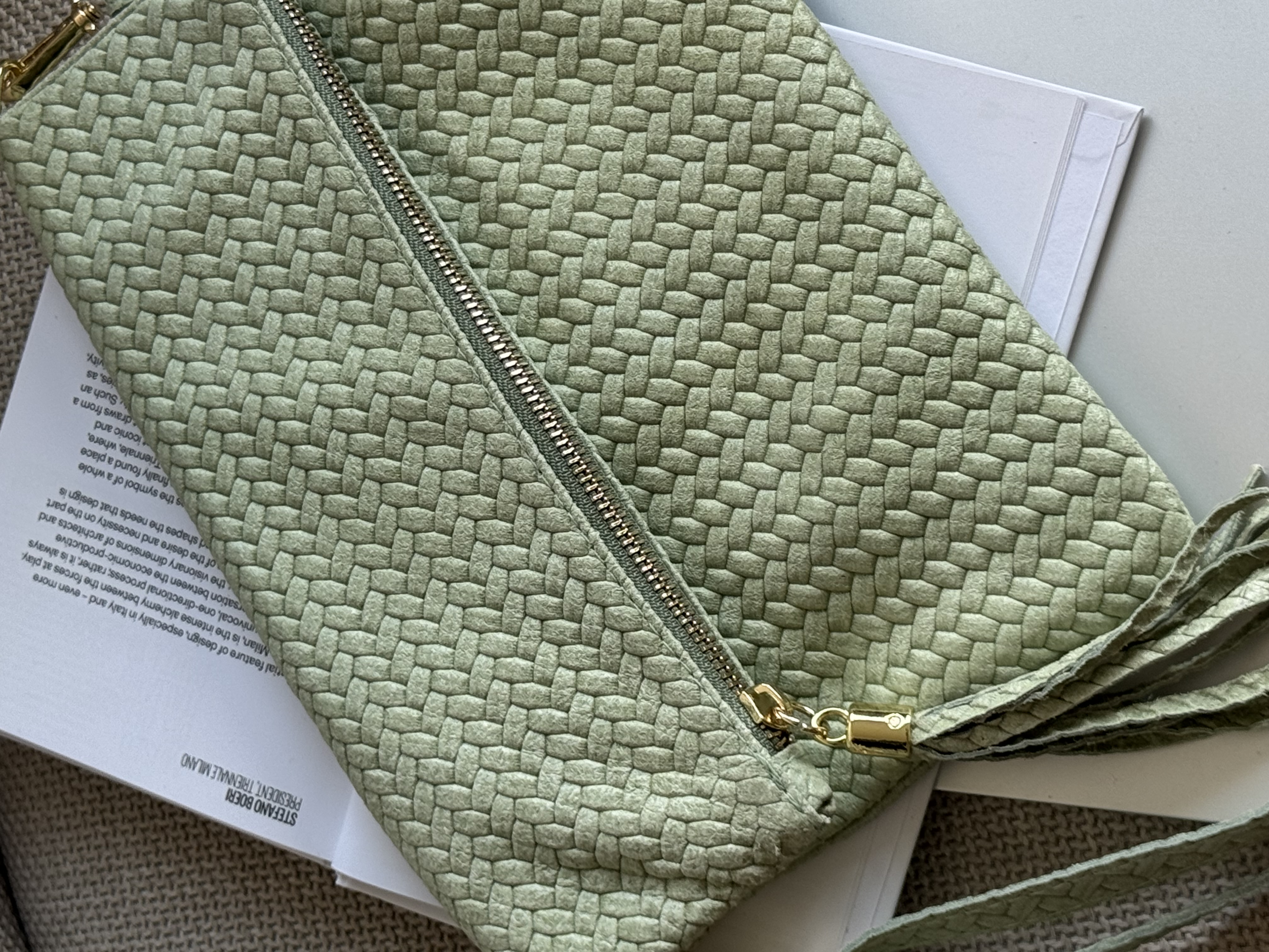 Genuine Leather Boho flap bag with adjustable strap in pistachio