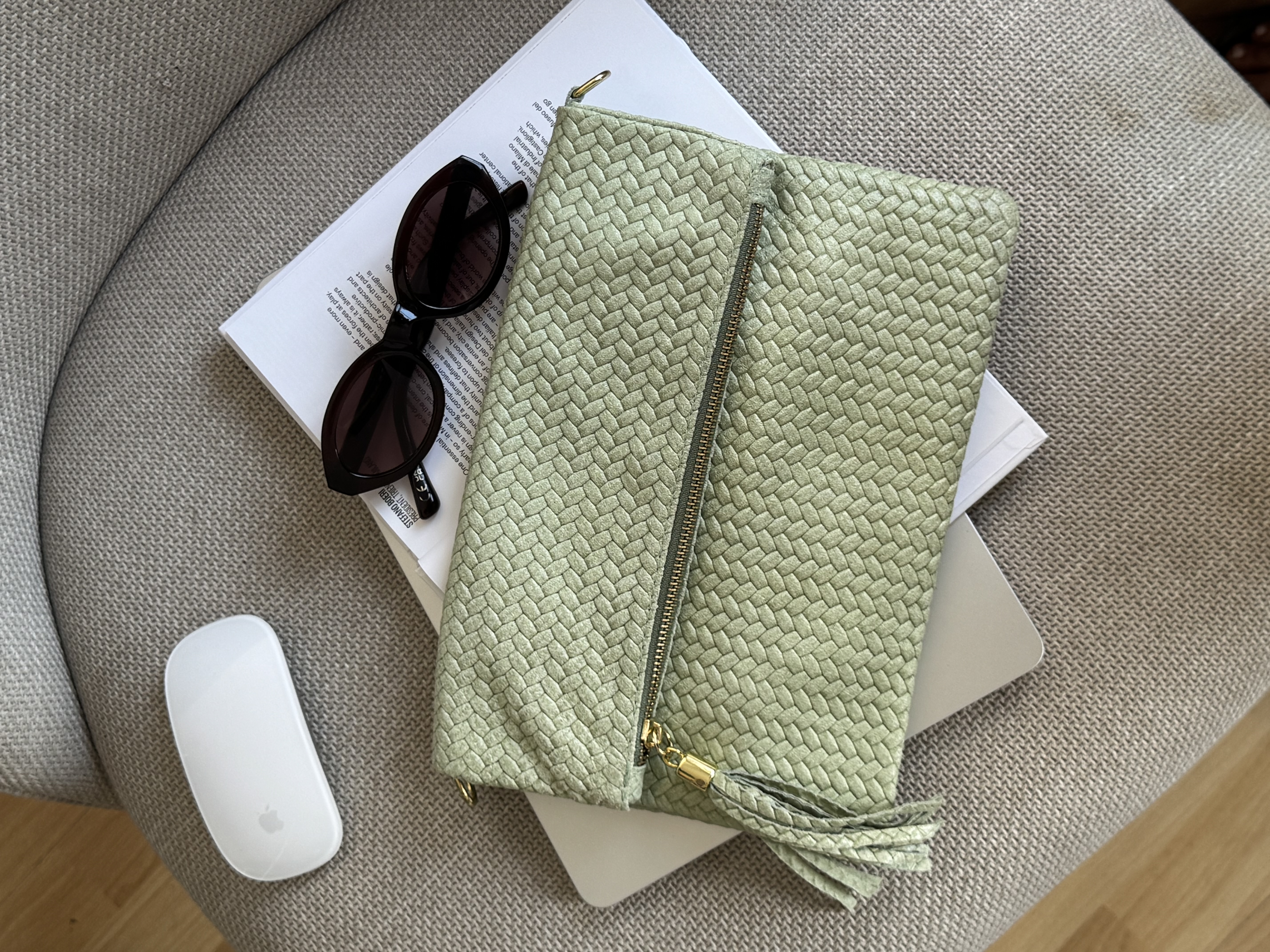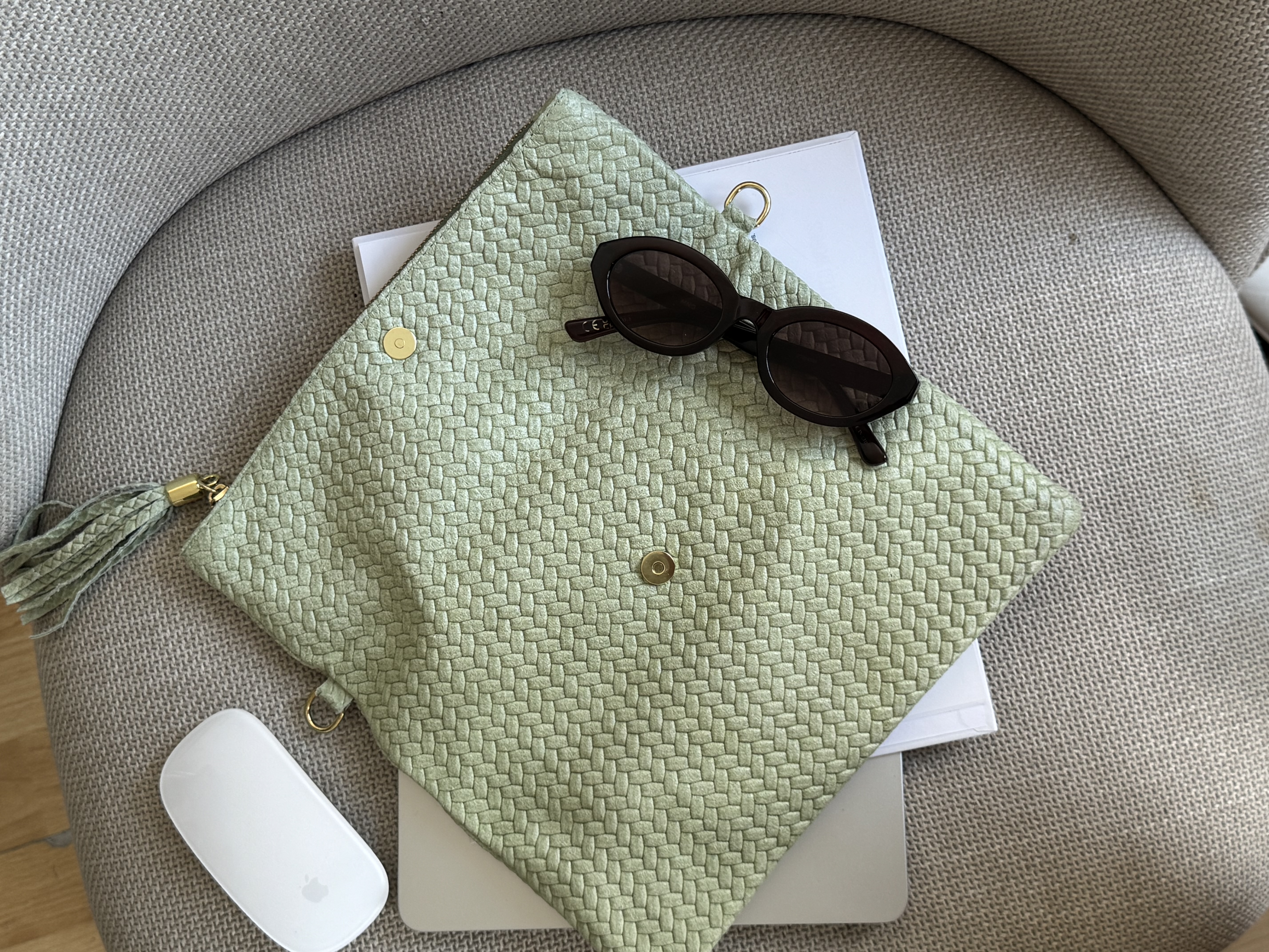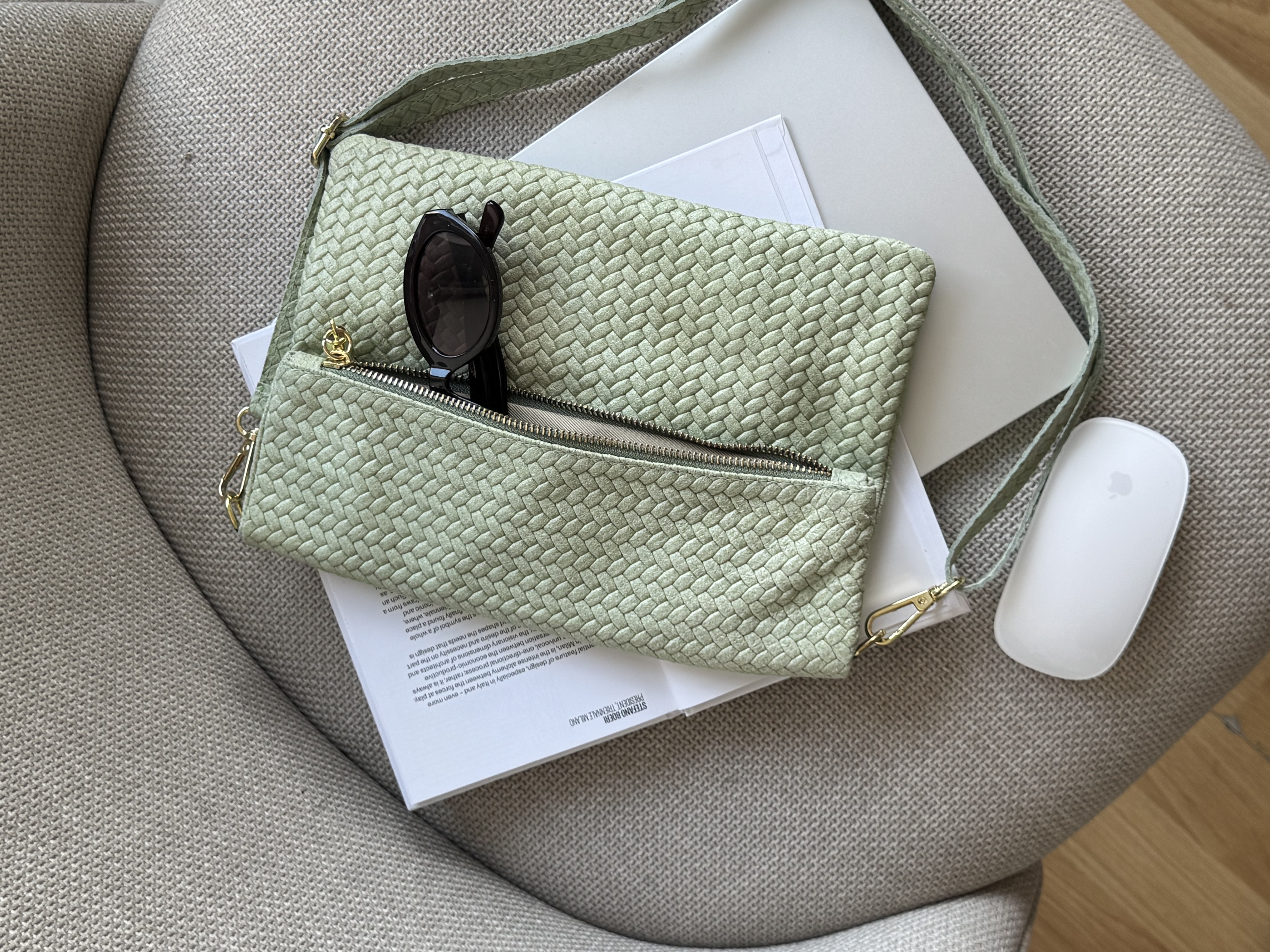 Genuine Leather Boho flap bag with adjustable strap in pistachio