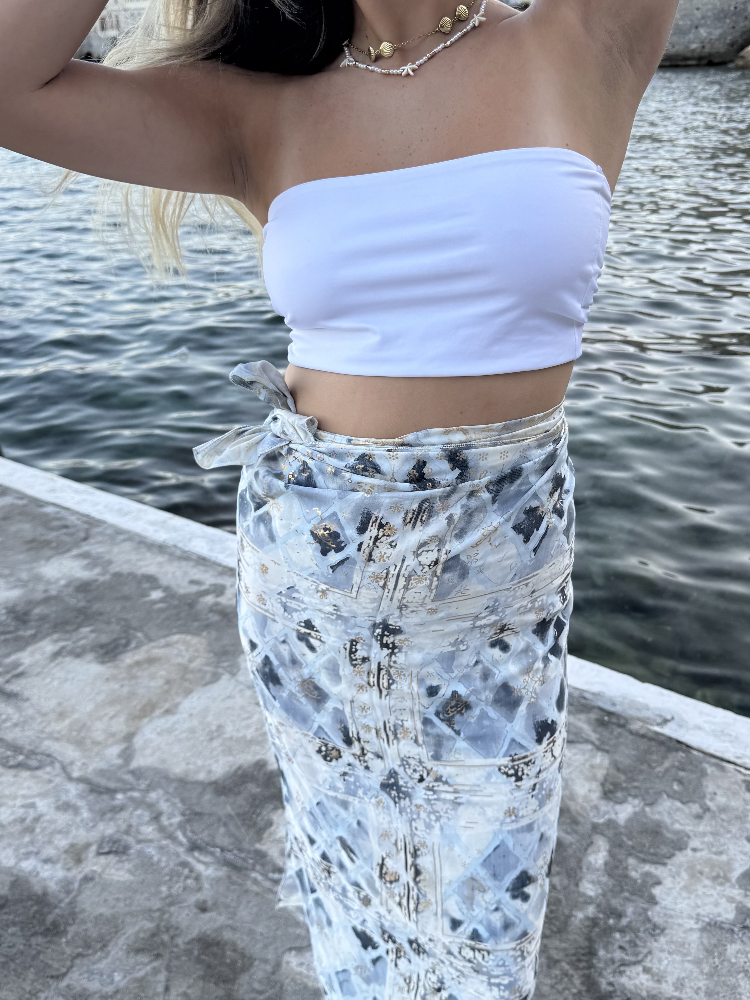 Waterie Art. Silk pareo in ciel and gold