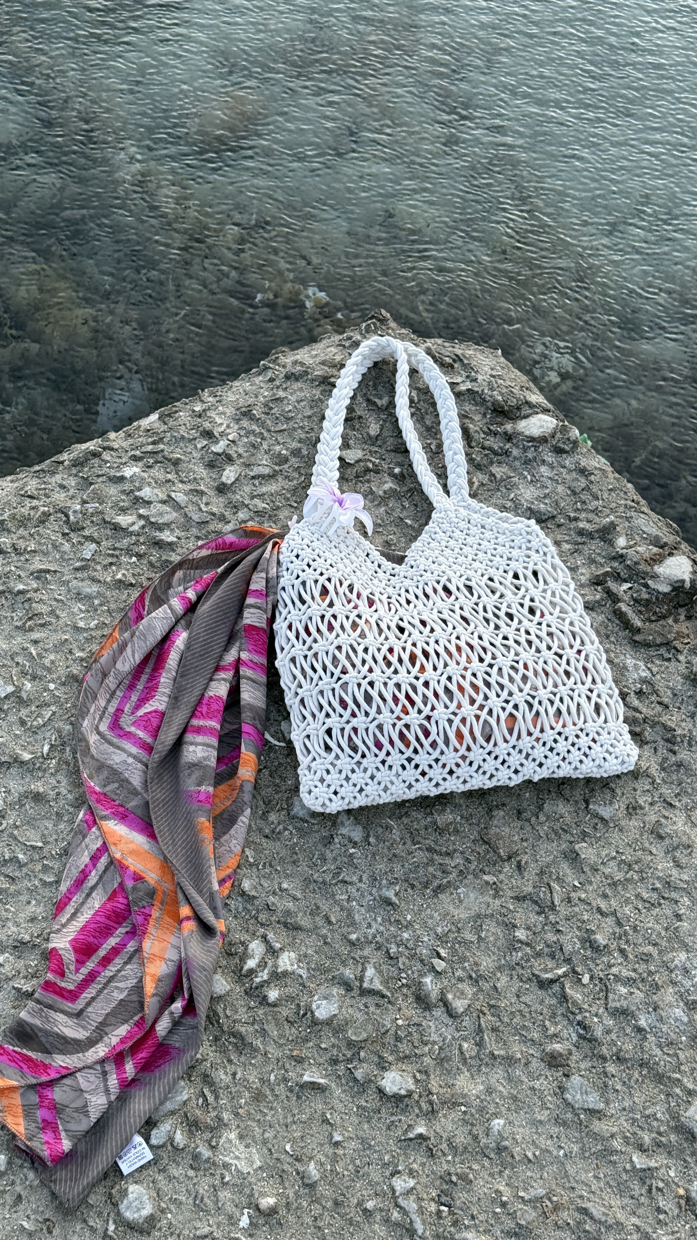 Net braided bag in white