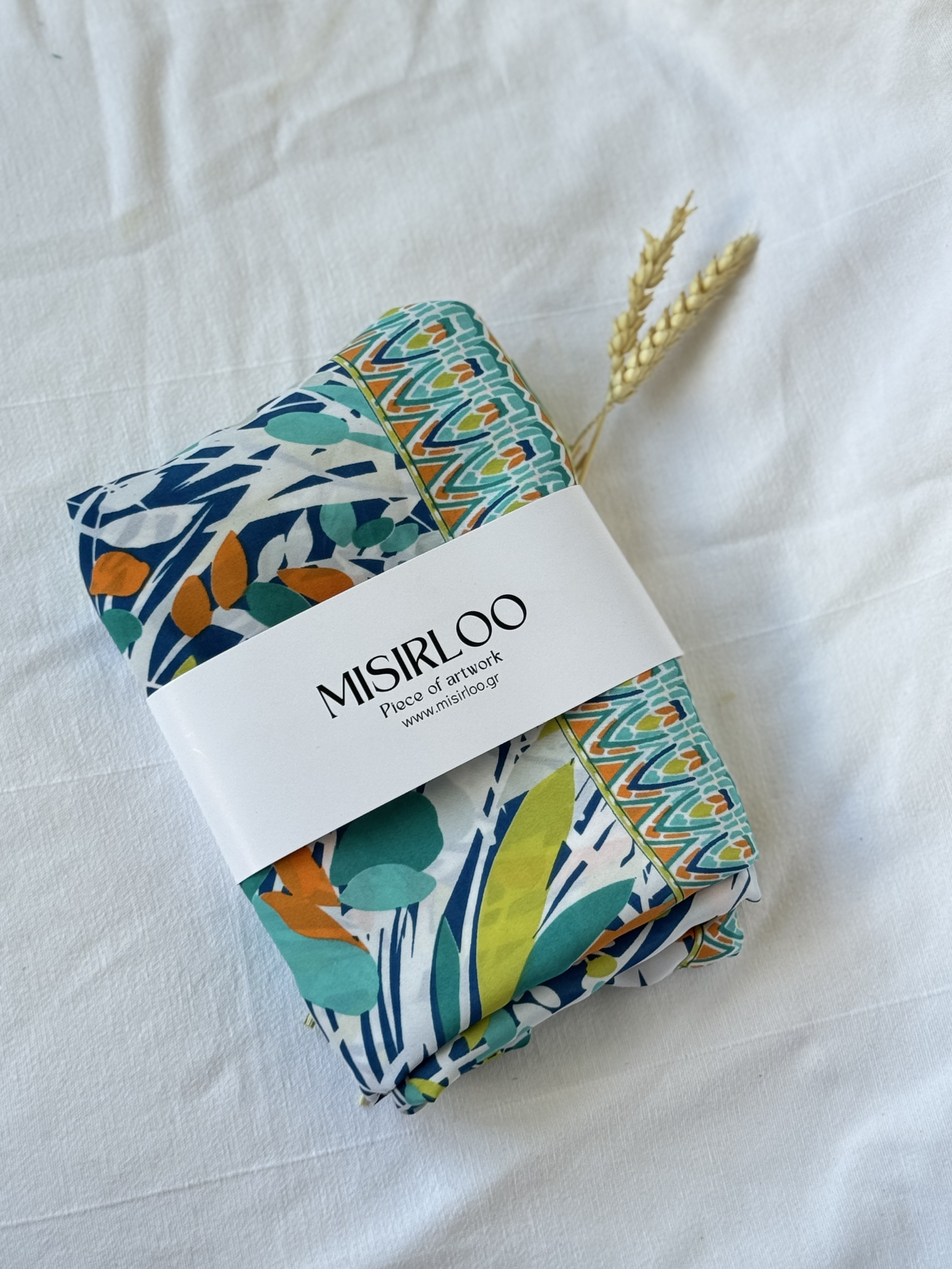 Maui Art. Silk Pareo in aqua and orange