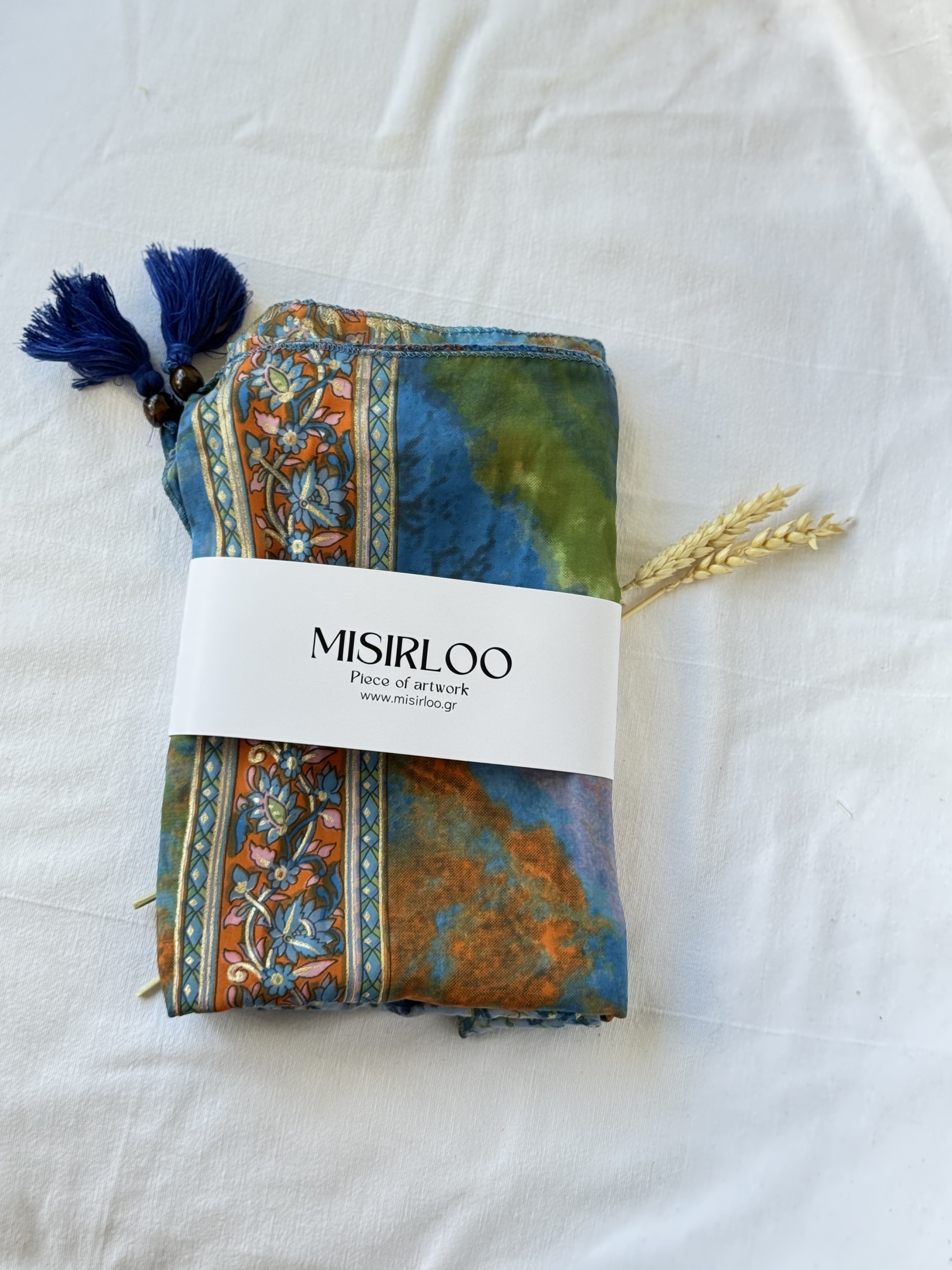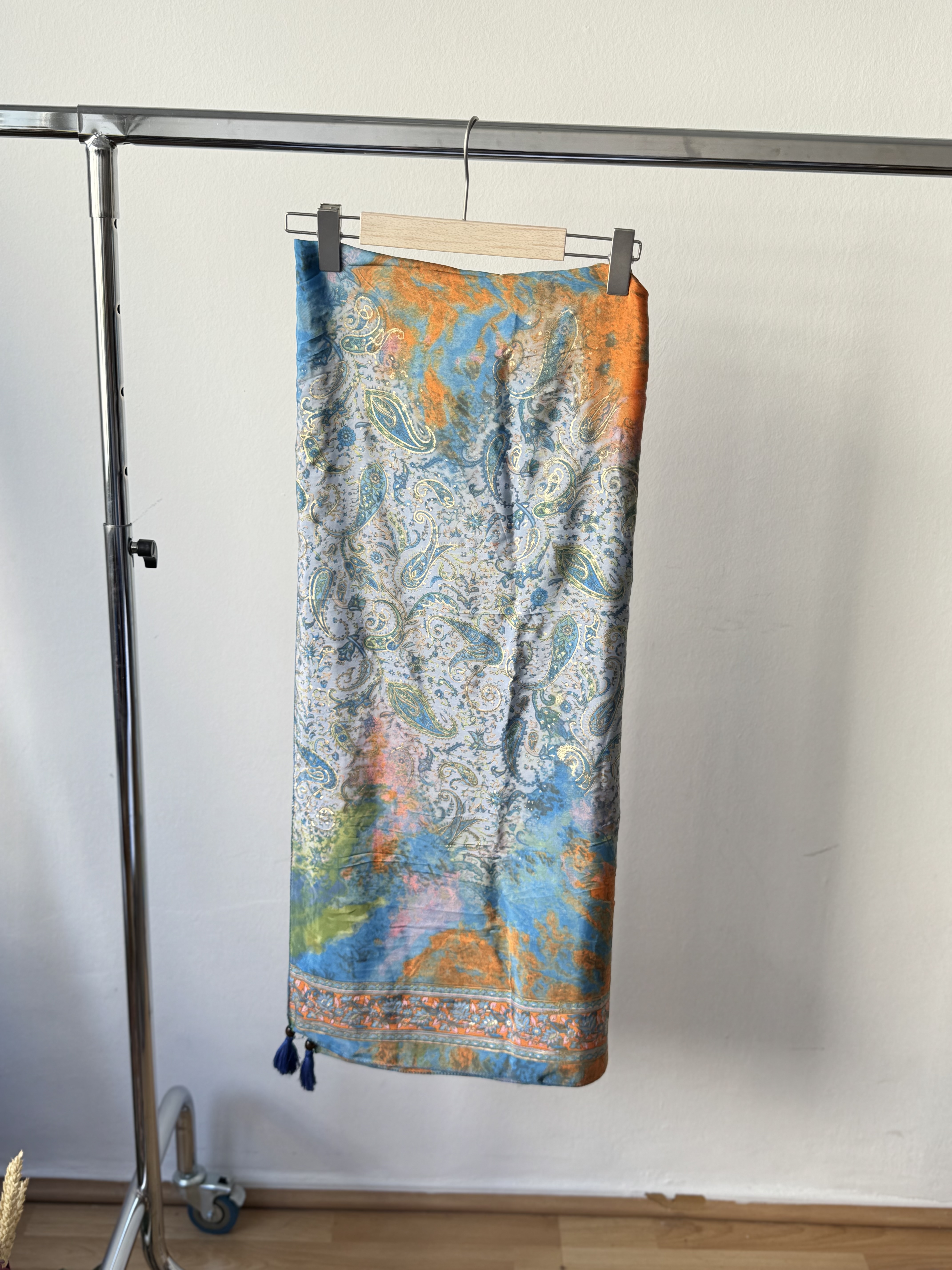 Mosaic Lachuri Art. Silk Pareo in ciel and orange