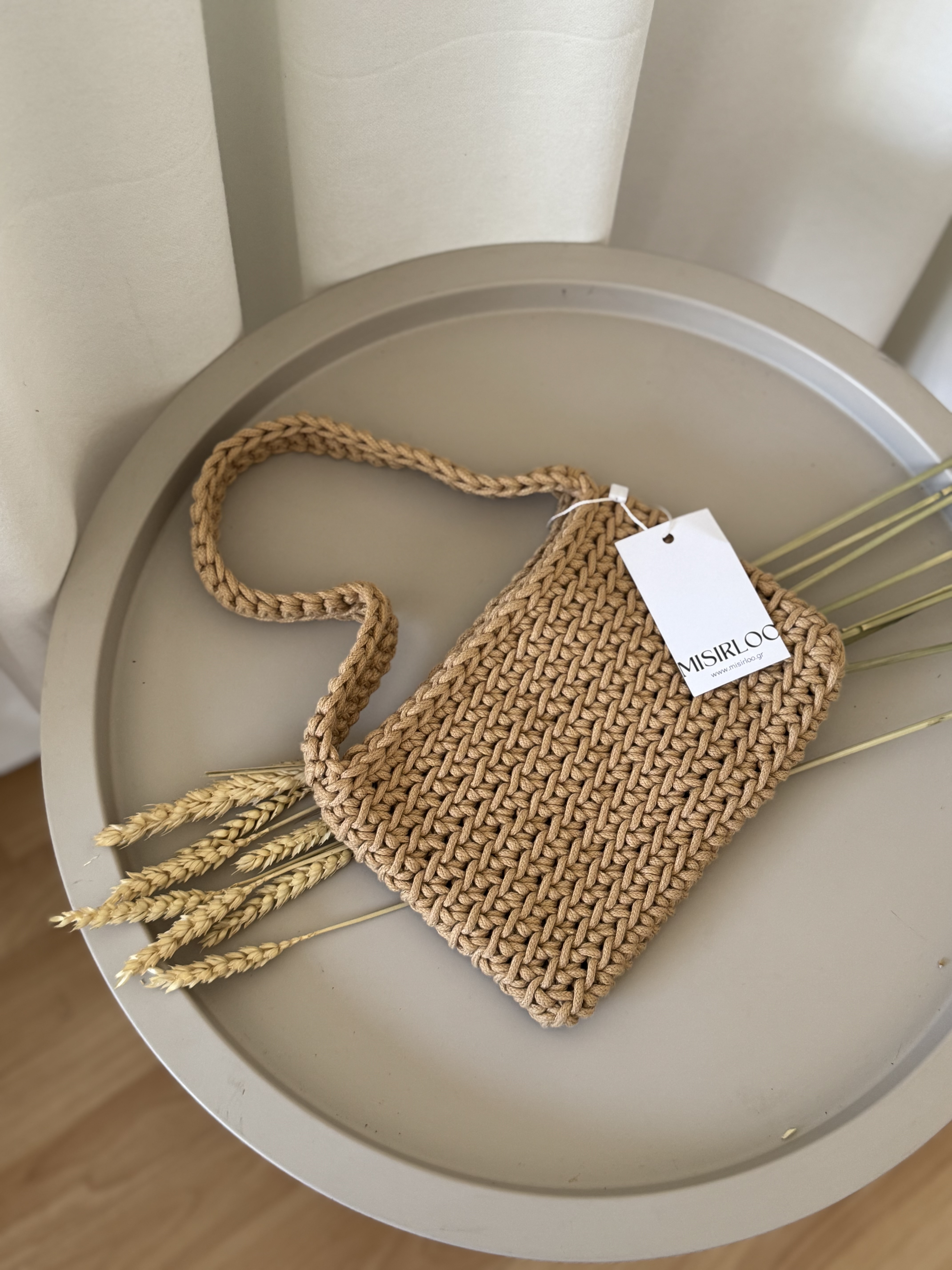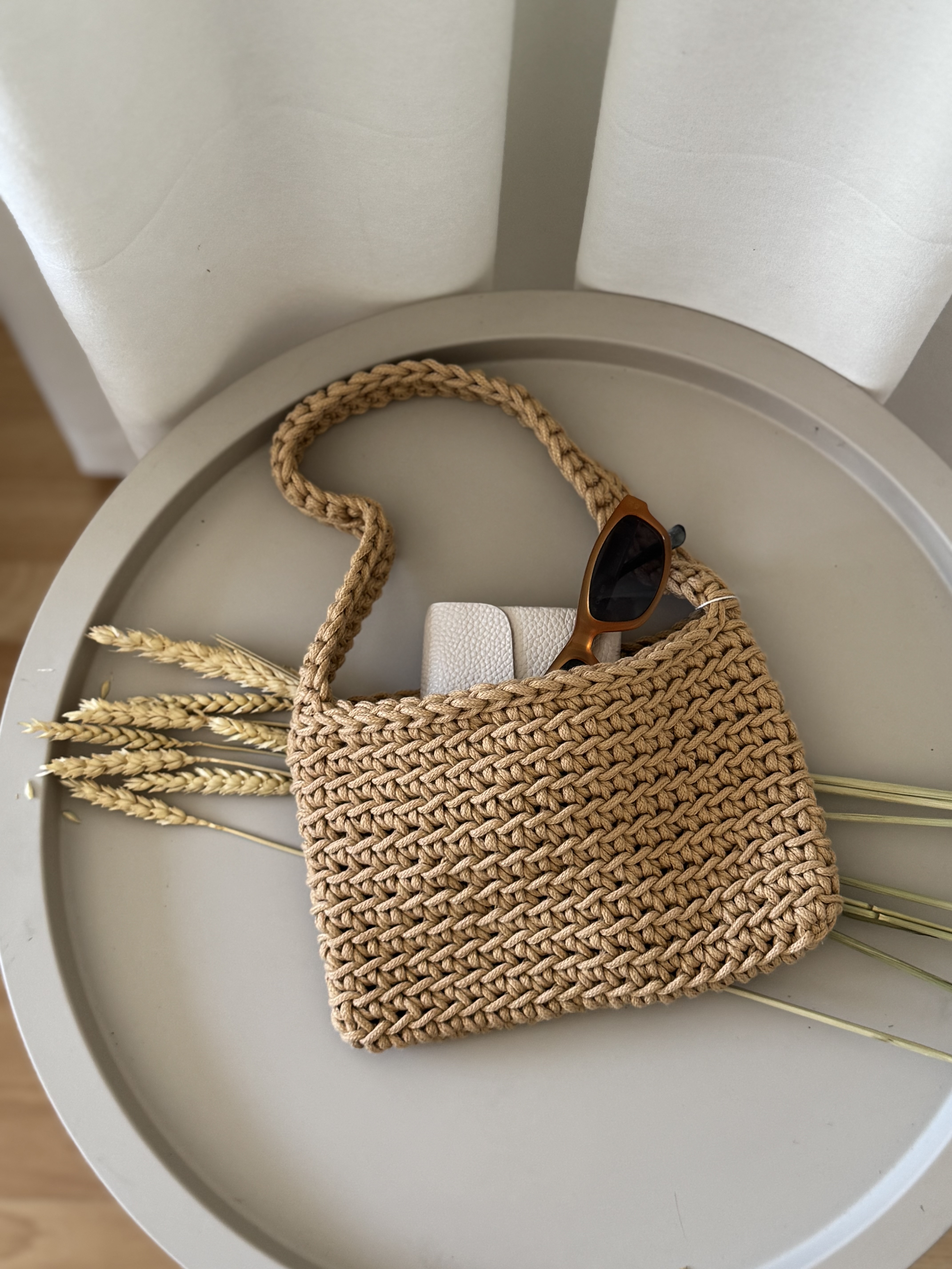 Mini crochet shoulder bag in warm beige
