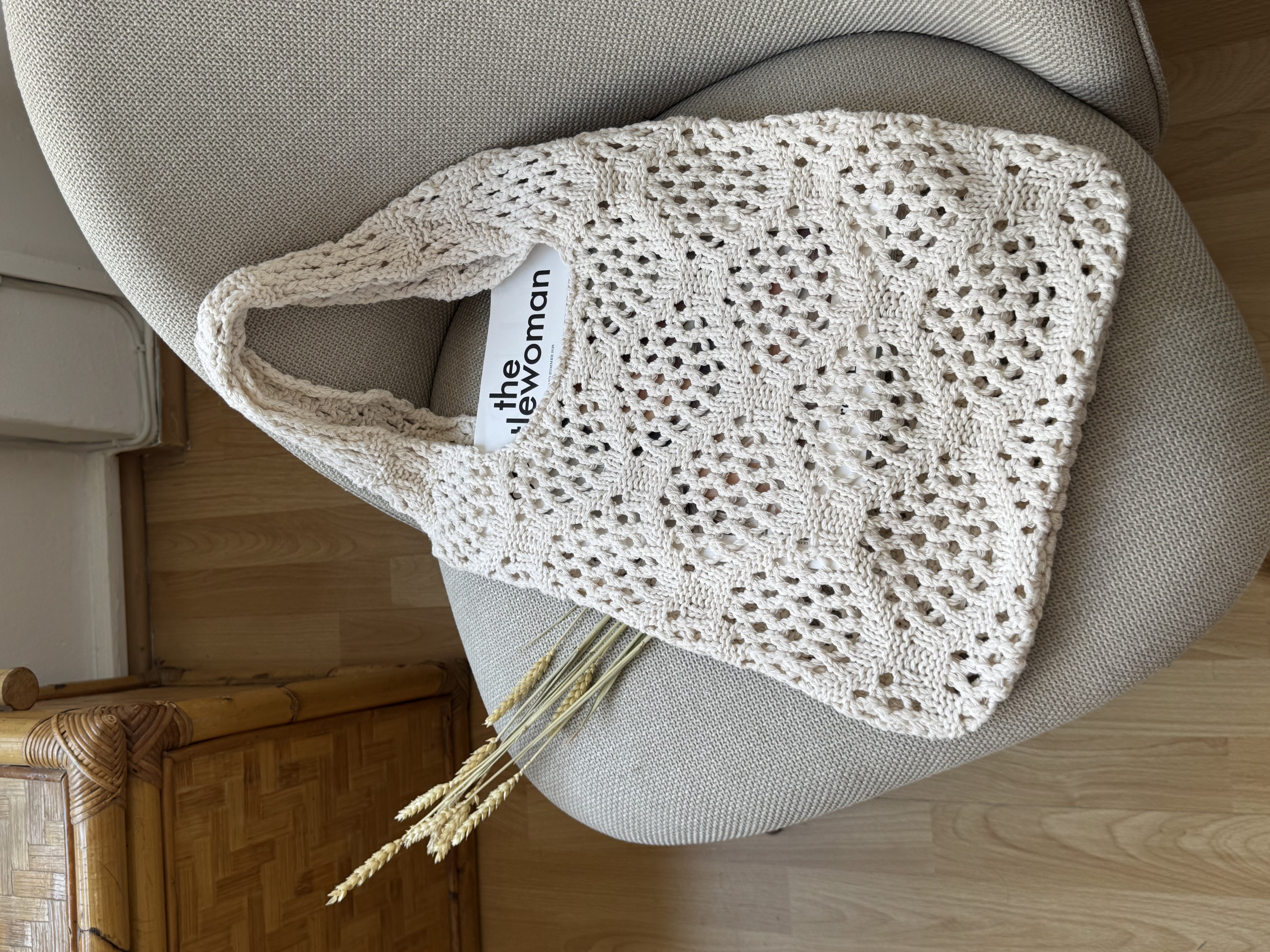 Knitted shoulder bag in off white