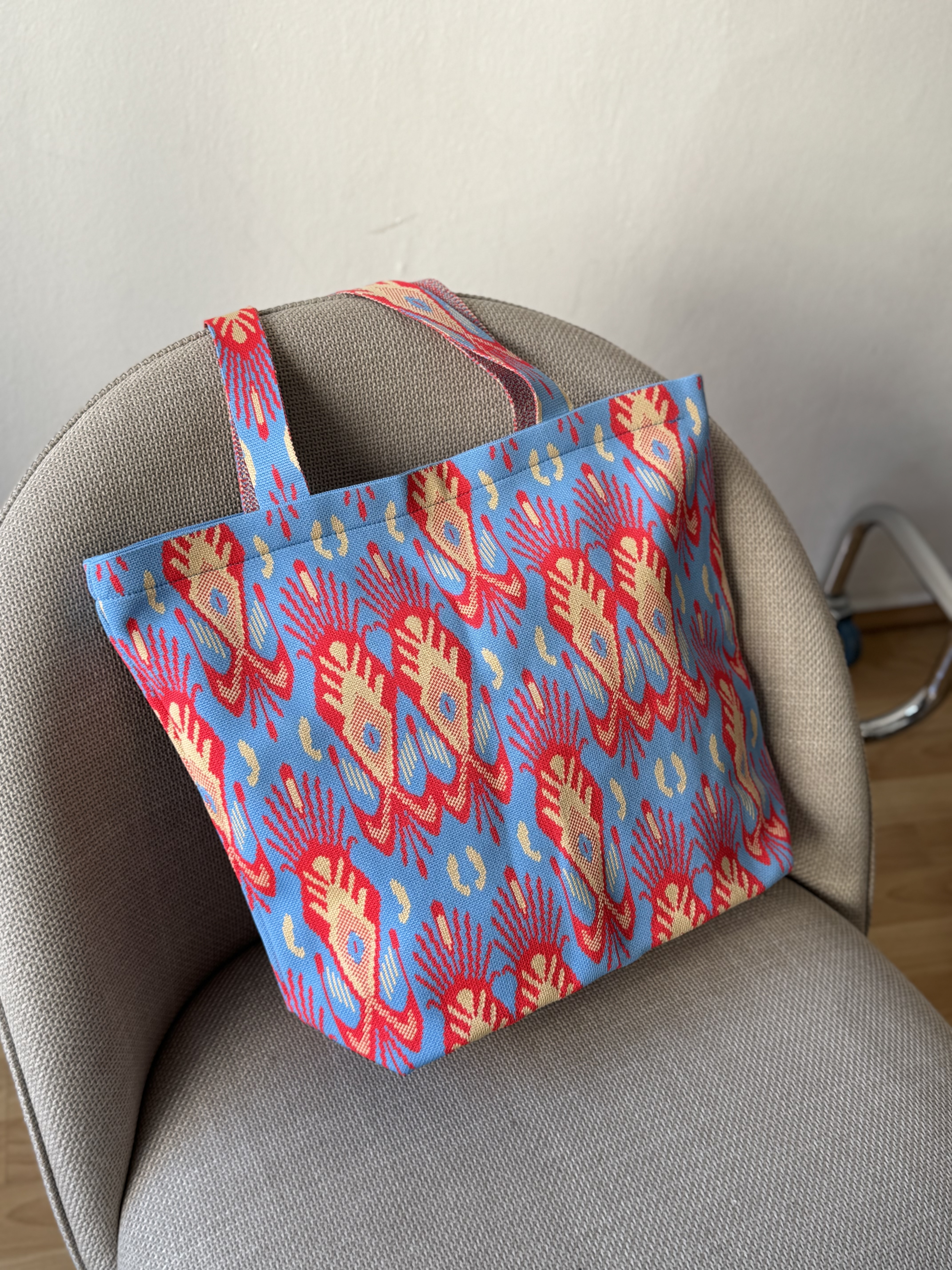 Beach bag in ciel and hot pink