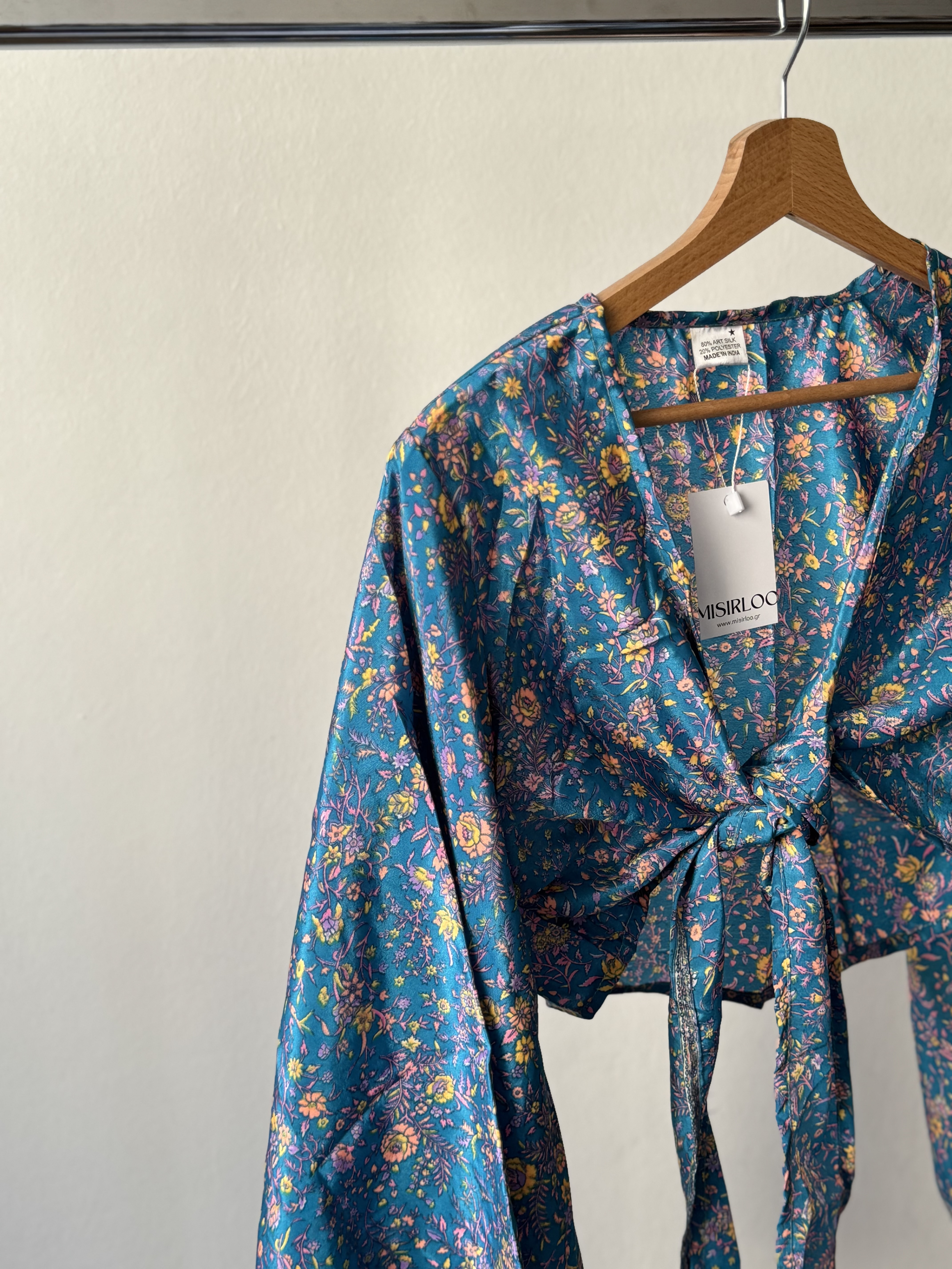 Floral Wrap Shirt in petrol