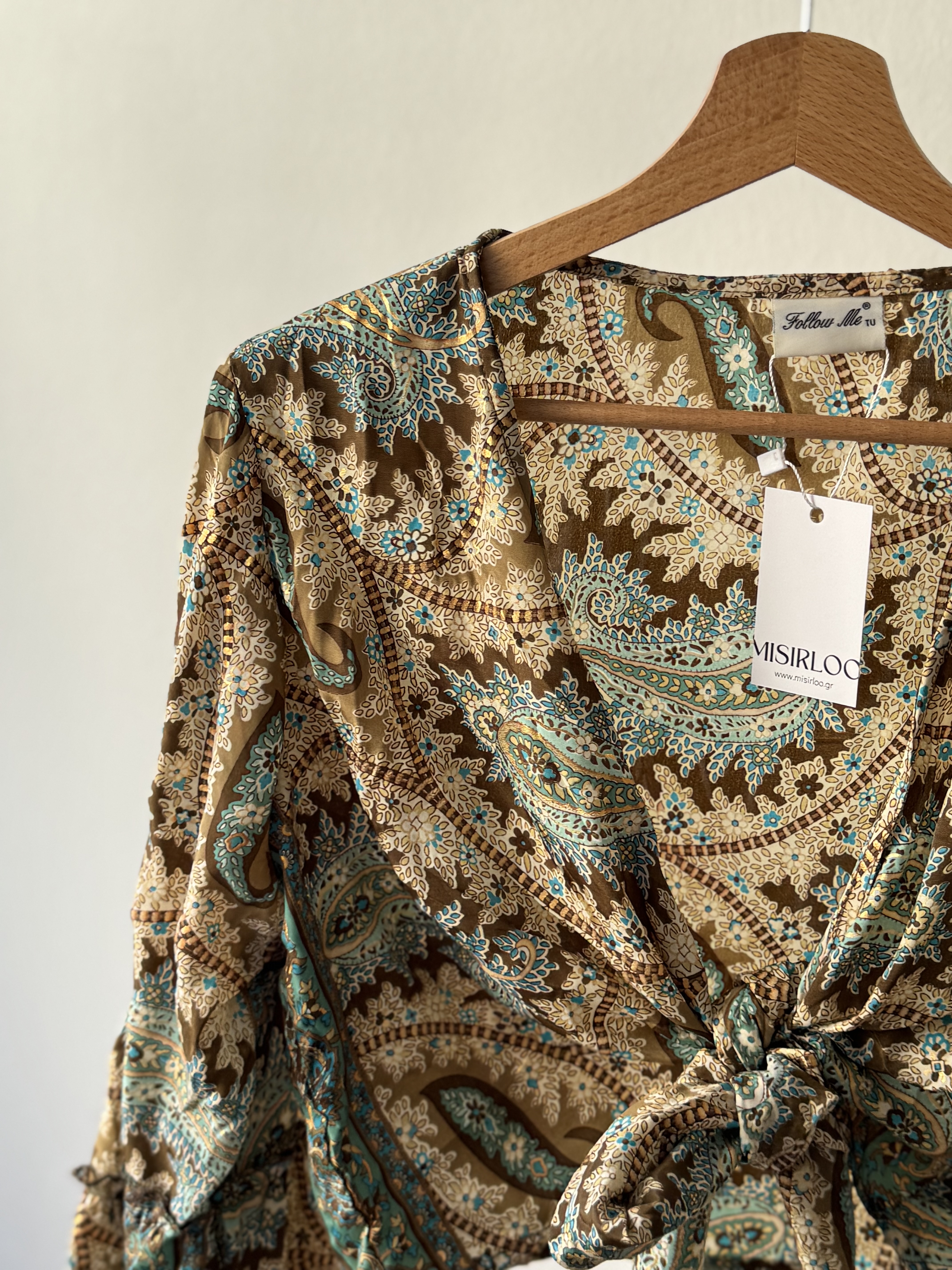 Lachuri Wrap Shirt in brown and ciel