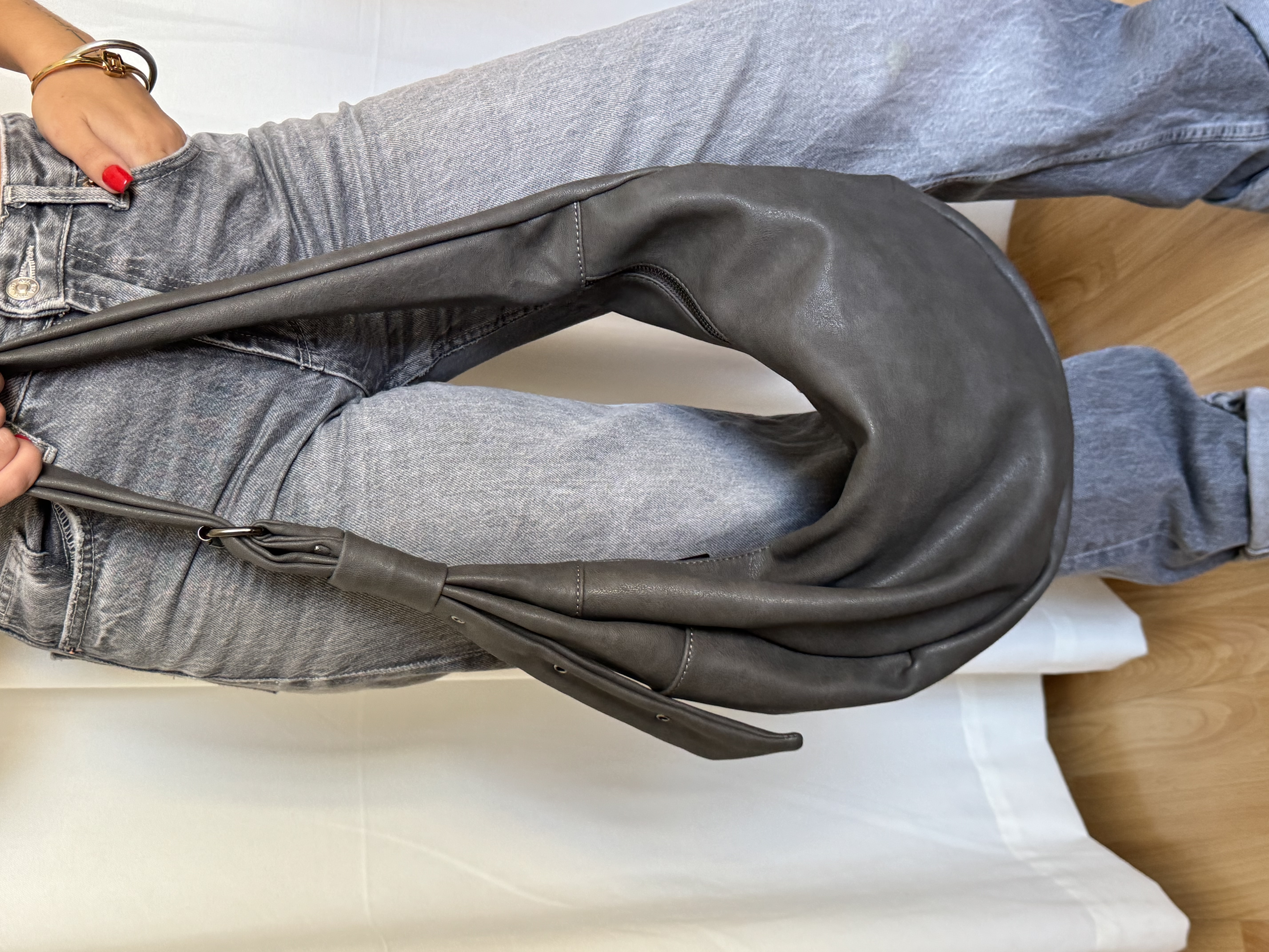 Casual saddle bag with buckle in iron grey