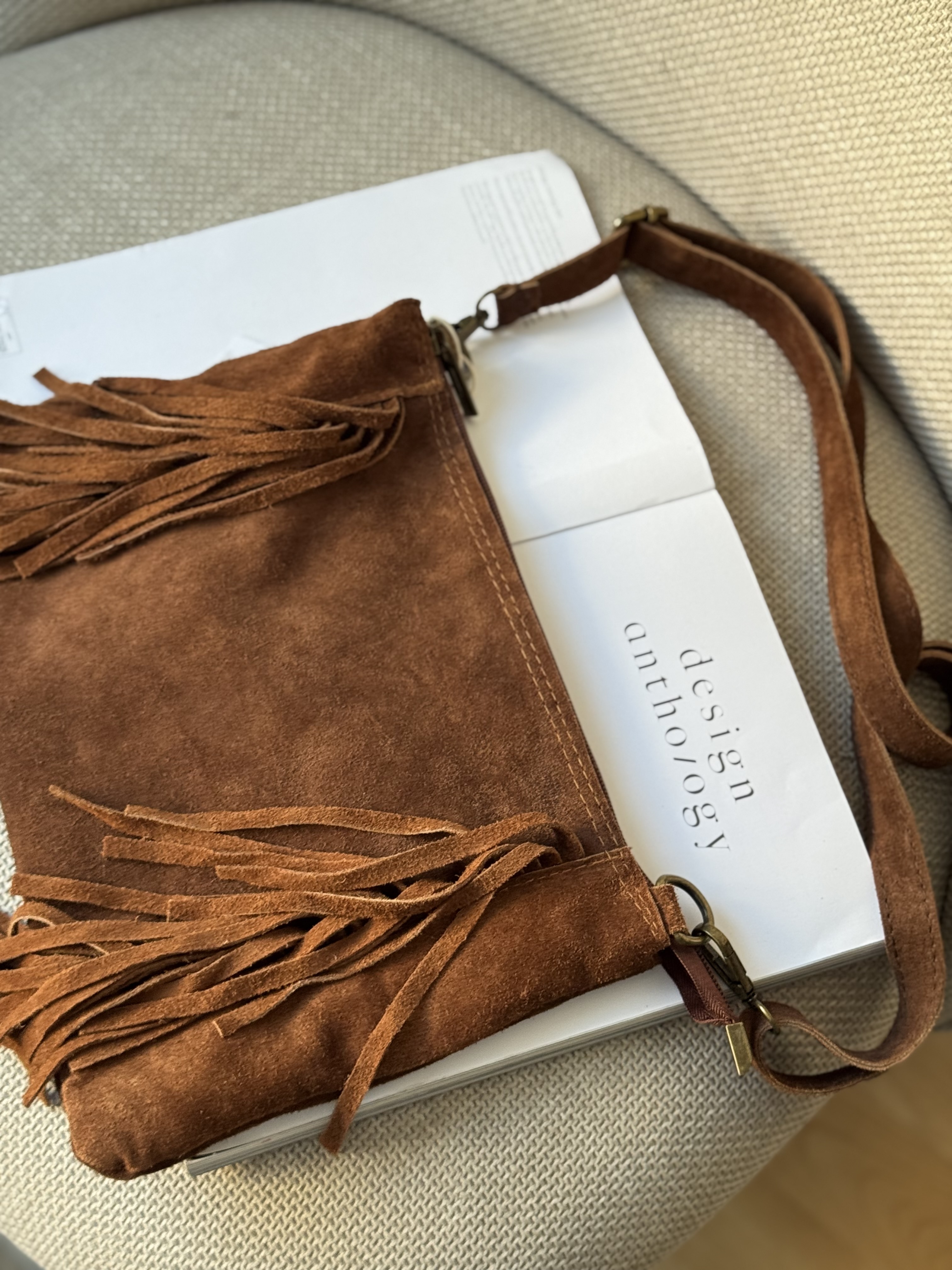 Suede crossbody bag with fringes