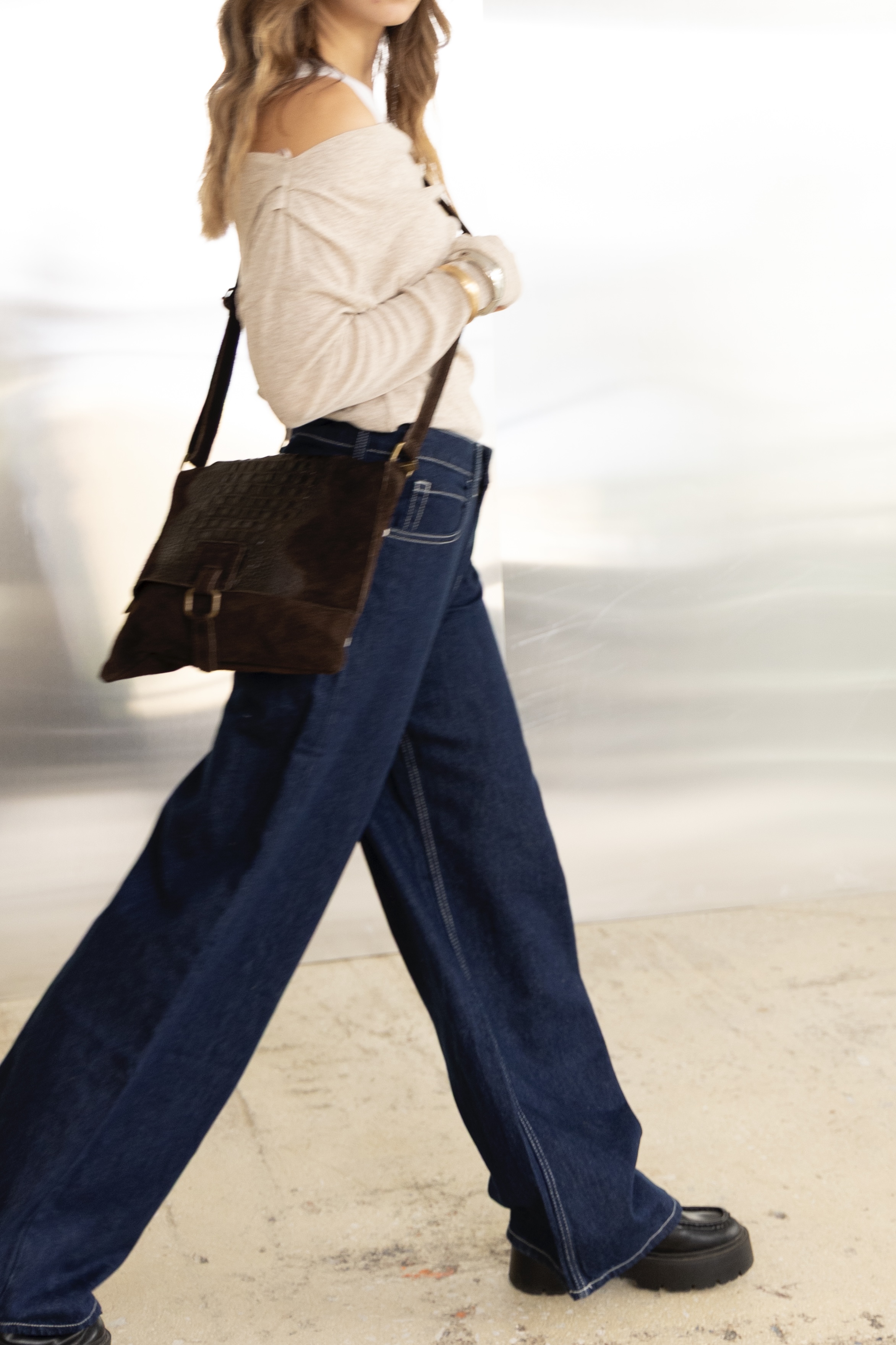 Suede croco shoulder bag in coffee