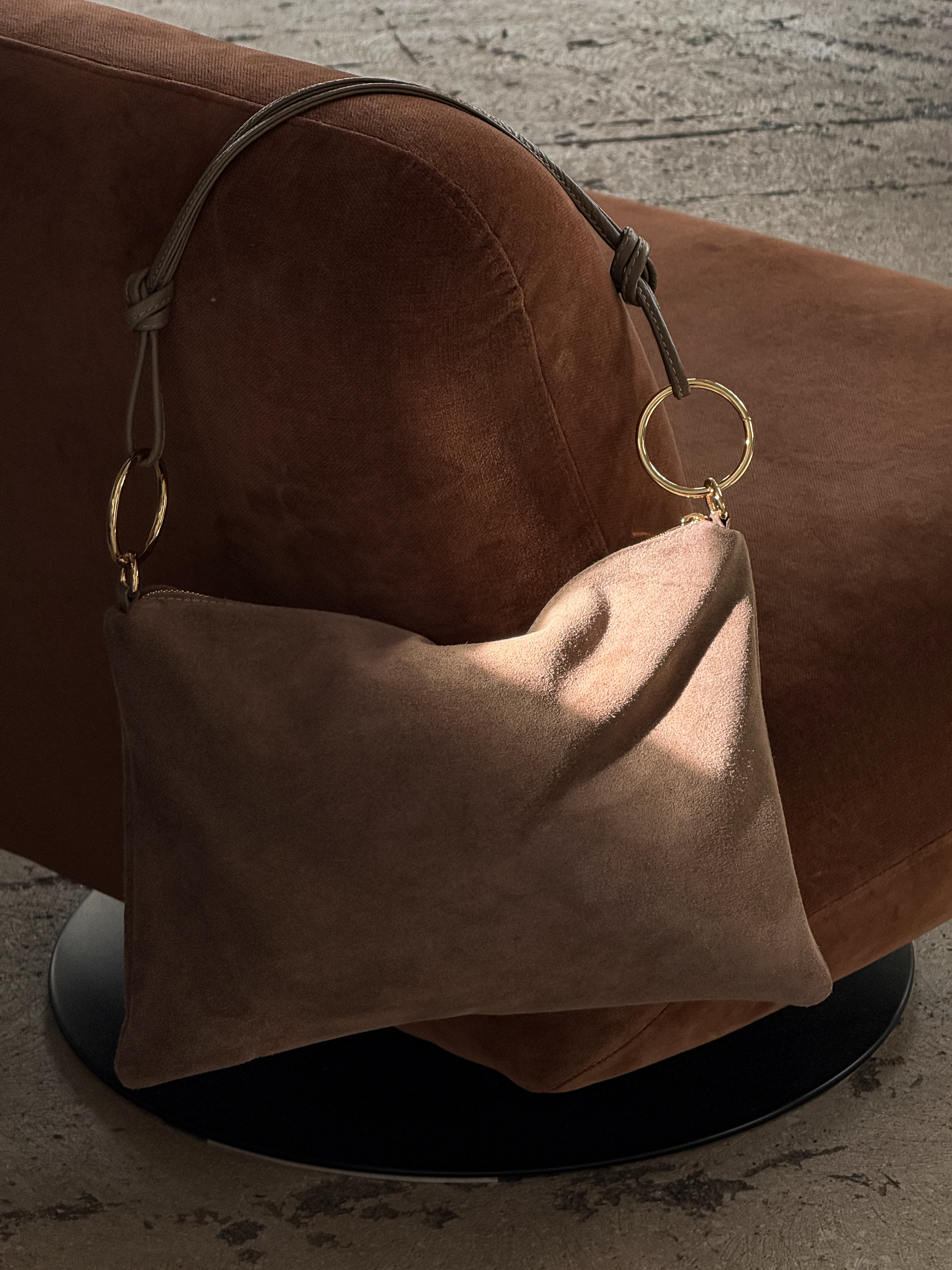 Large Suede shoulder bag with hoops