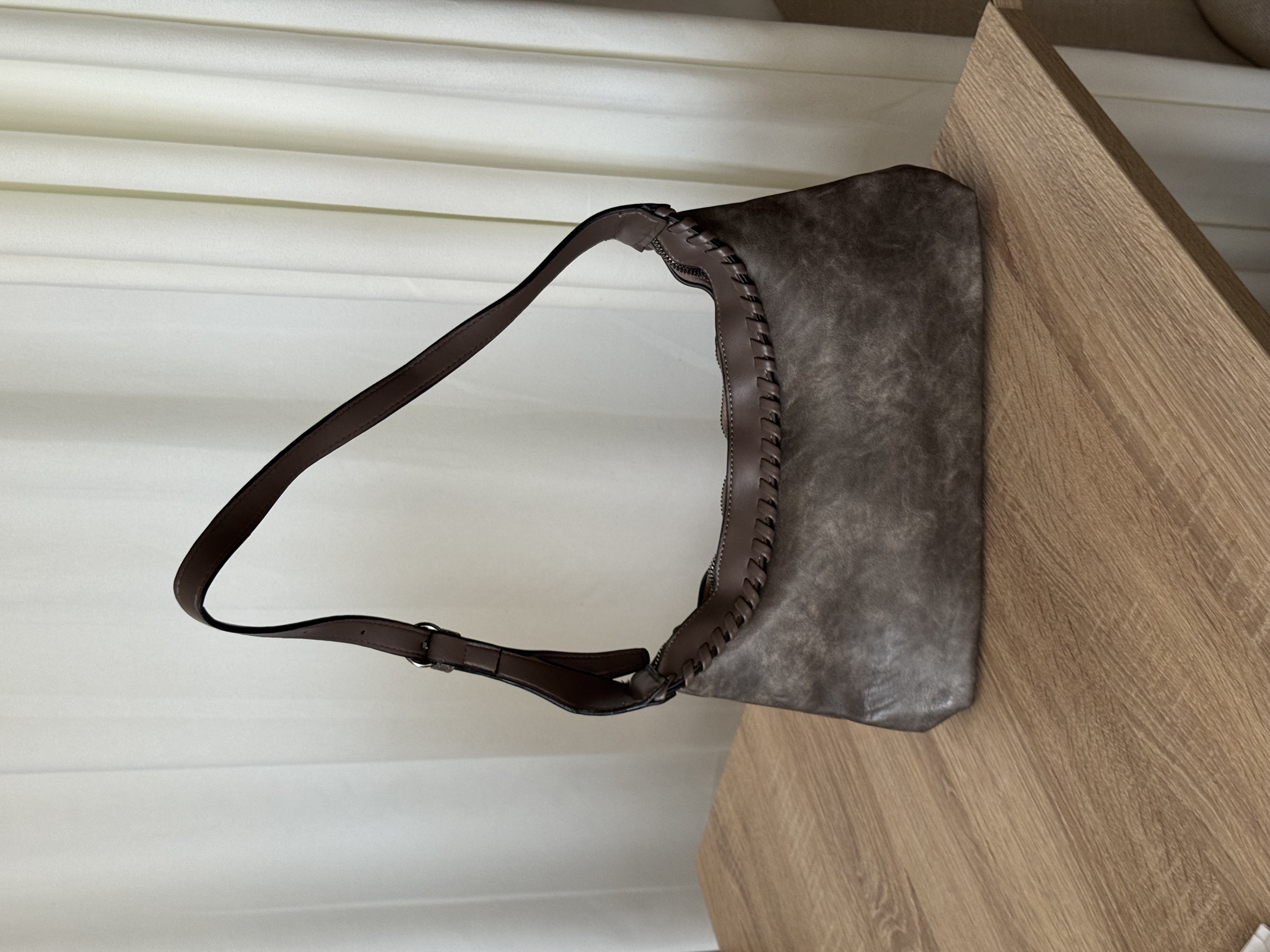Faded shoulder bag with stitched in greige