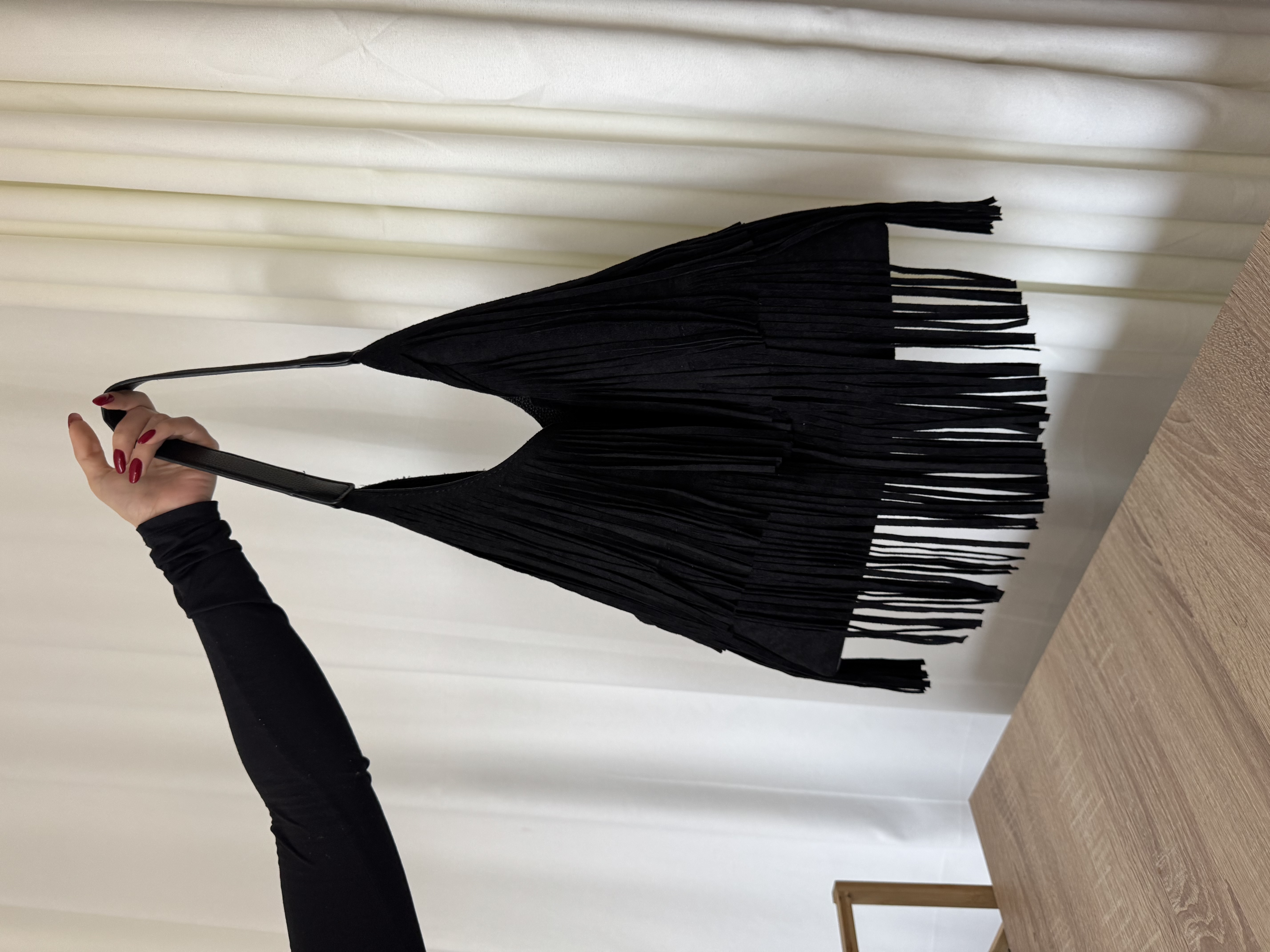 Vegan suede casual bag with fringes in black