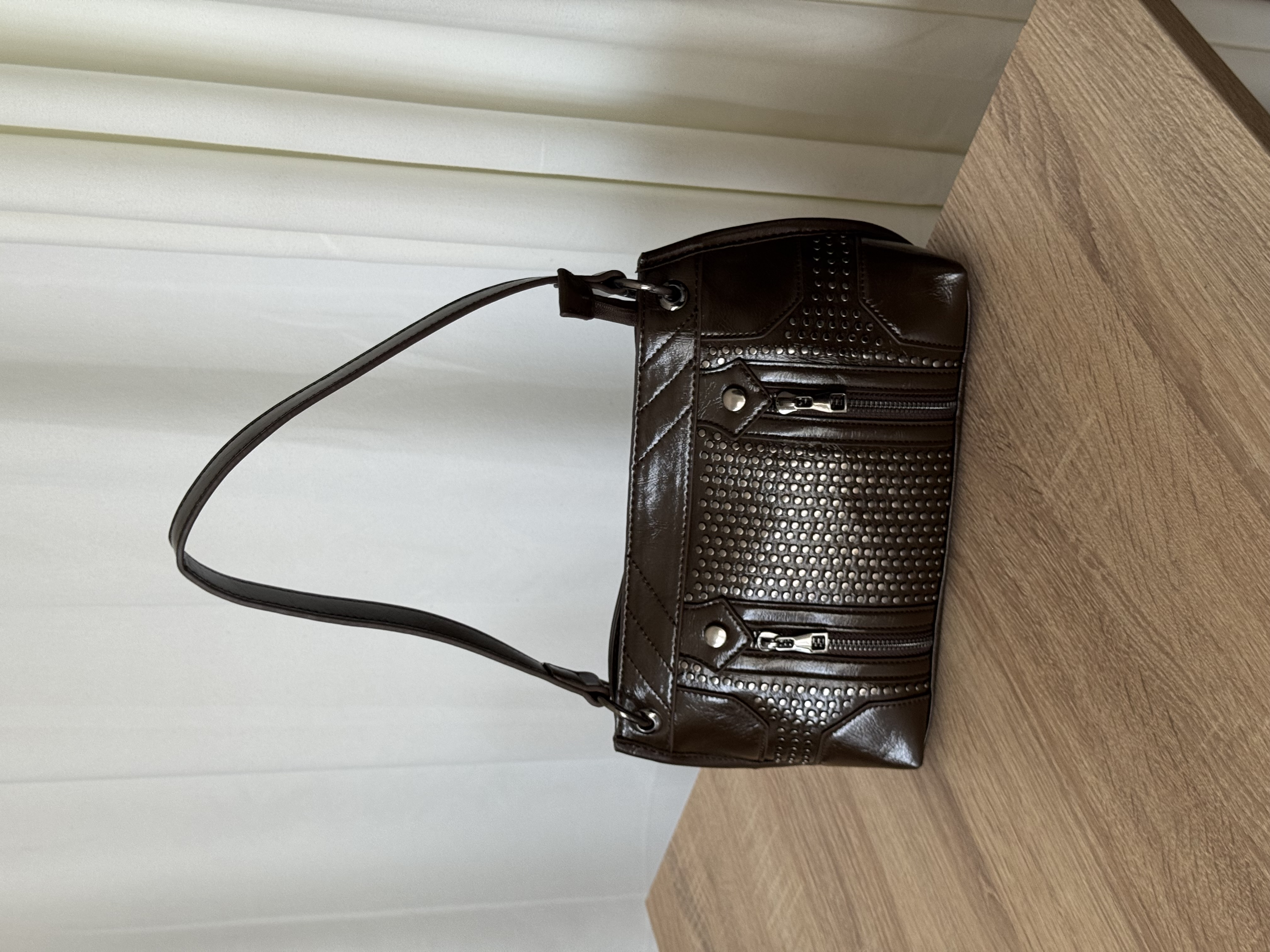 Silk shoulder bag with studs in olive brown