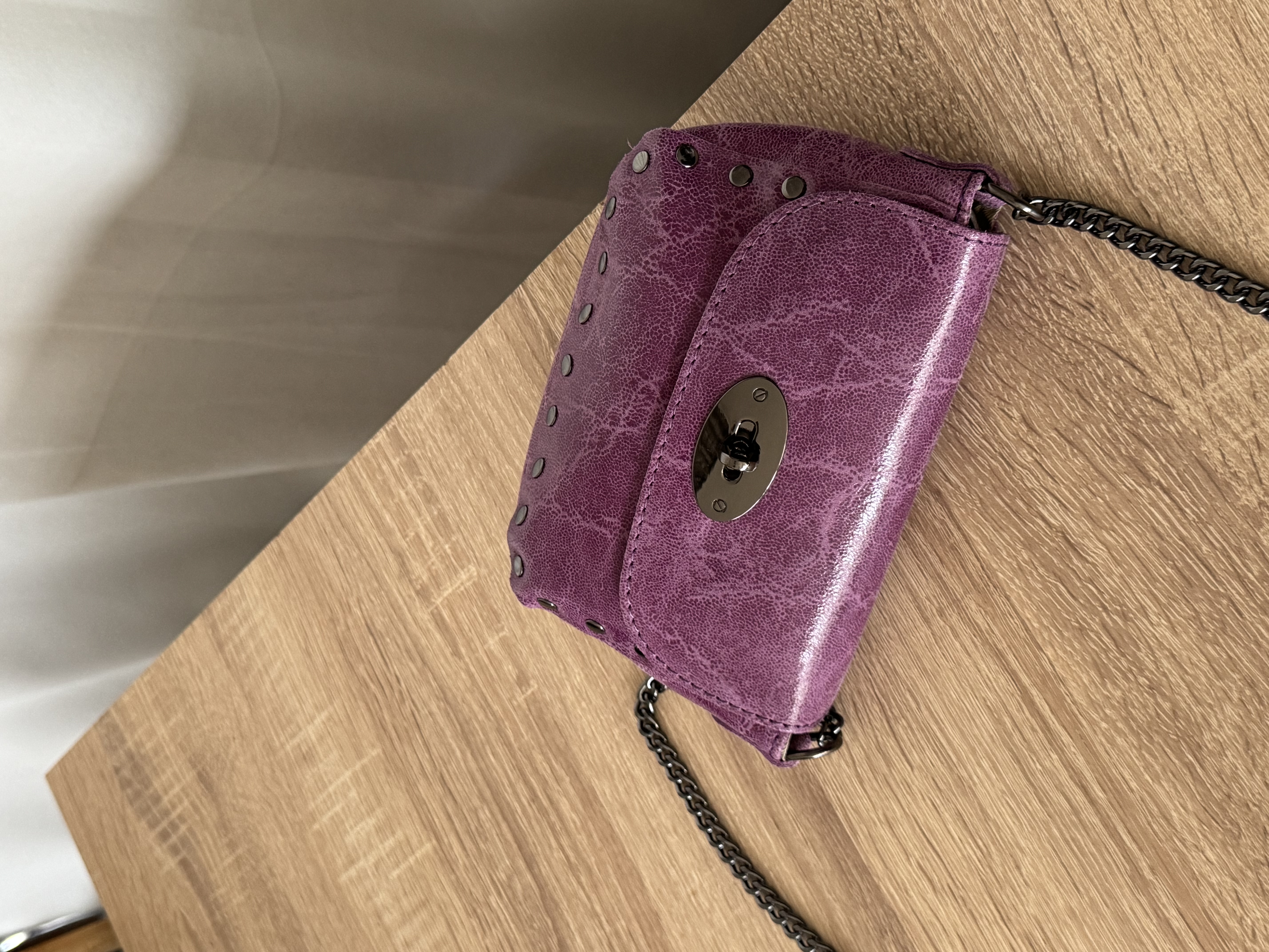Mini leather crossbody bag in lilac