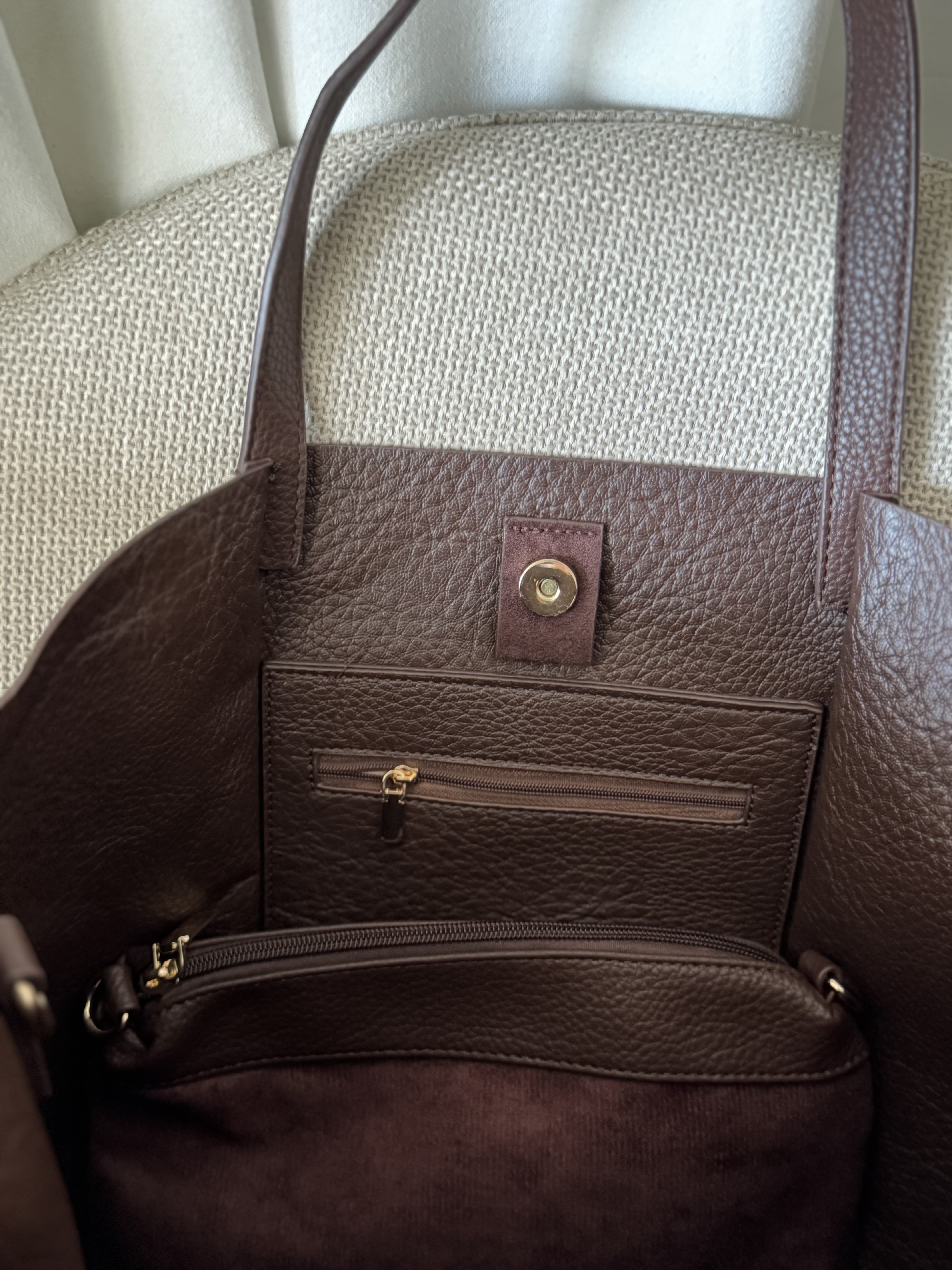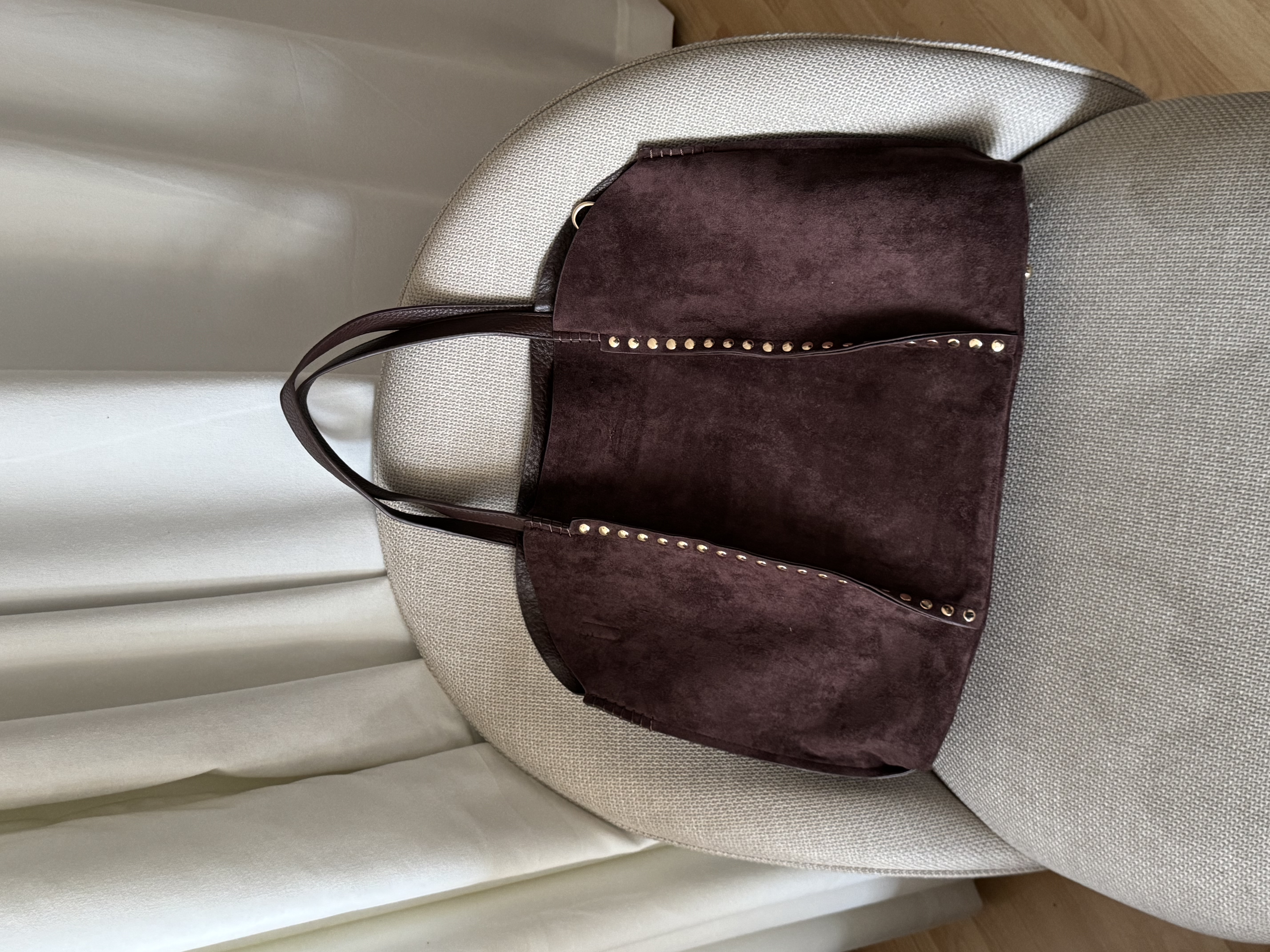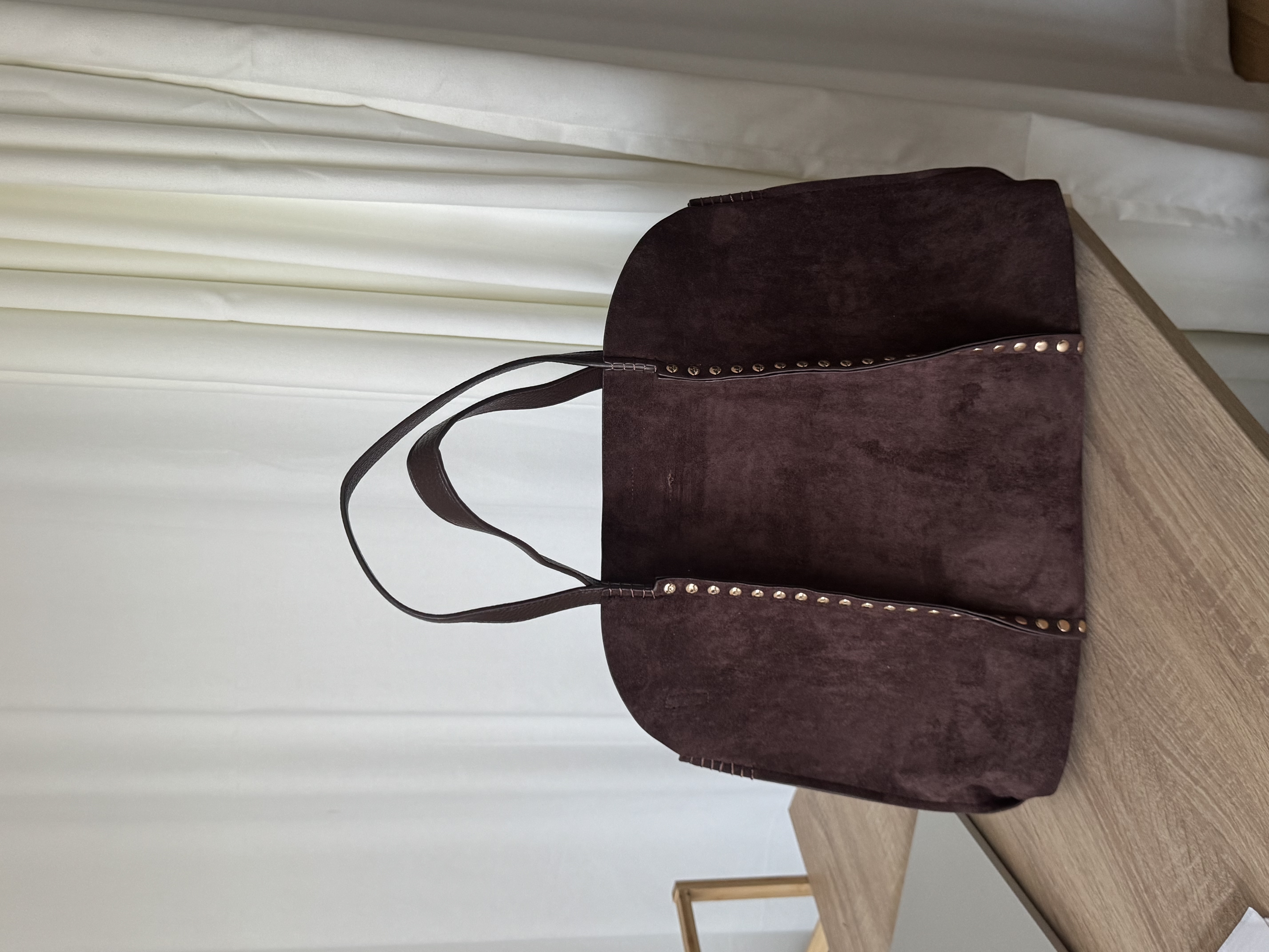Large vegan suede bag with studs in coffee