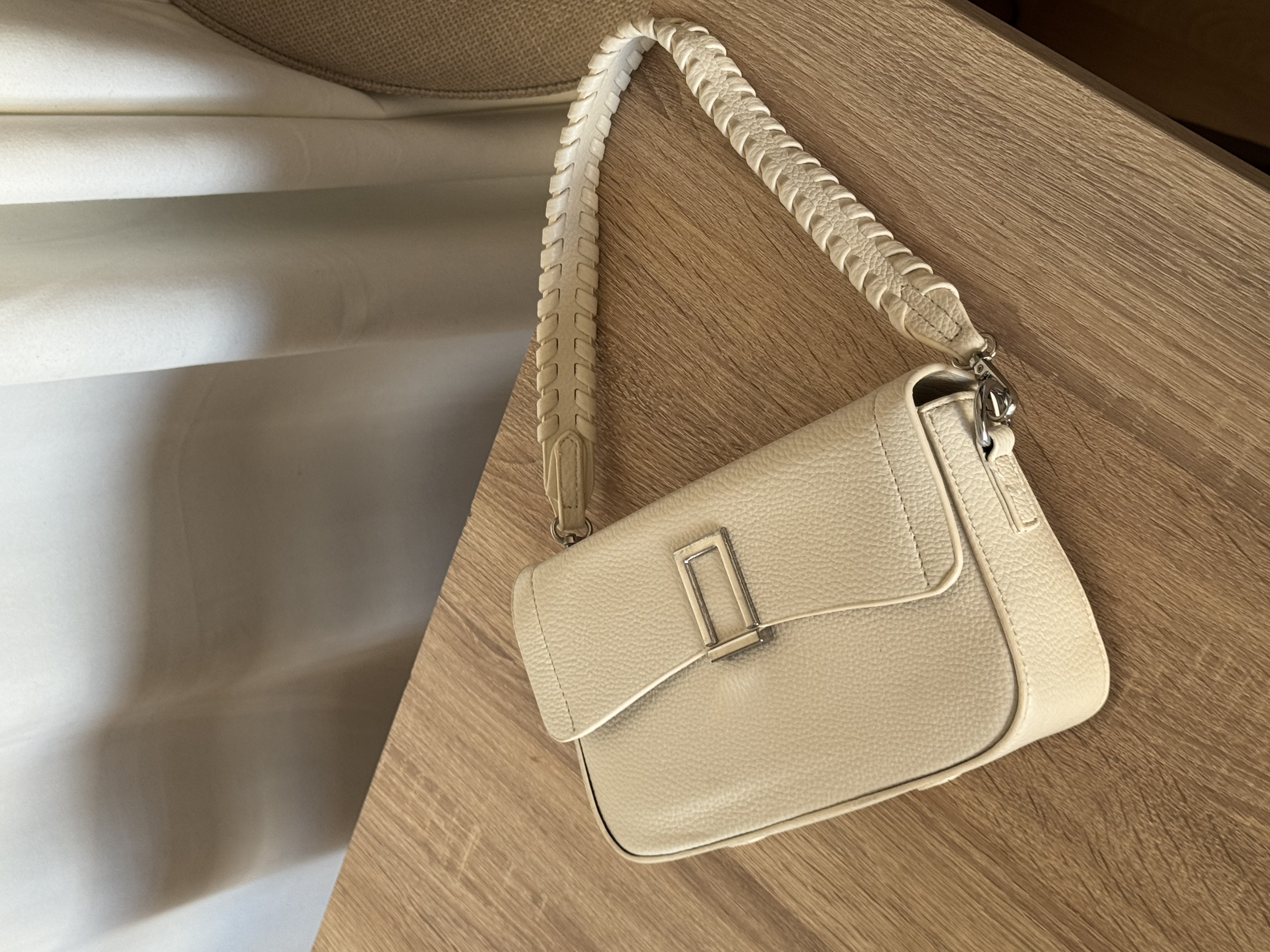 Shoulder bag with detailed strap in ivory
