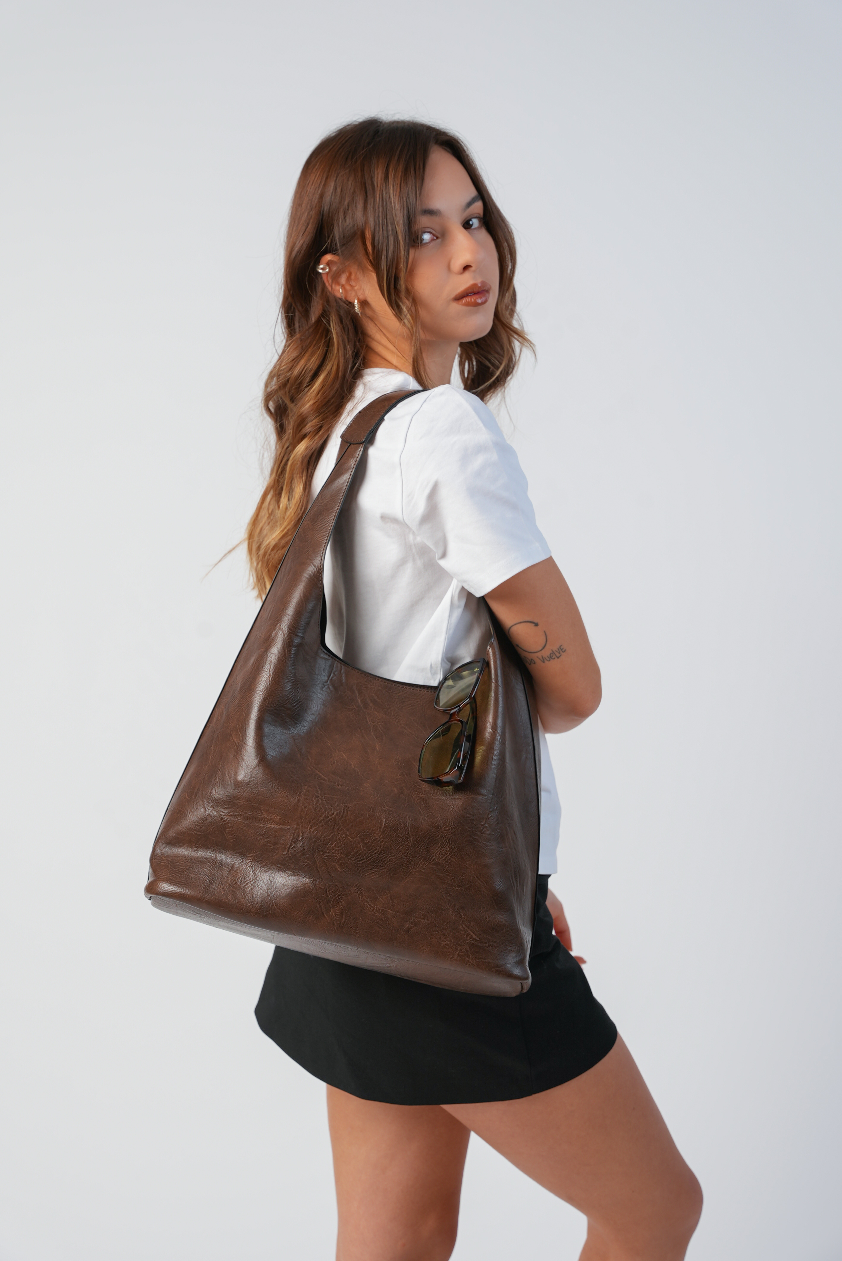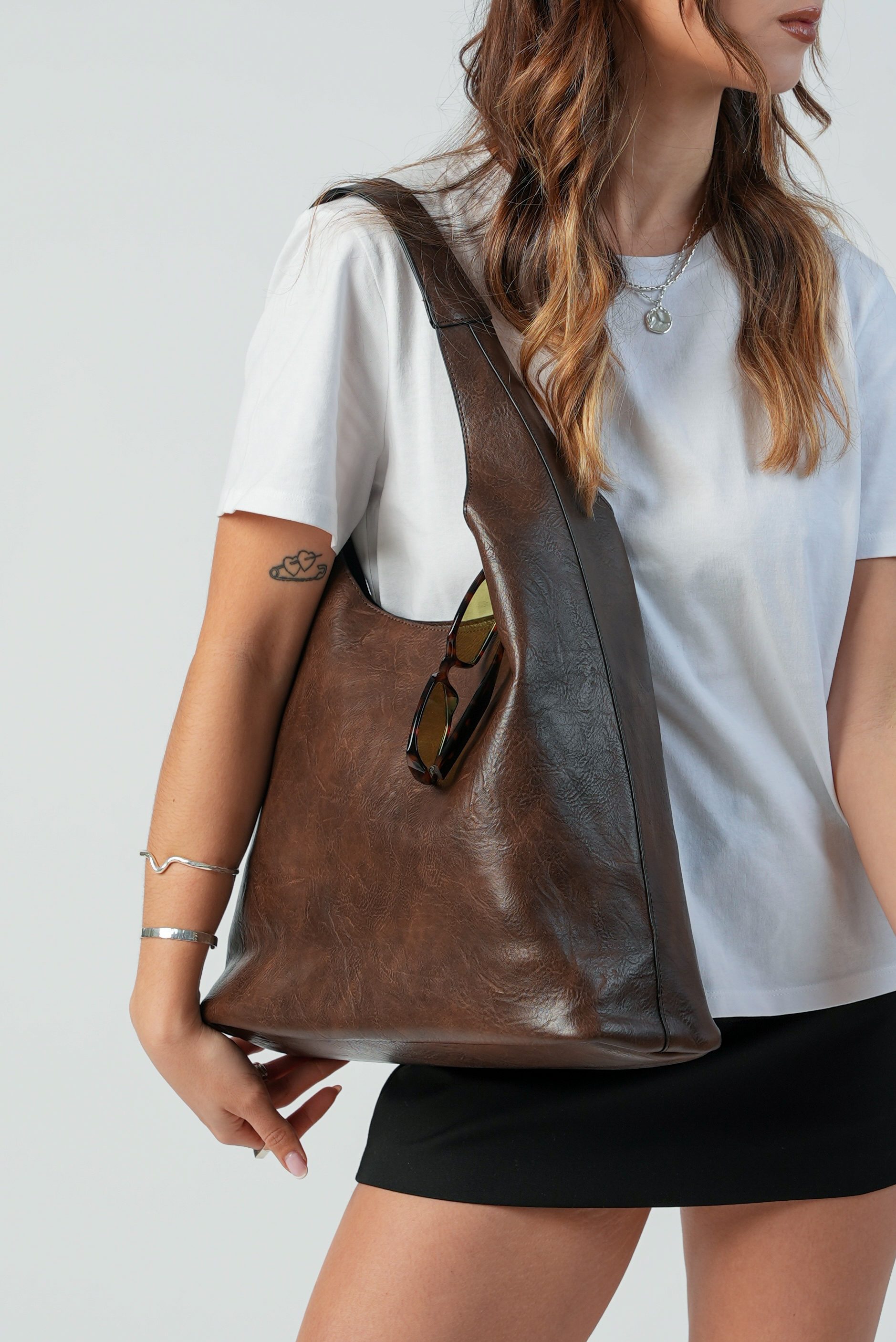 Casual Shoulder bag with zipper in coffee