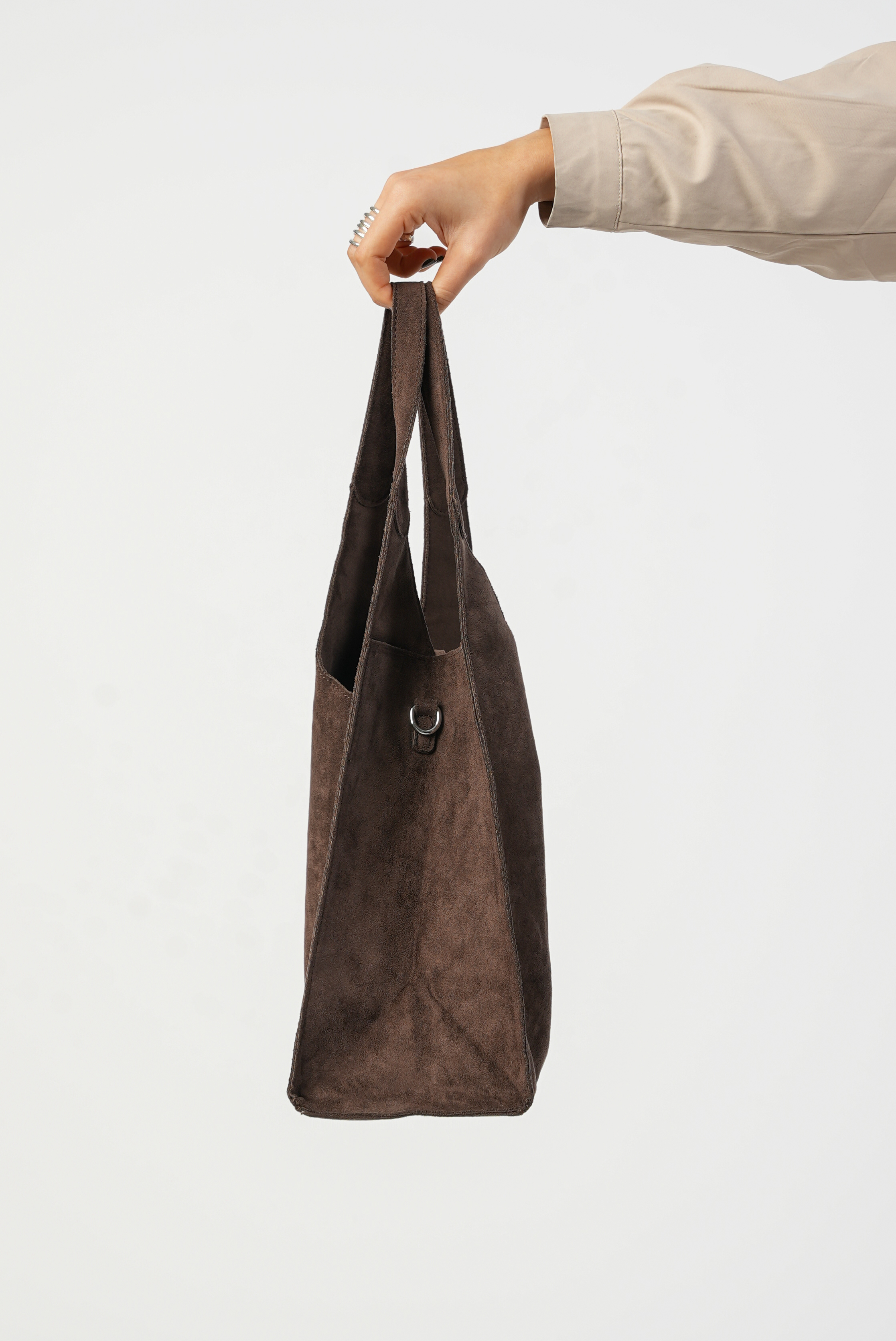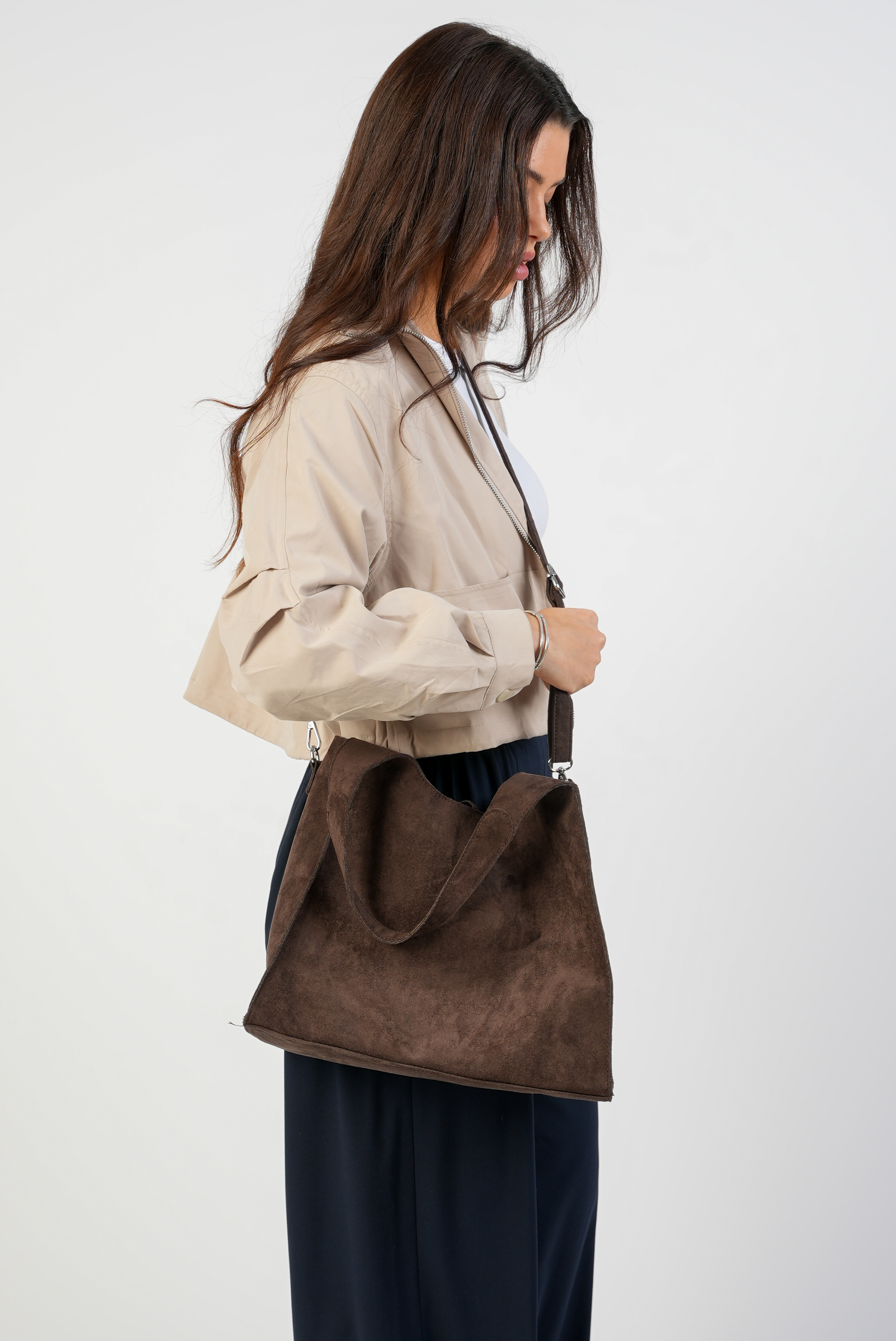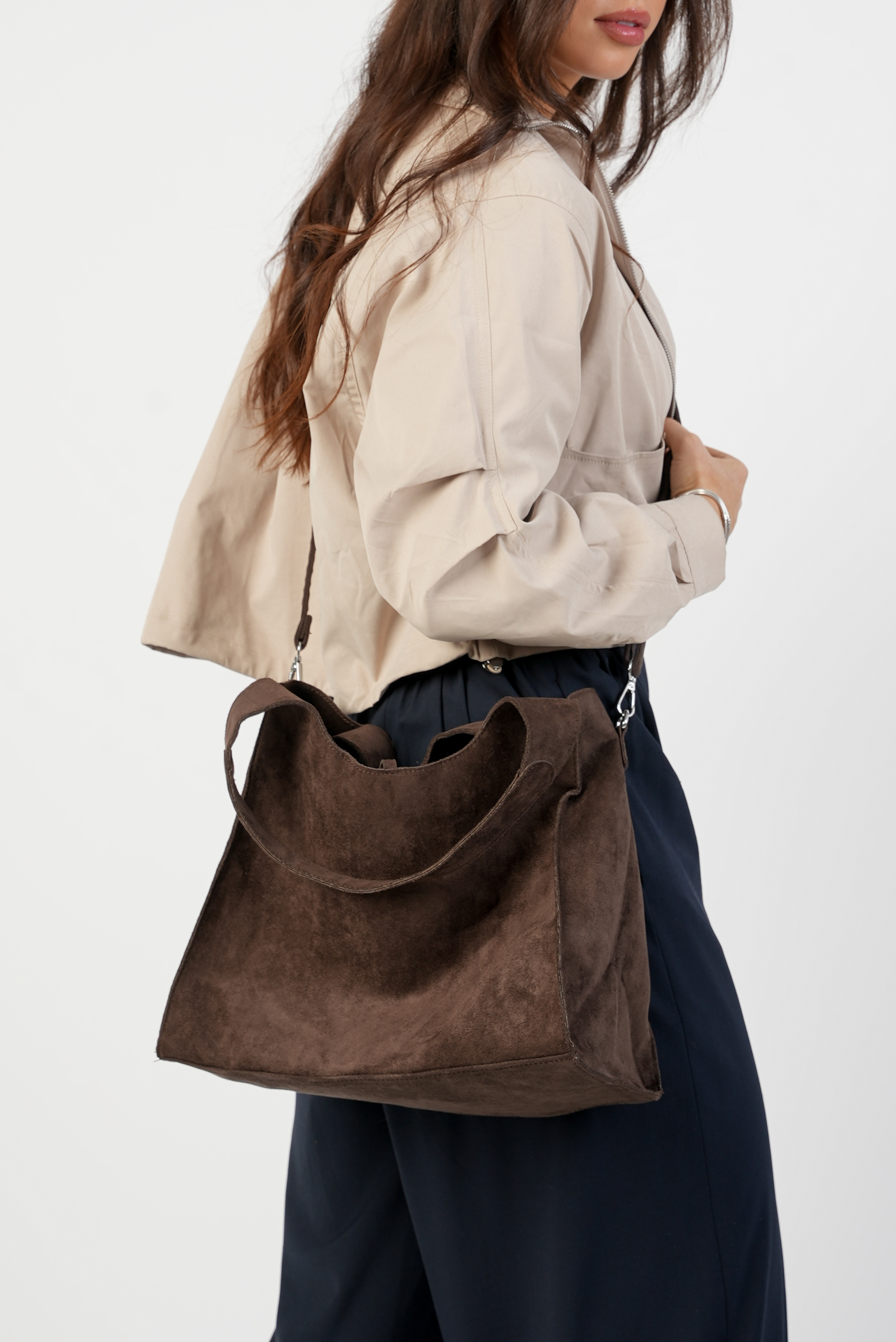 Vegan Suede Shoulder bag with zipper and strap in coffee