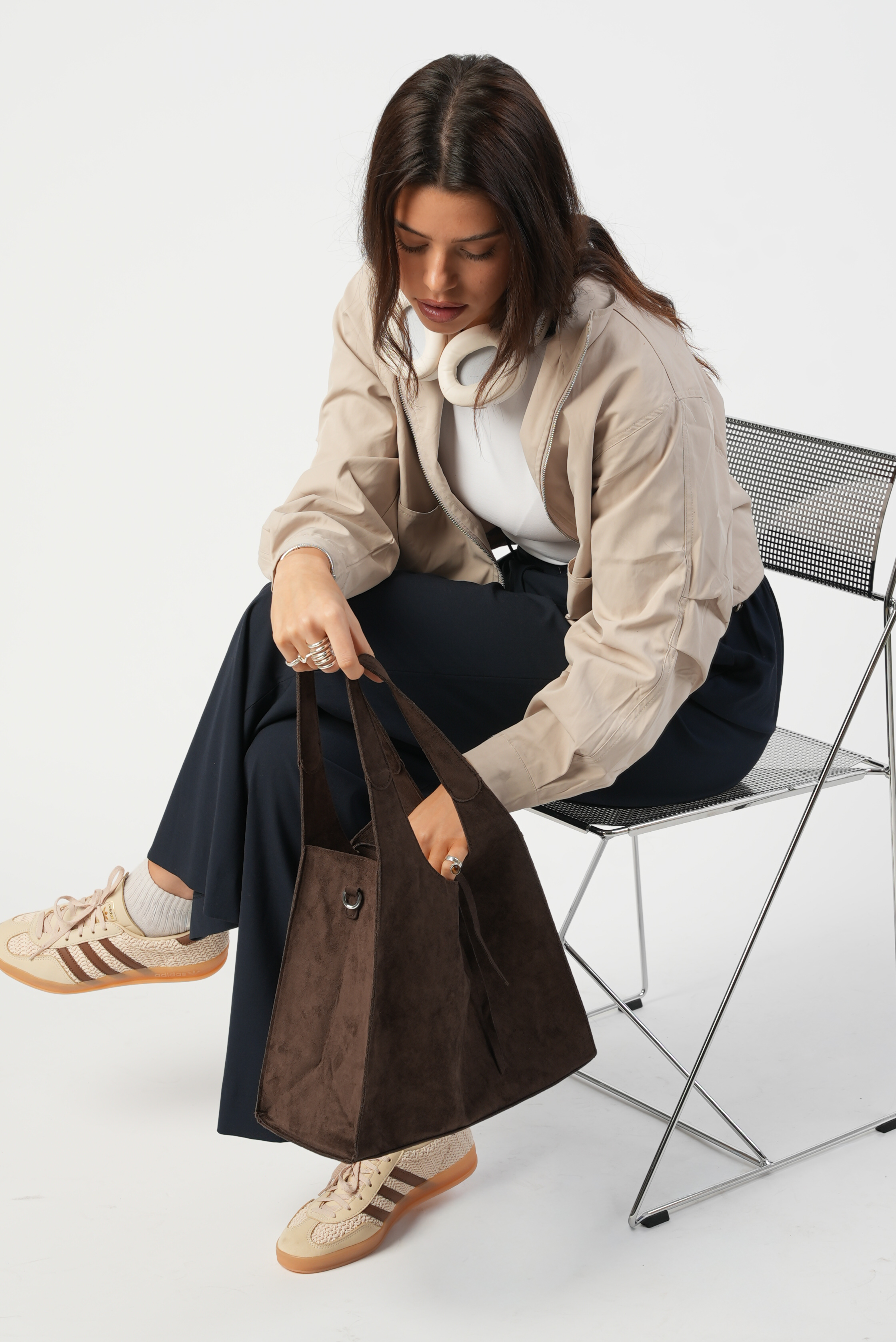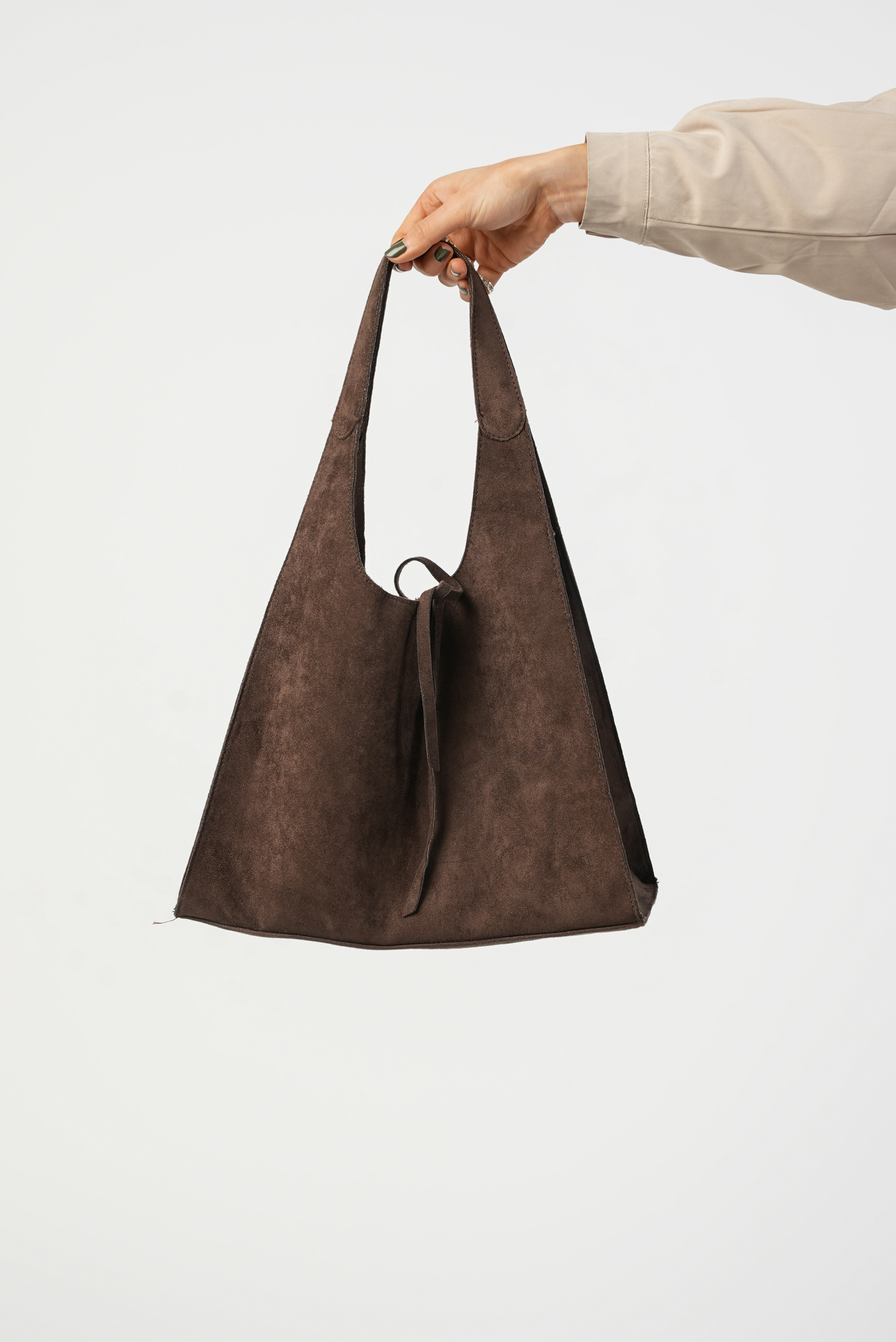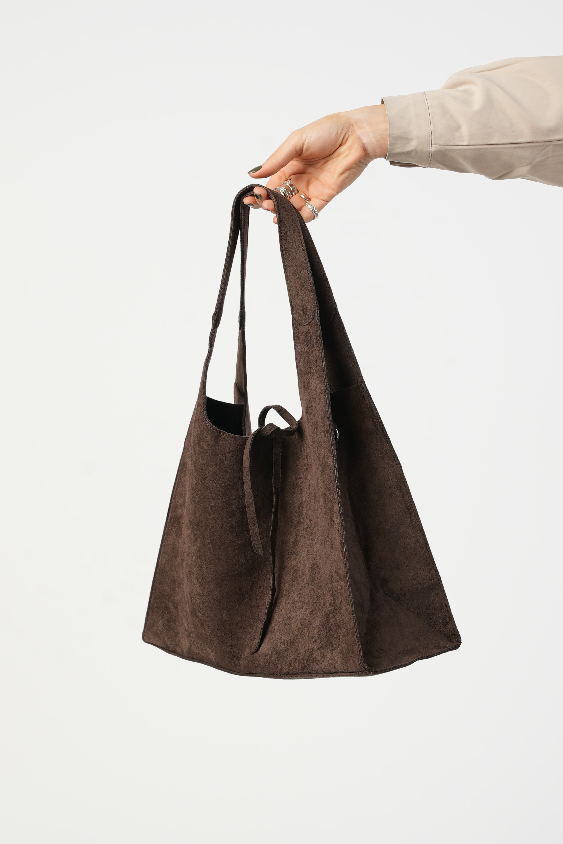 Vegan Suede Shoulder bag with zipper and strap in coffee
