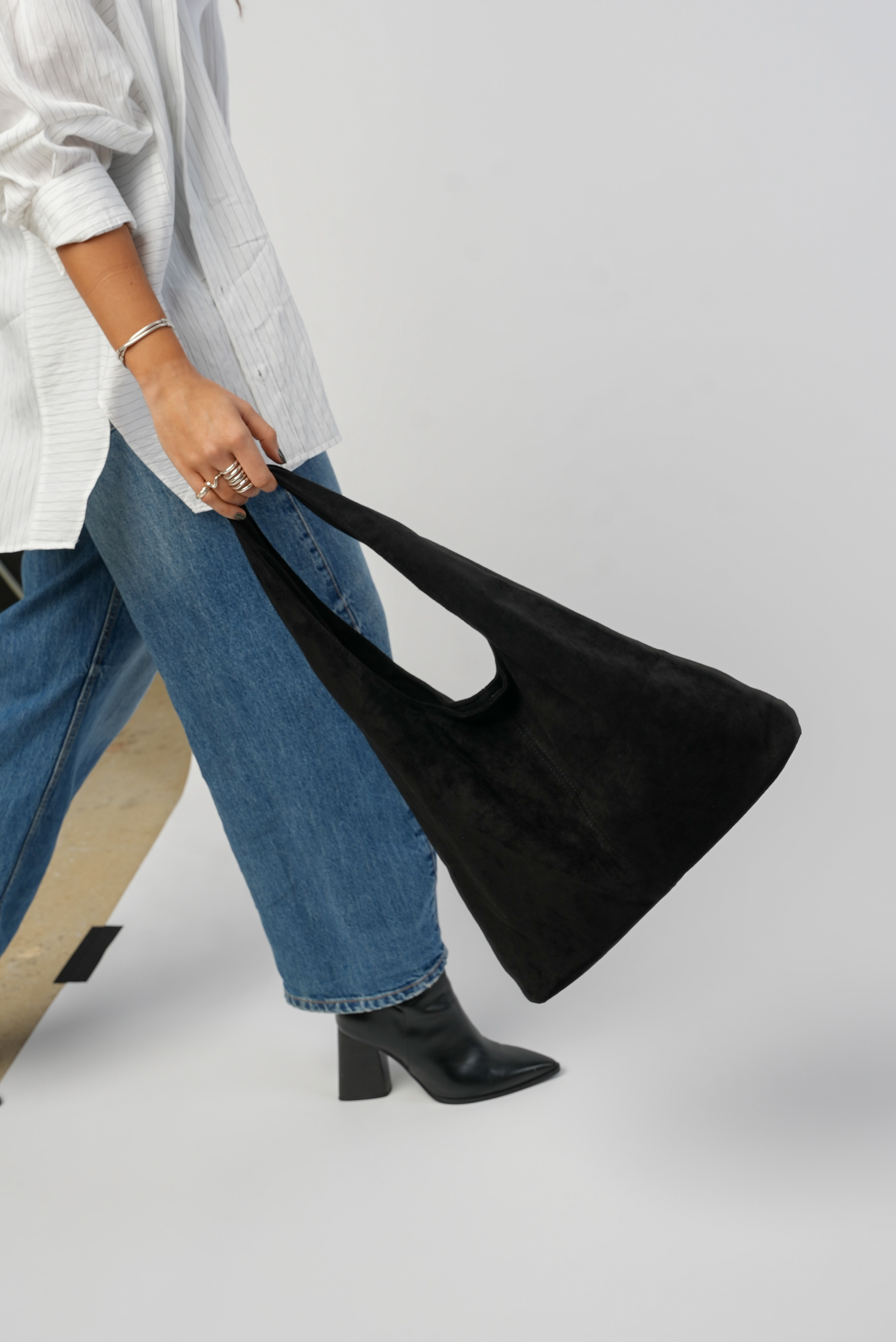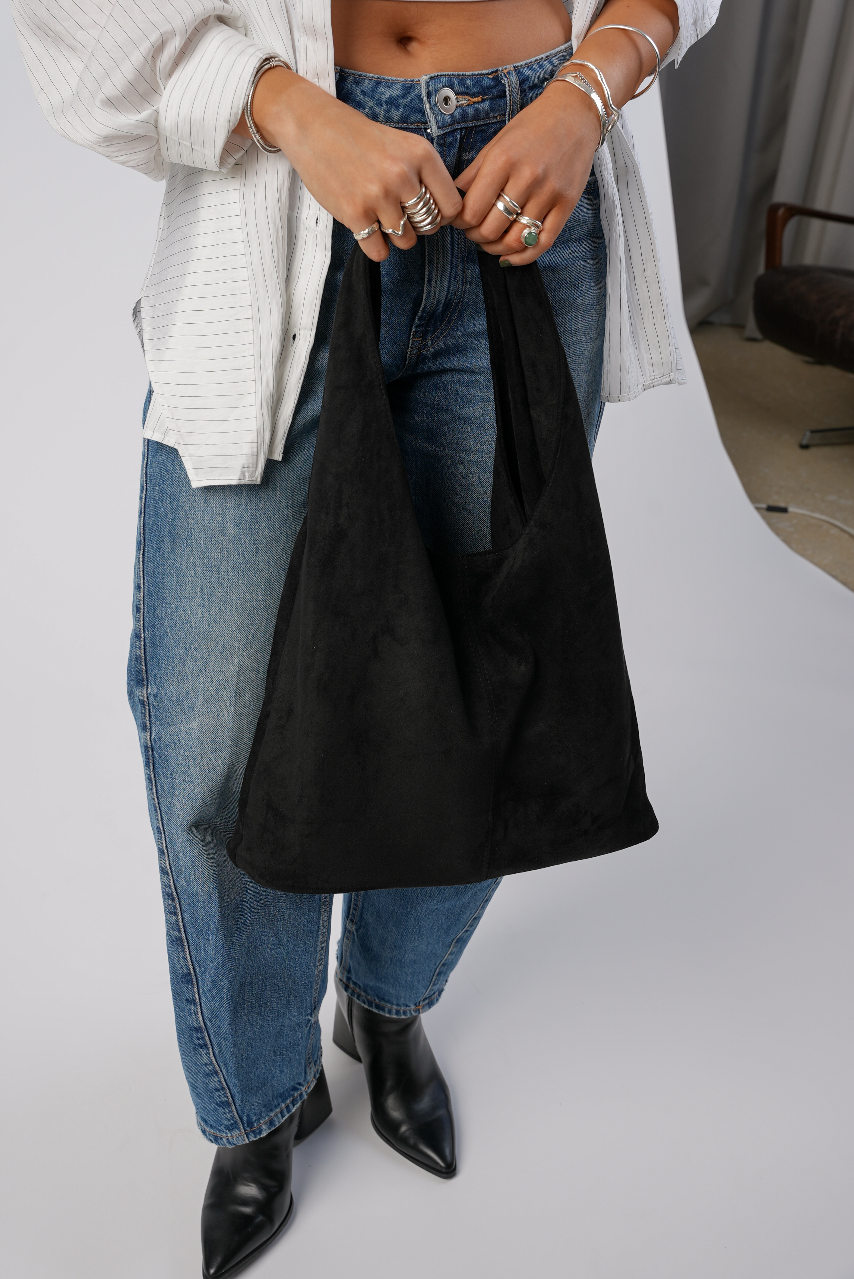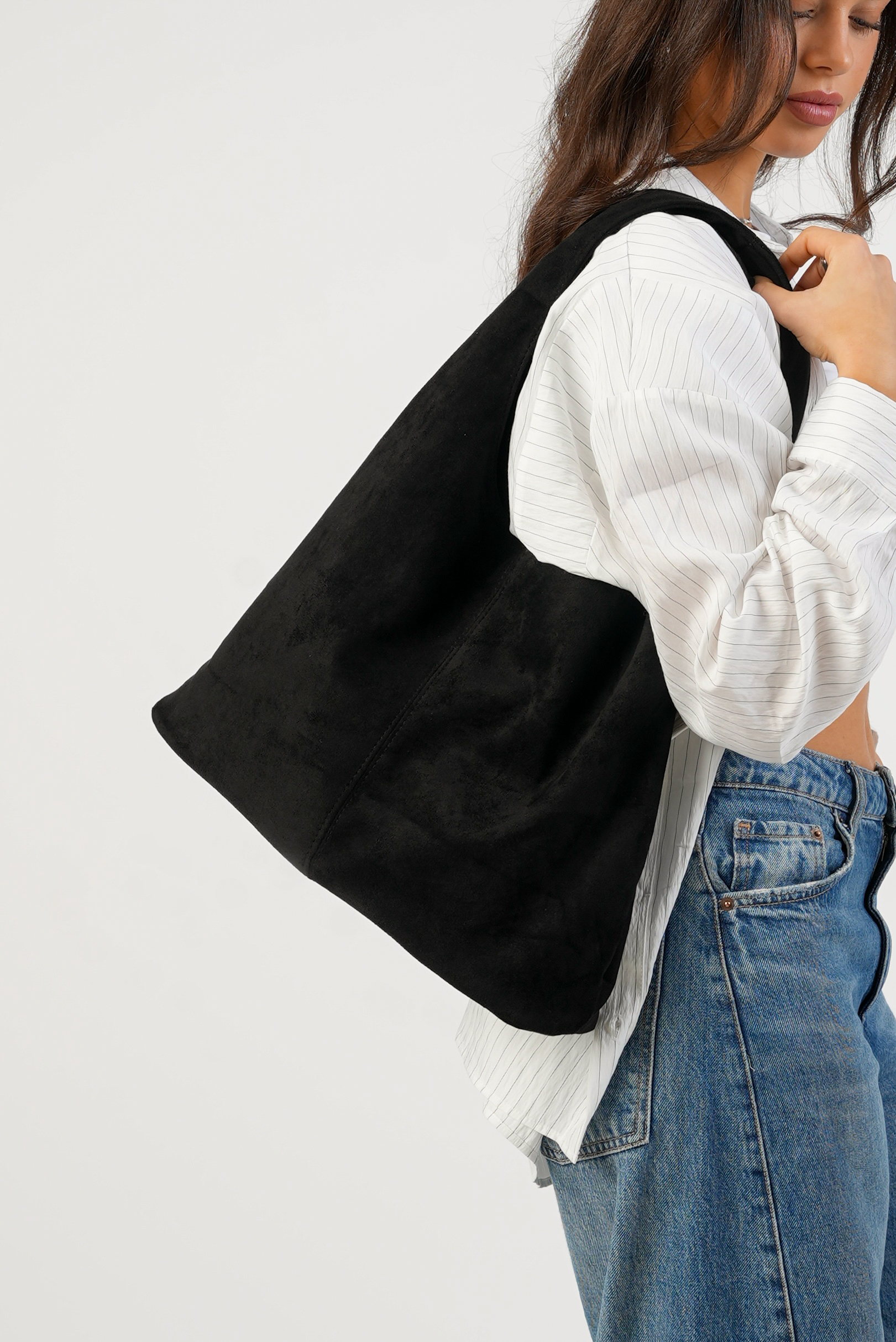 Vegan Suede Tote bag with clip in black