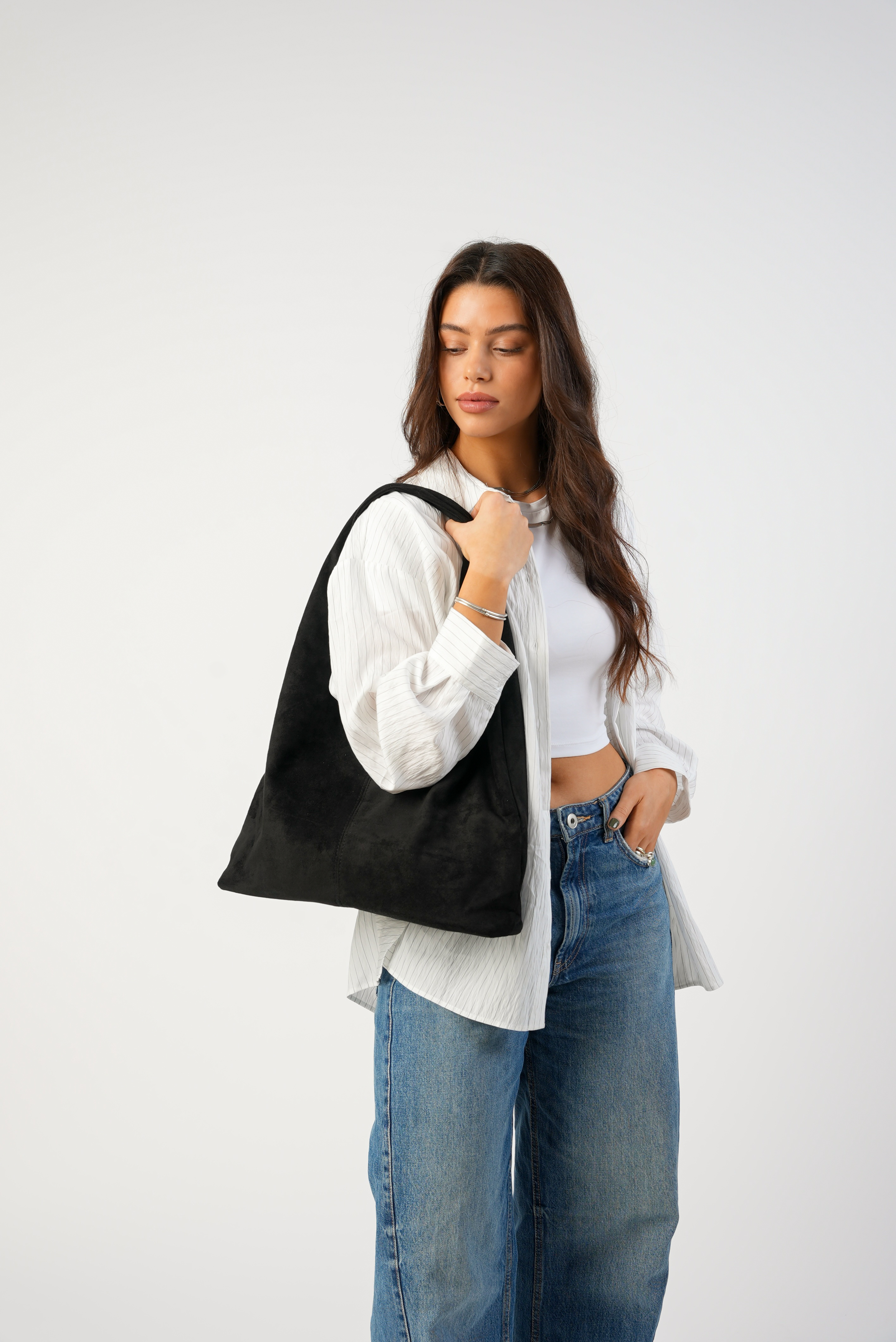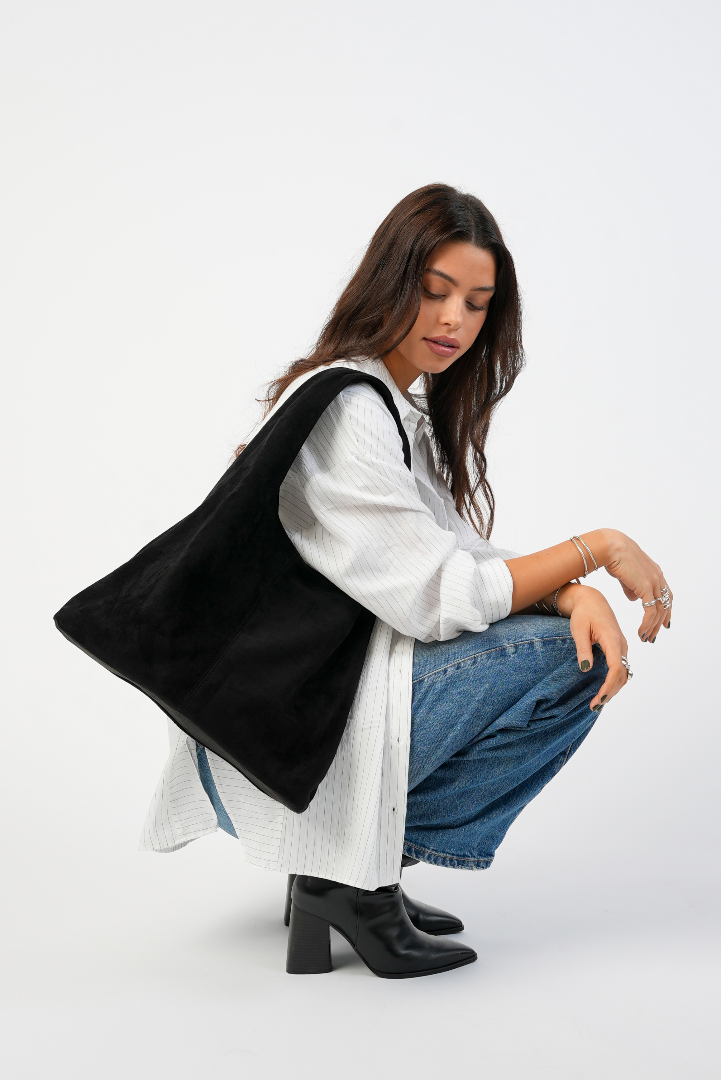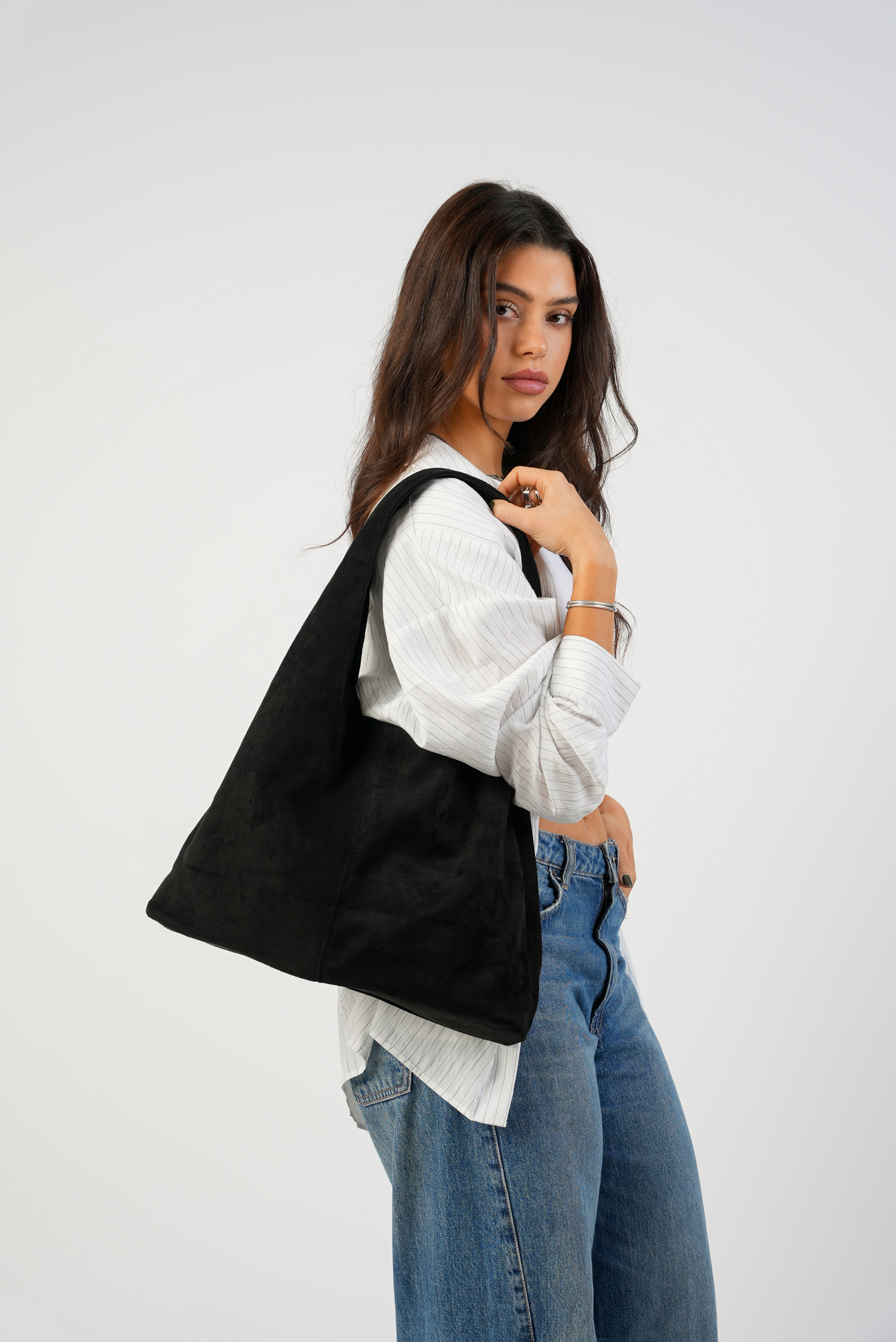 Vegan Suede Tote bag with clip in black