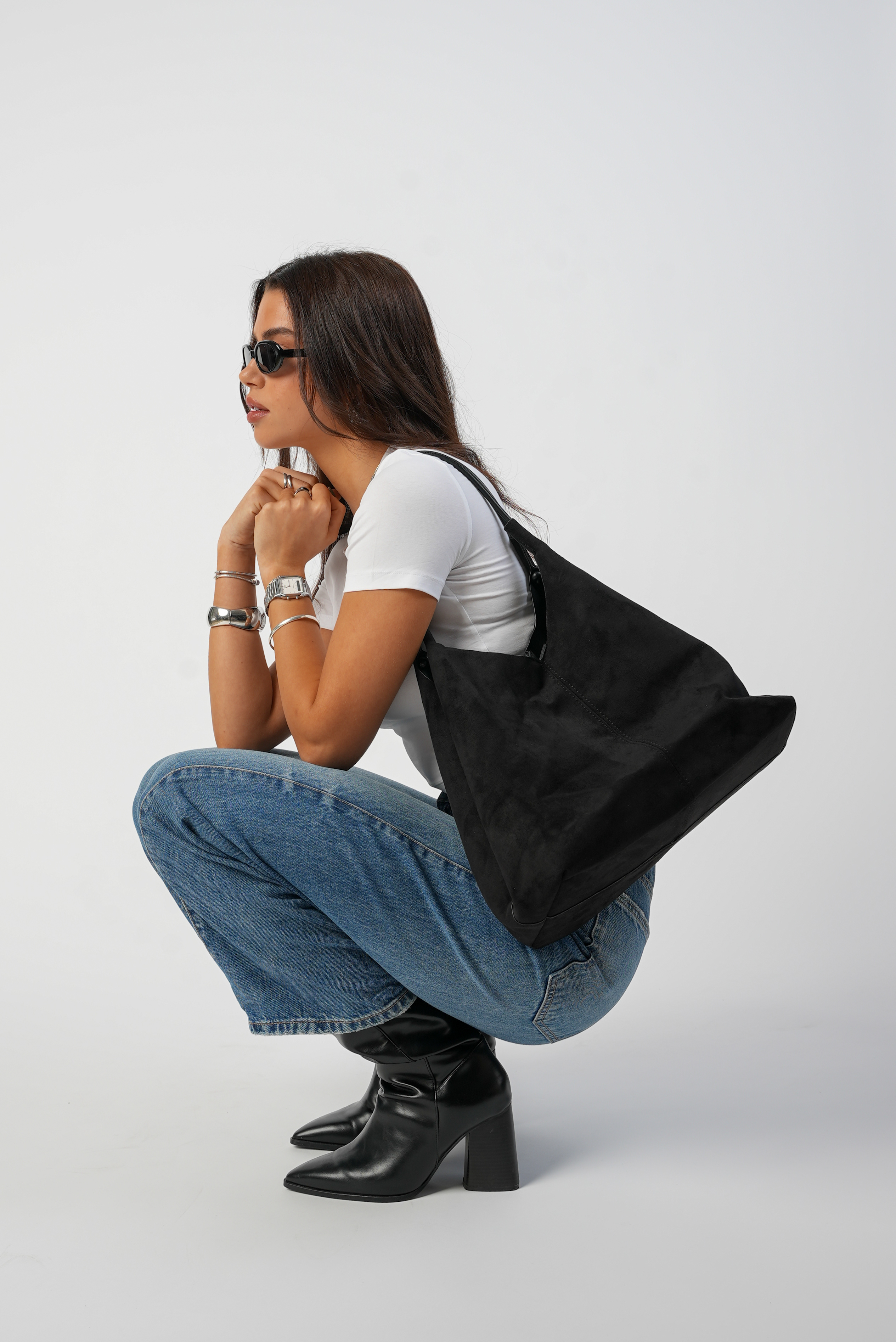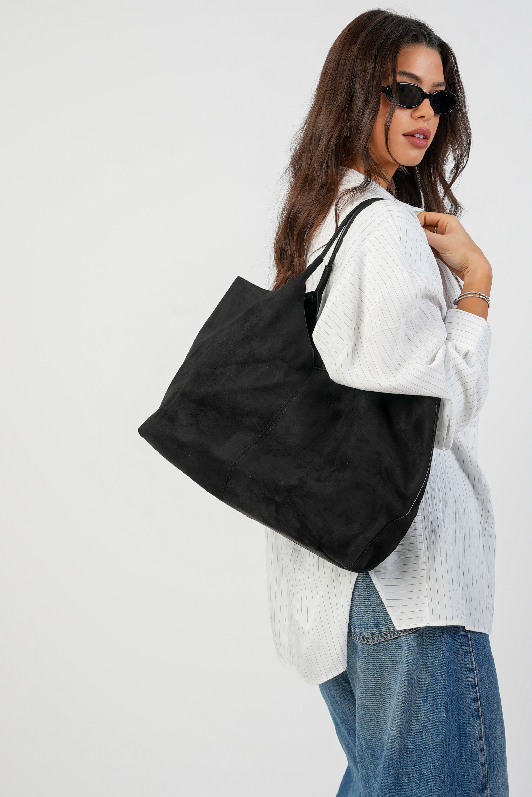 Vegan Suede Wide bag in black