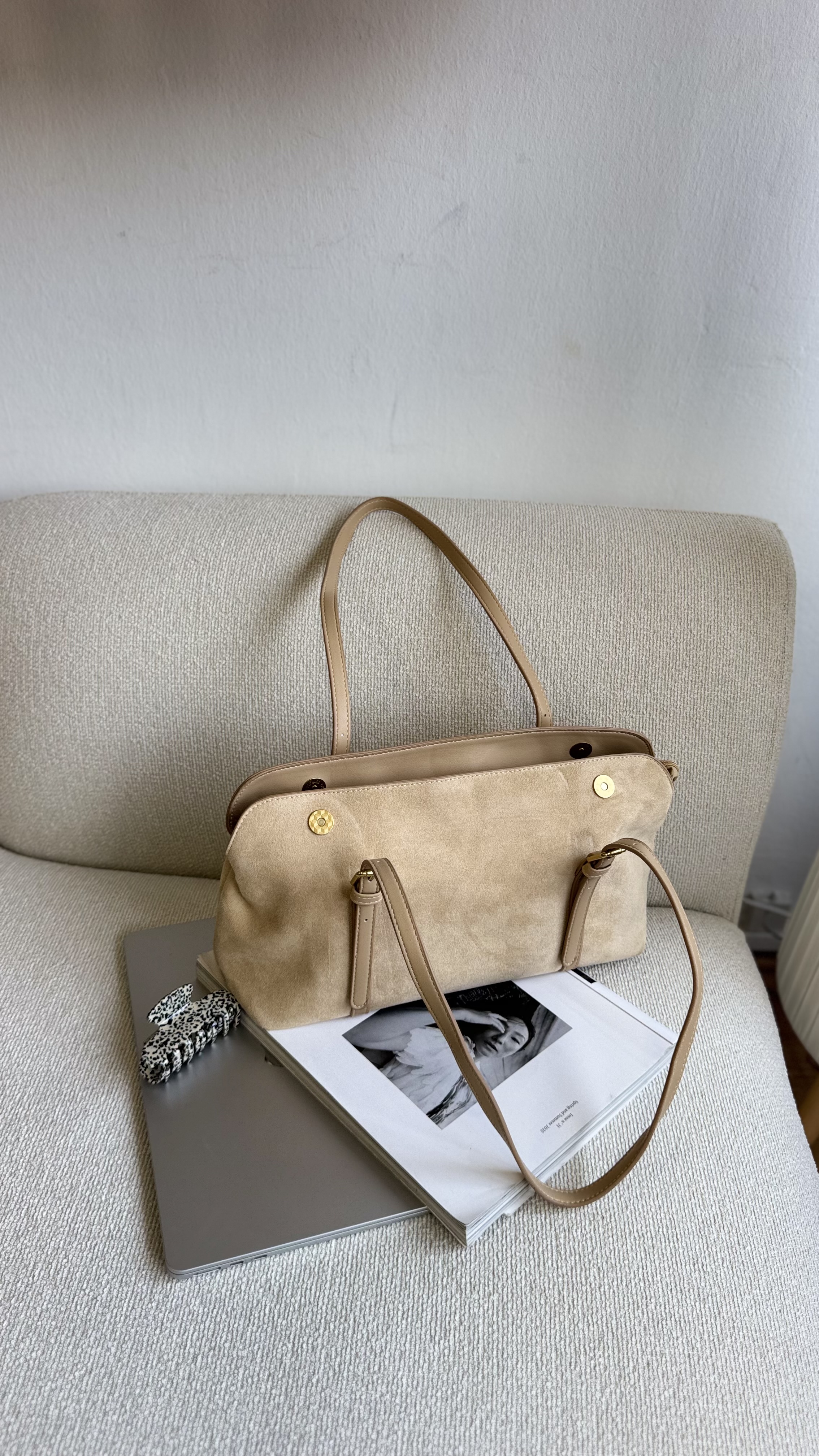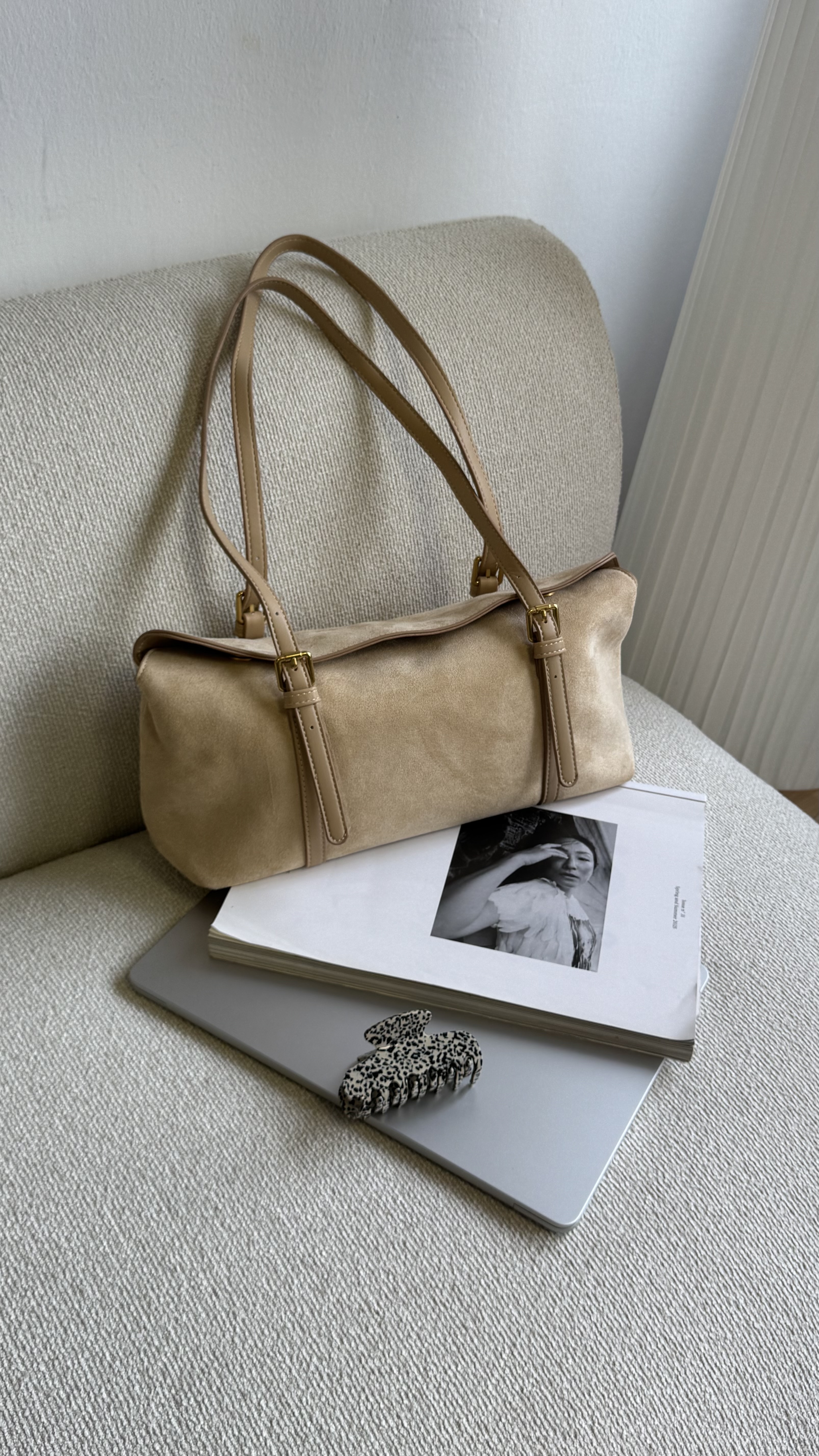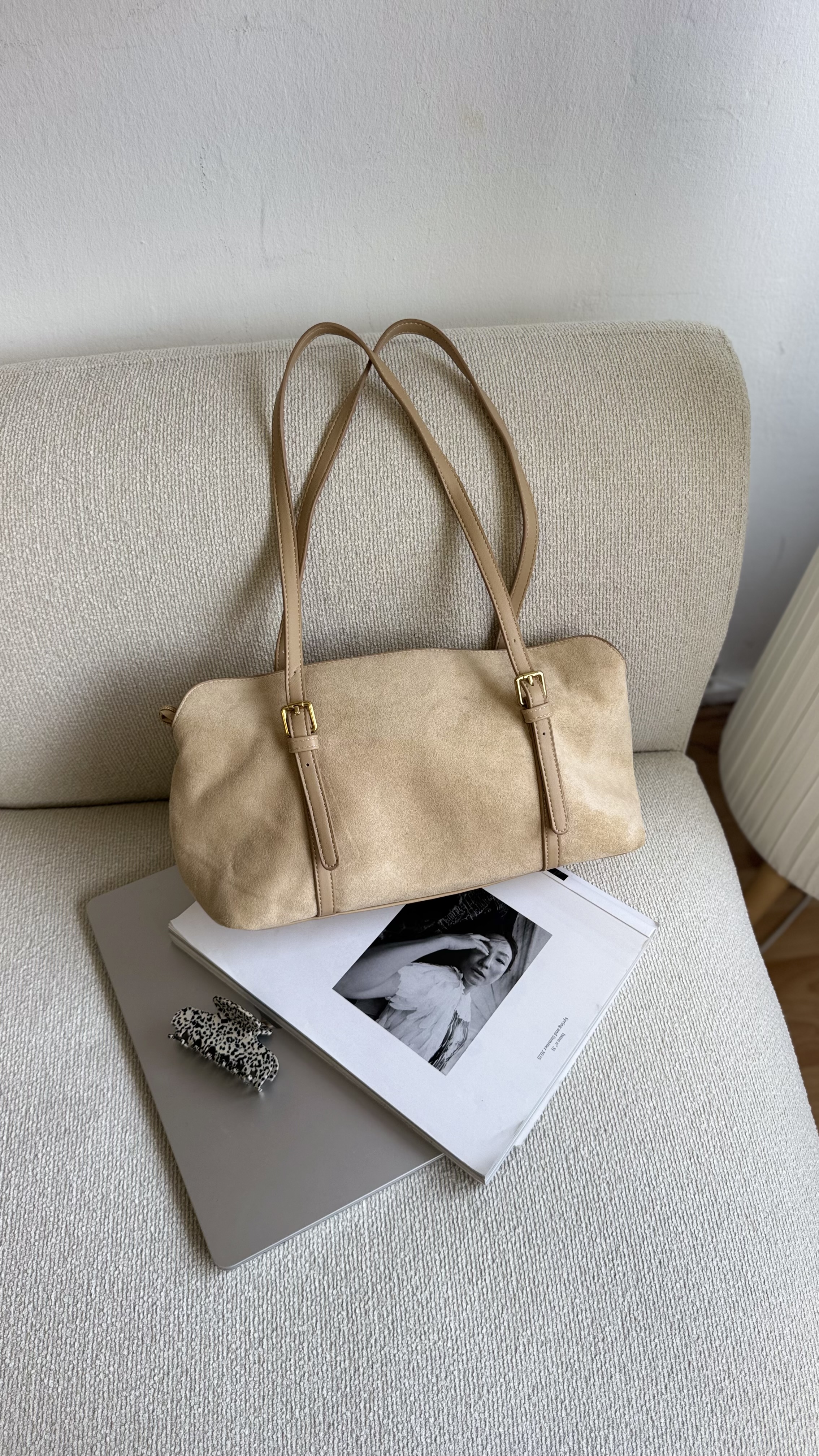 Vegan suede baguette bag