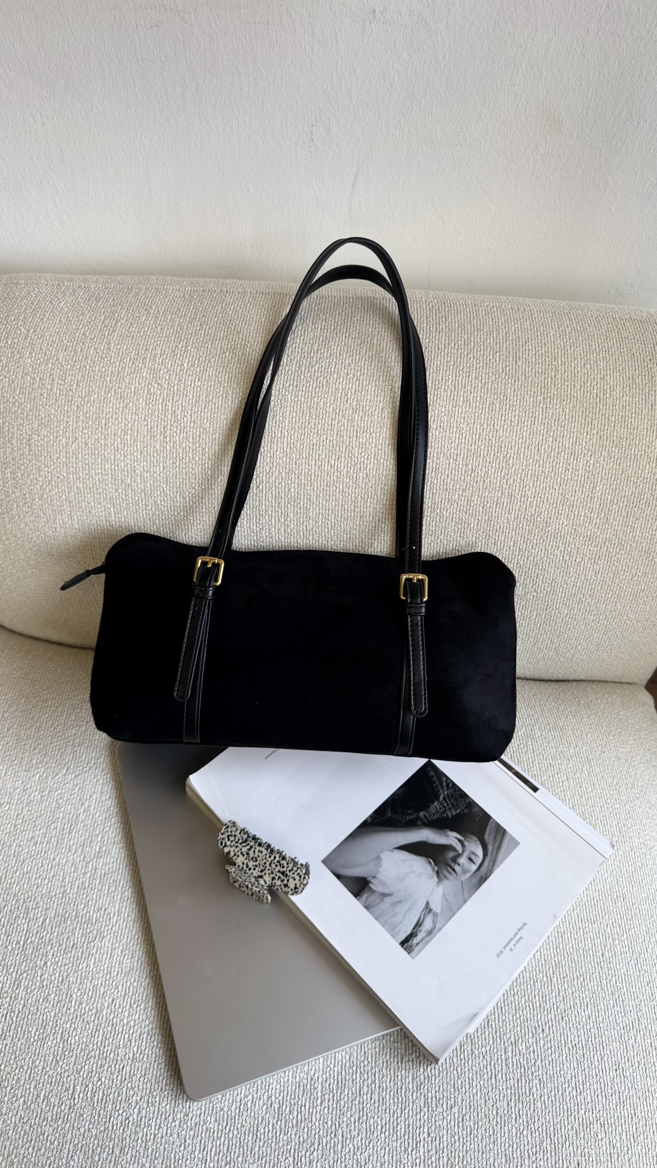 Vegan suede baguette bag