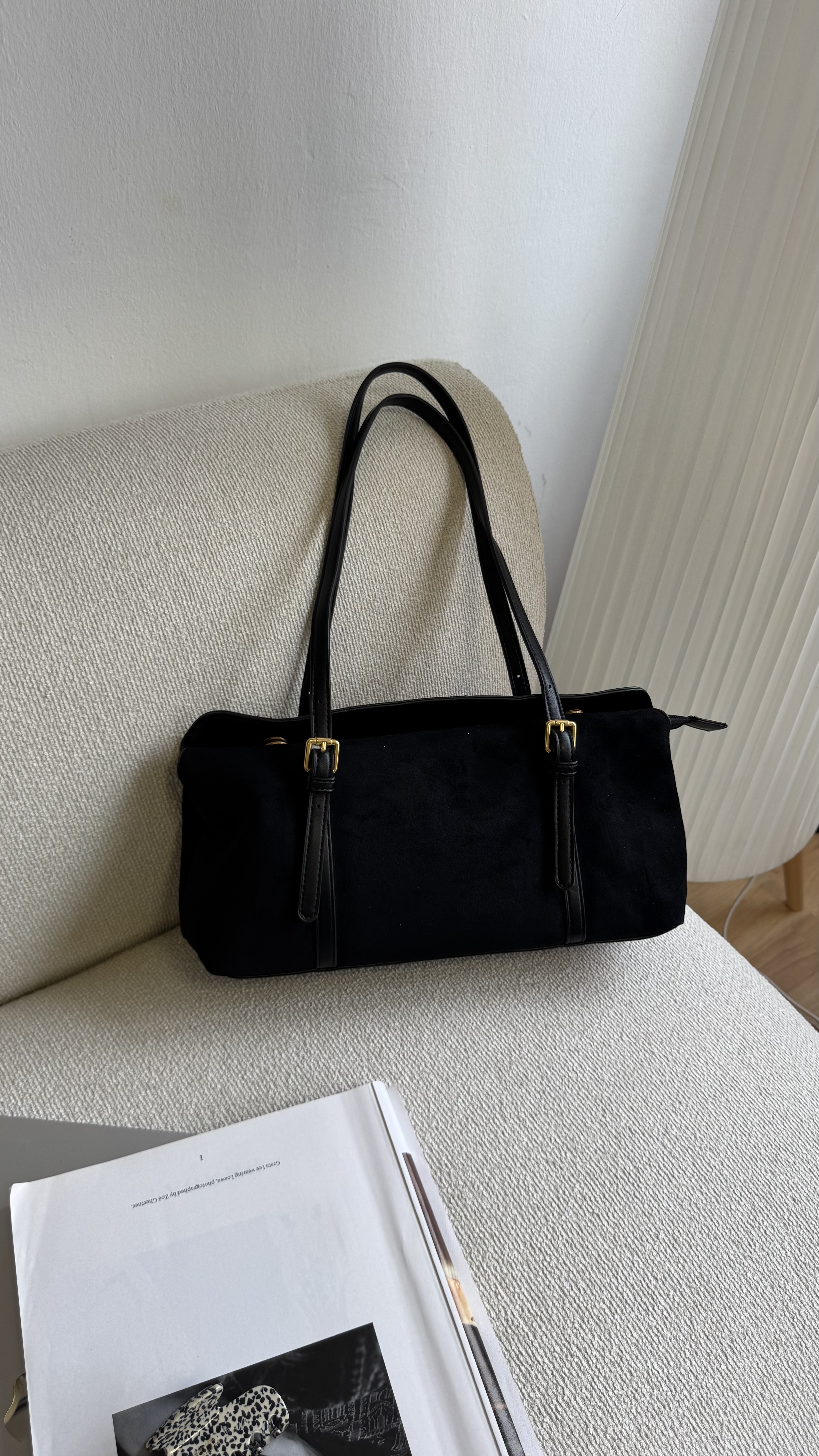 Vegan suede baguette bag in black