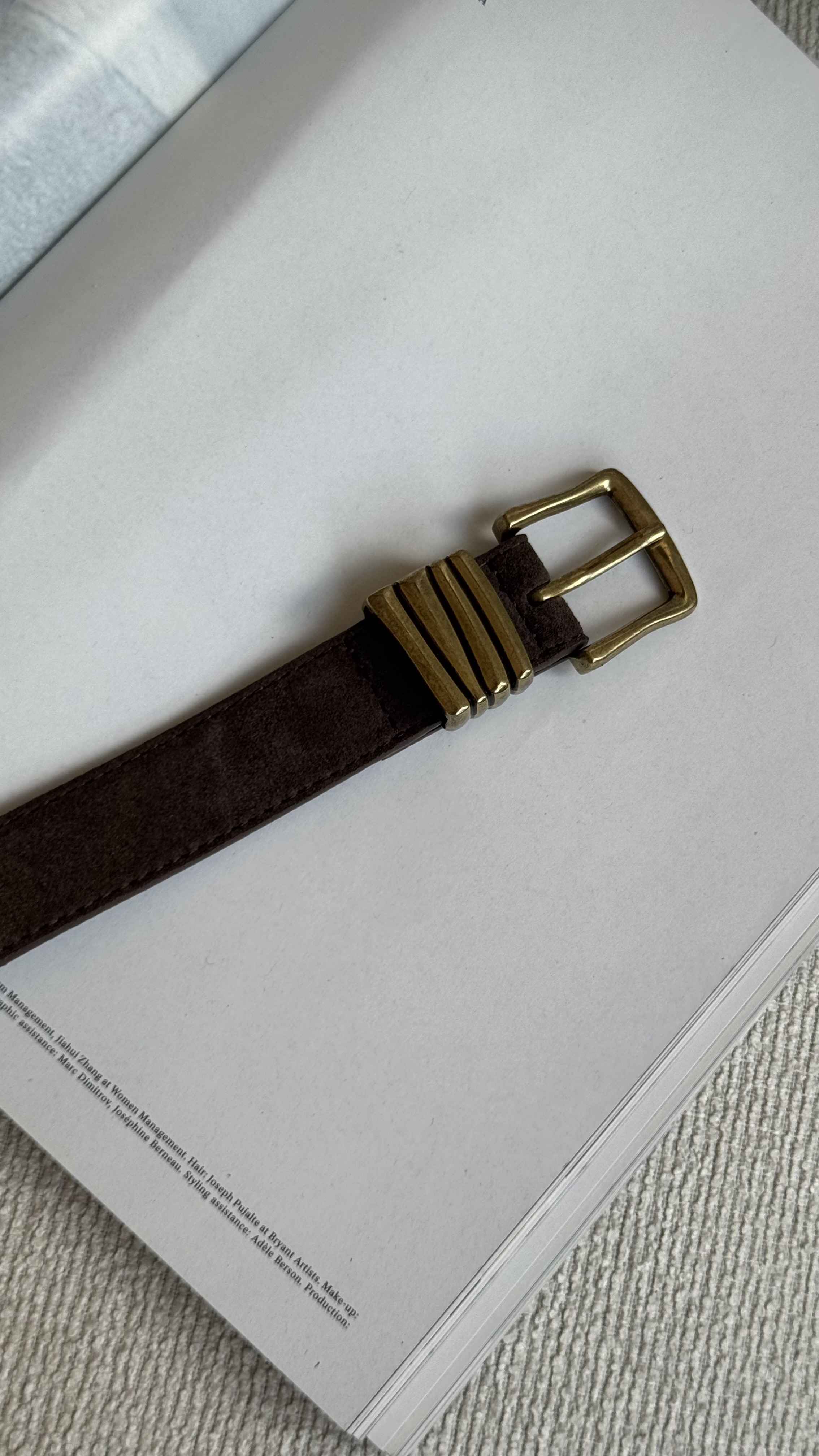Suede Leather Belt with Bold Buckle in coffee