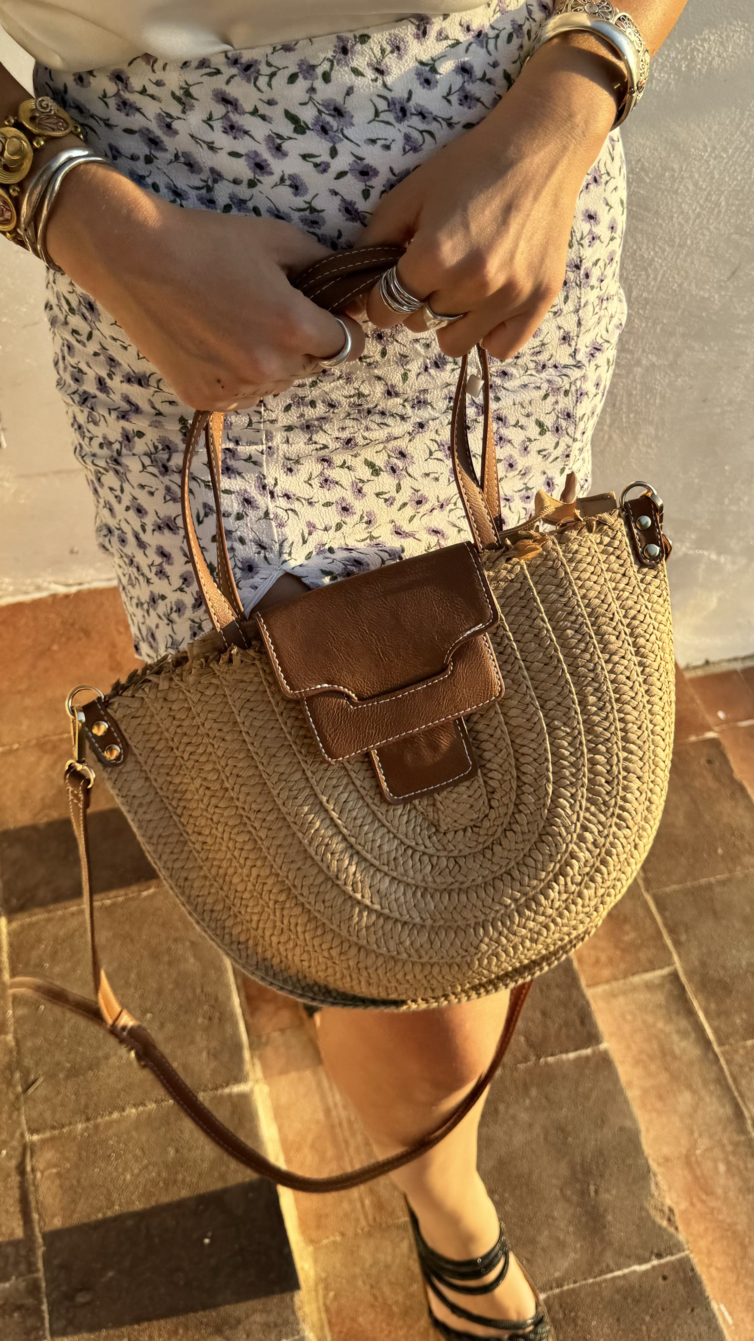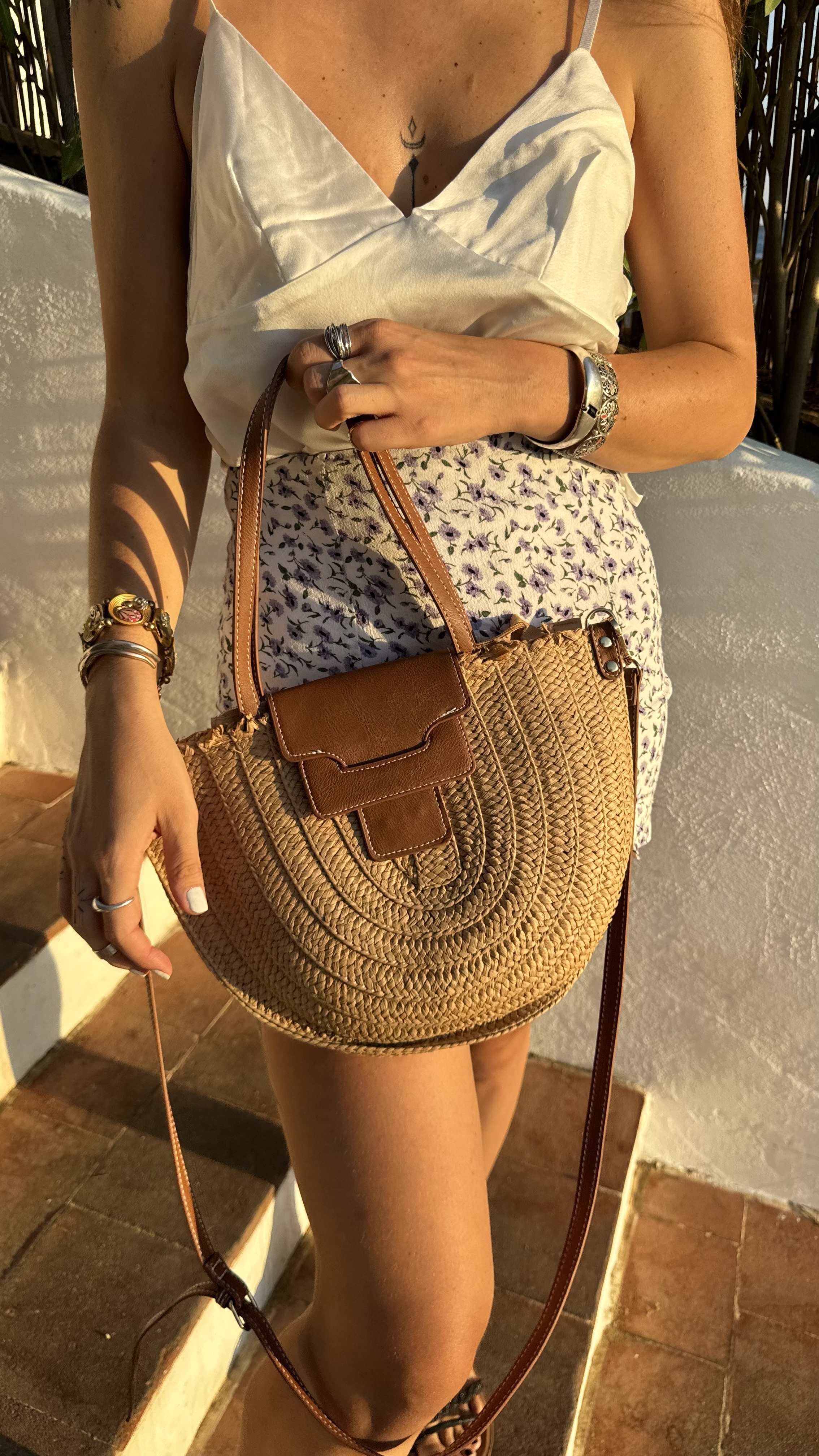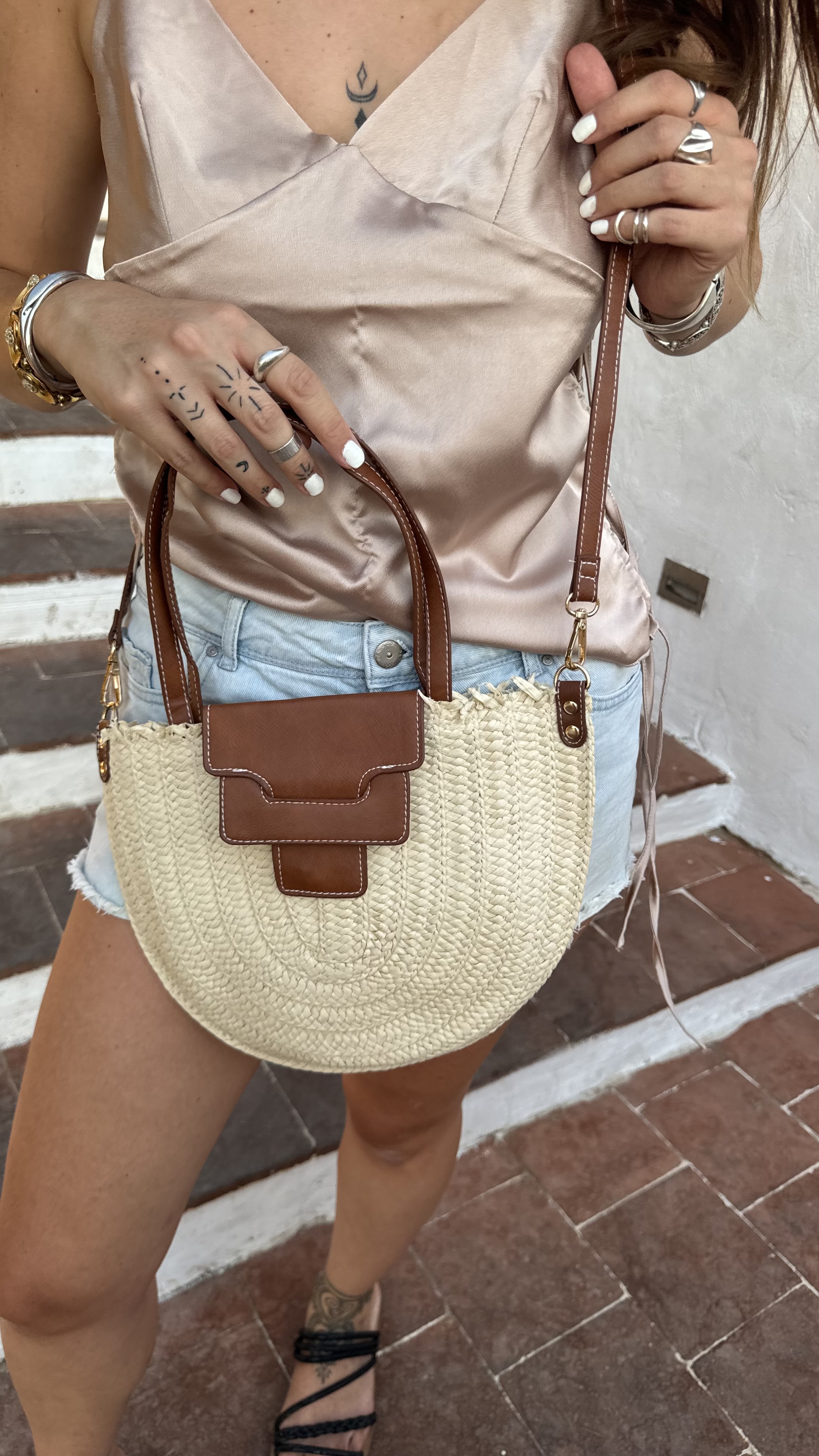 Basket bag with vegan leather details