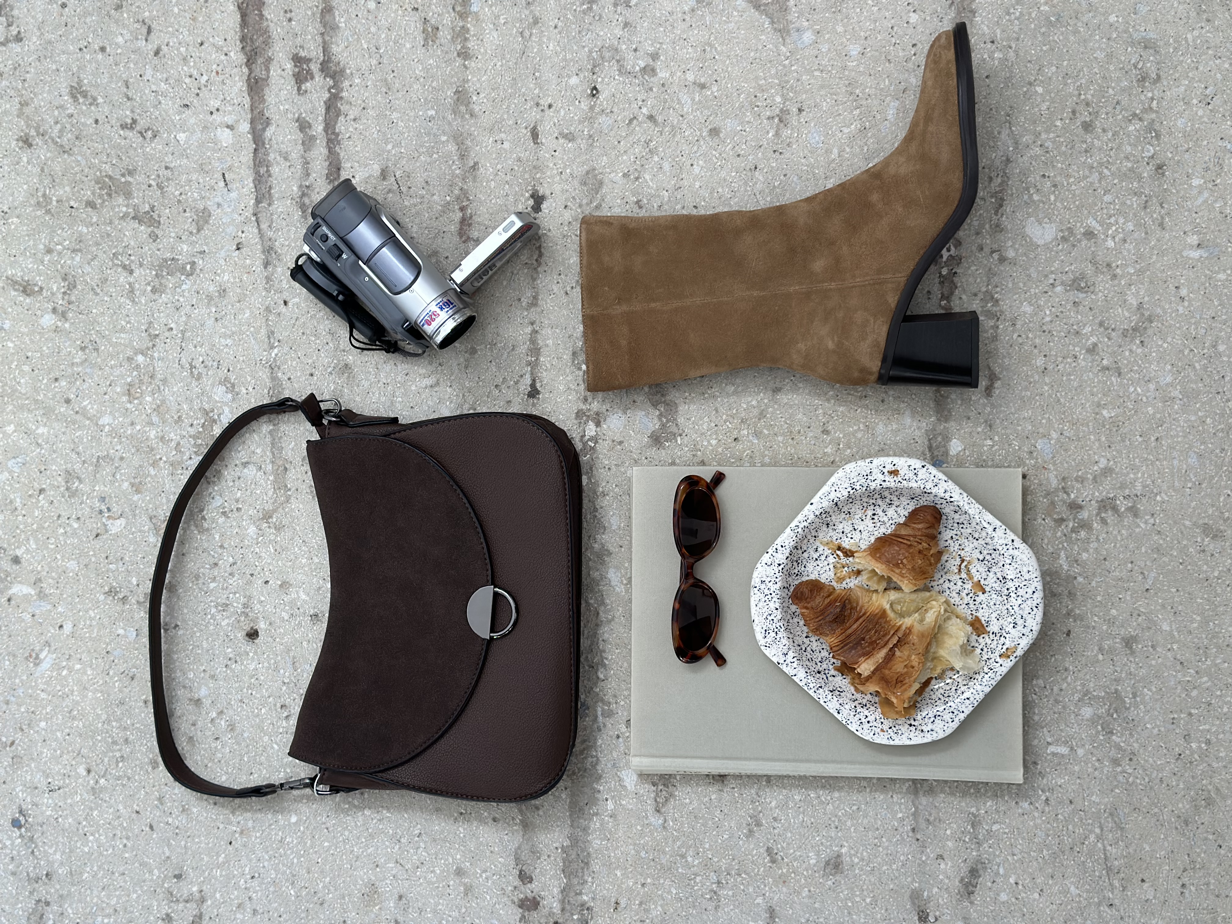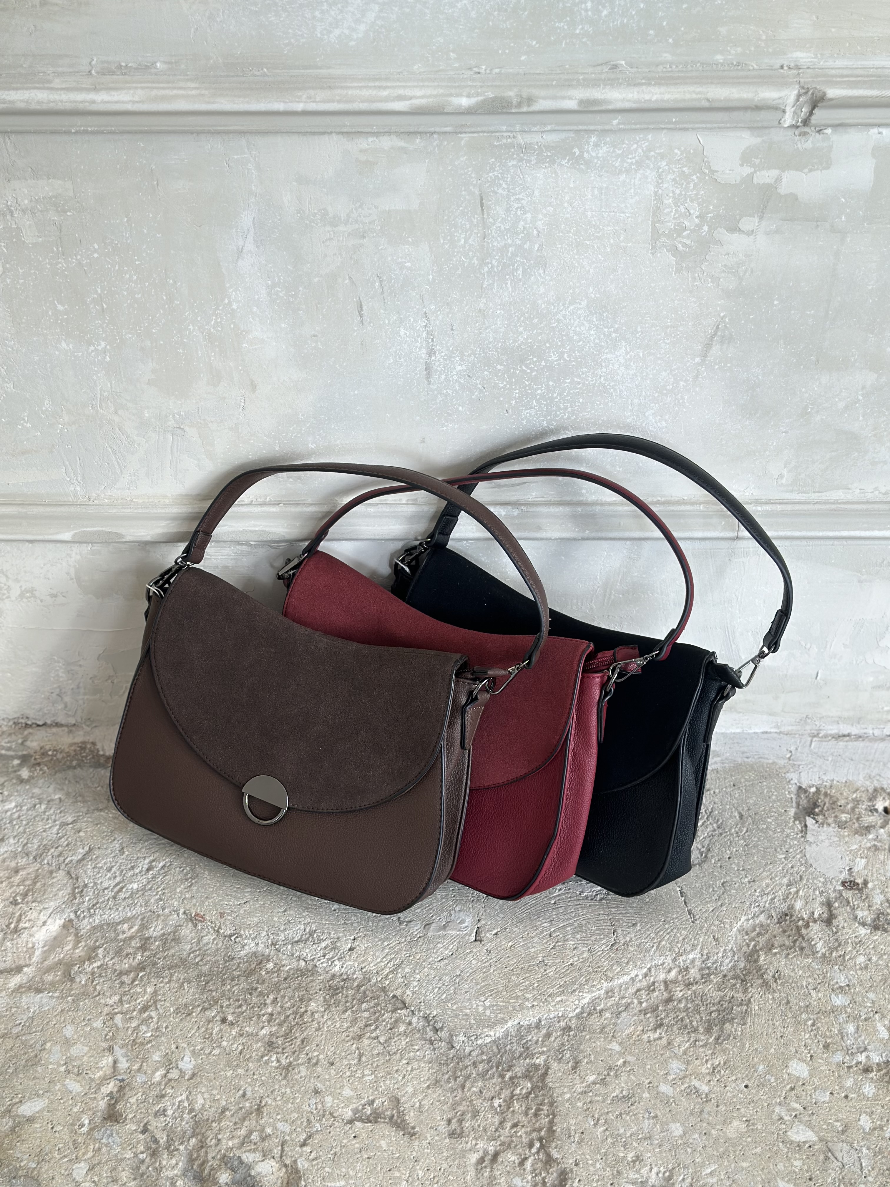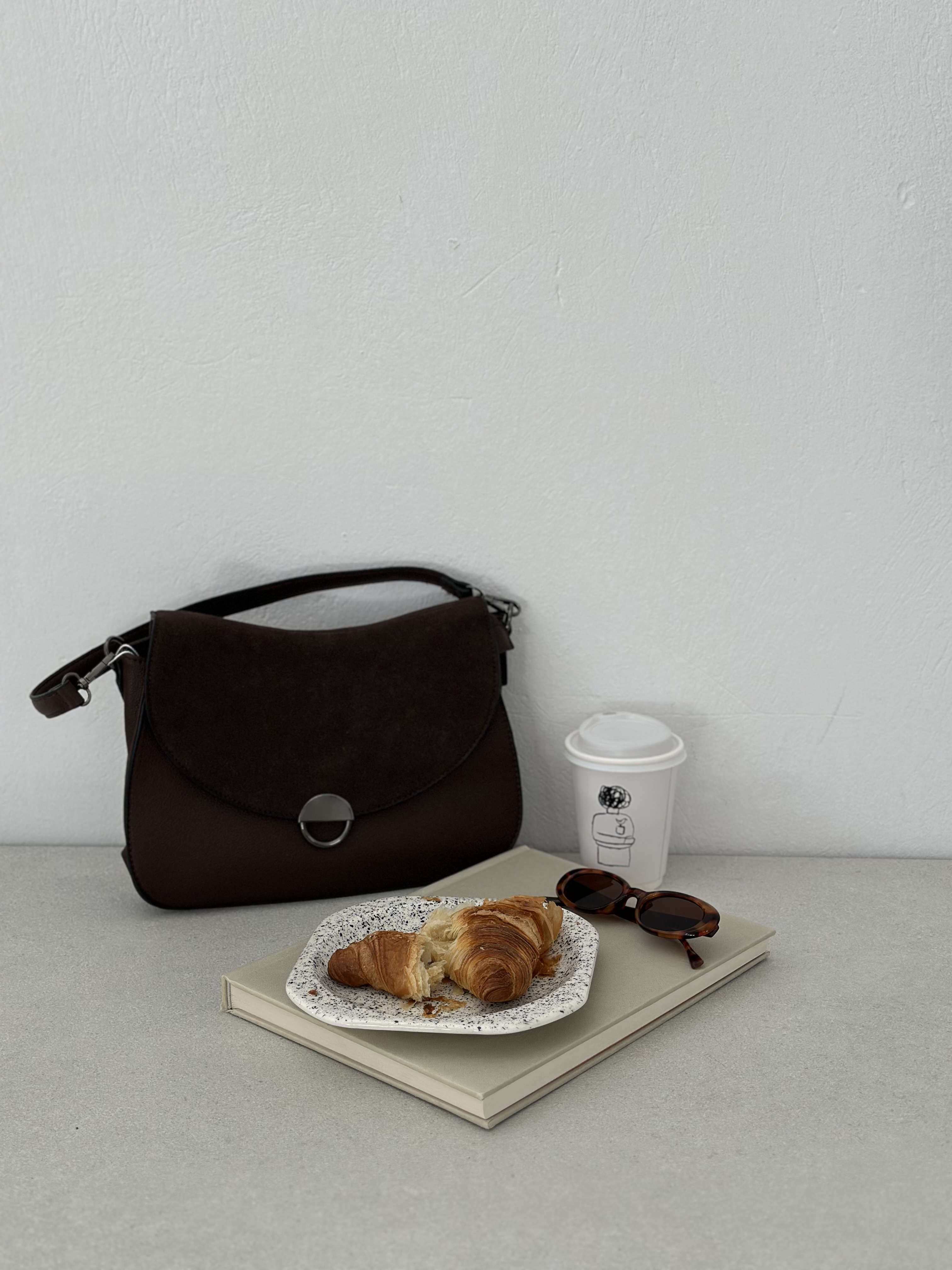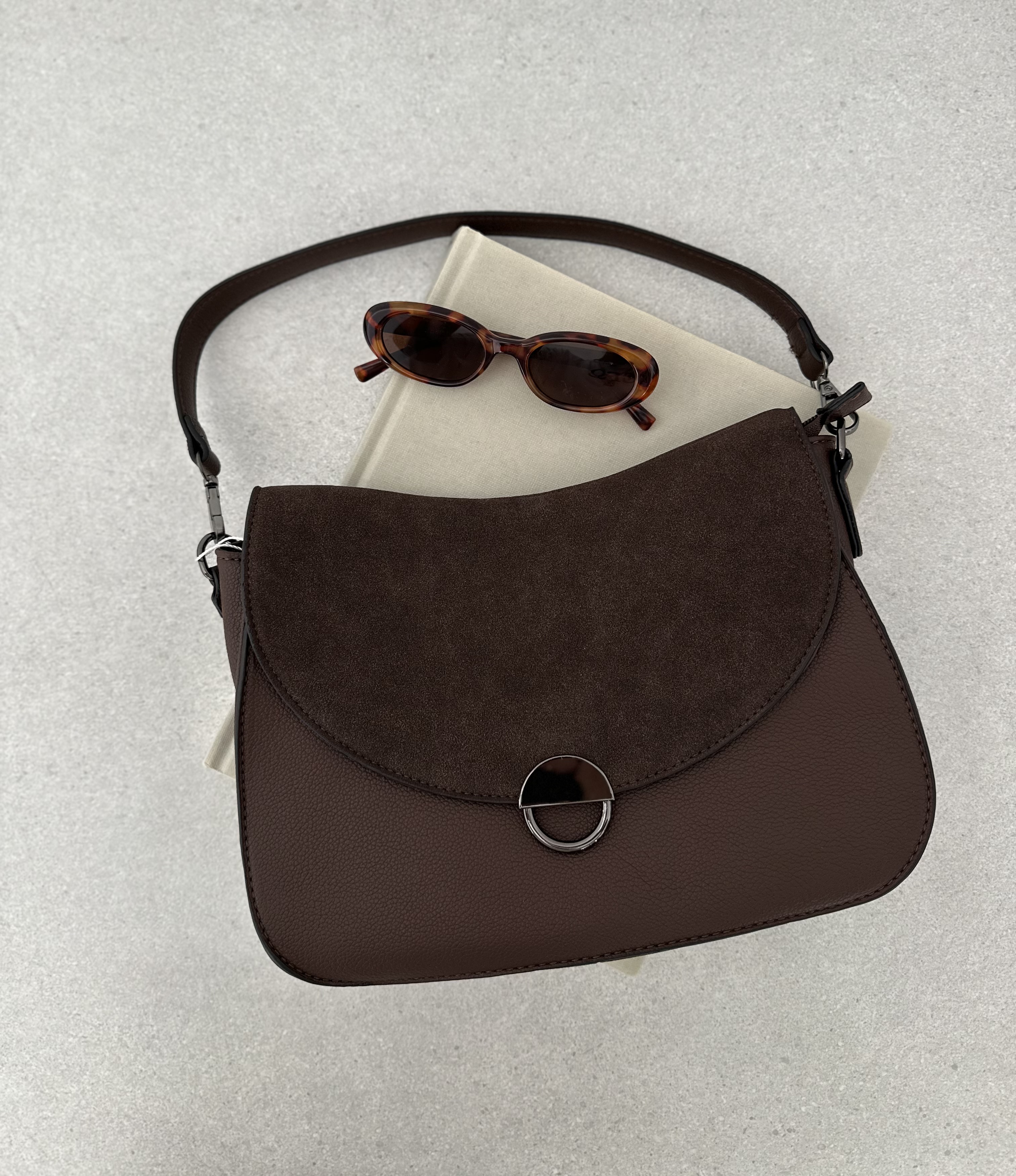 Matt Shoulder Bag with Vegan Suede detail in chocolate brown
