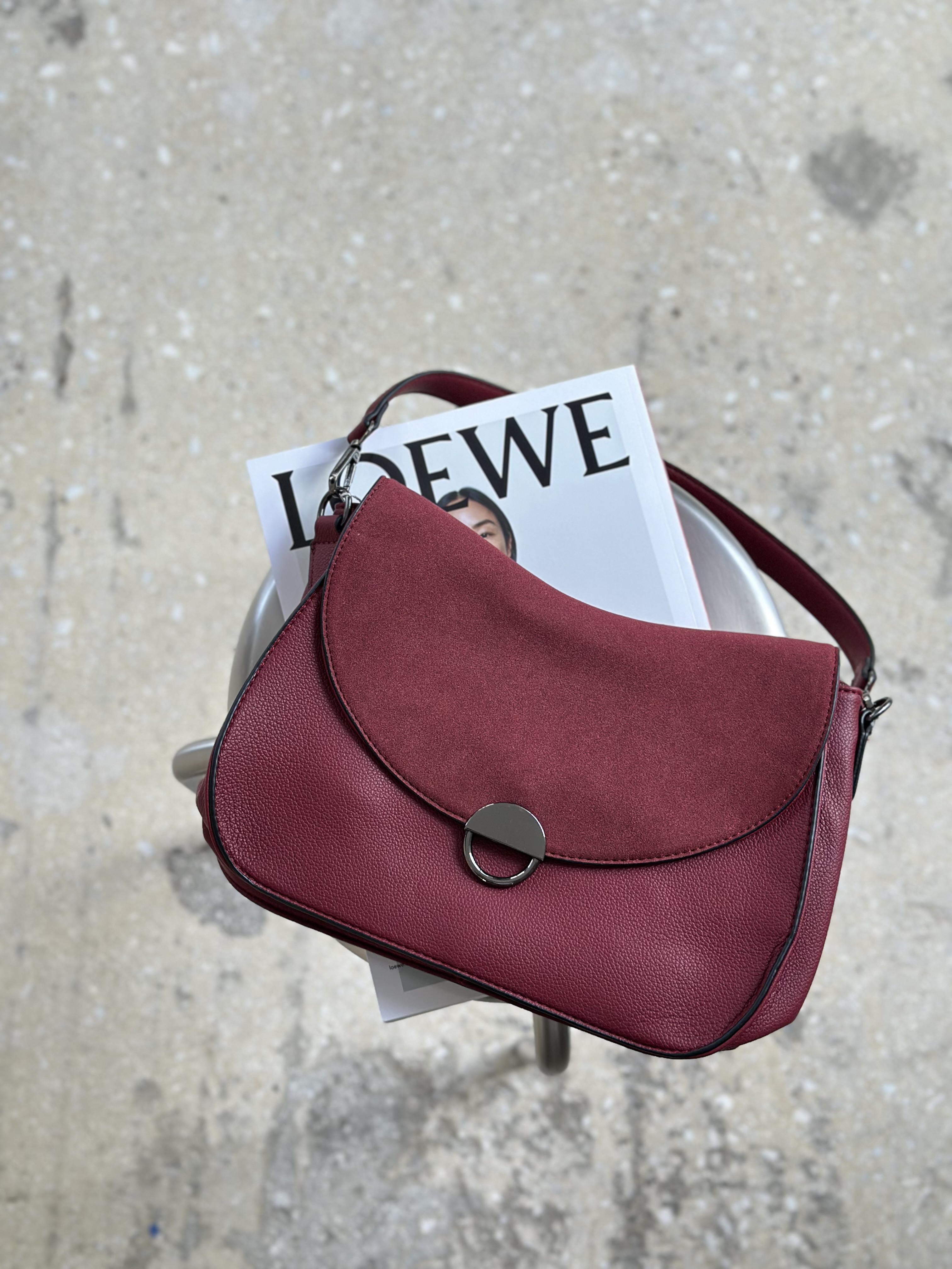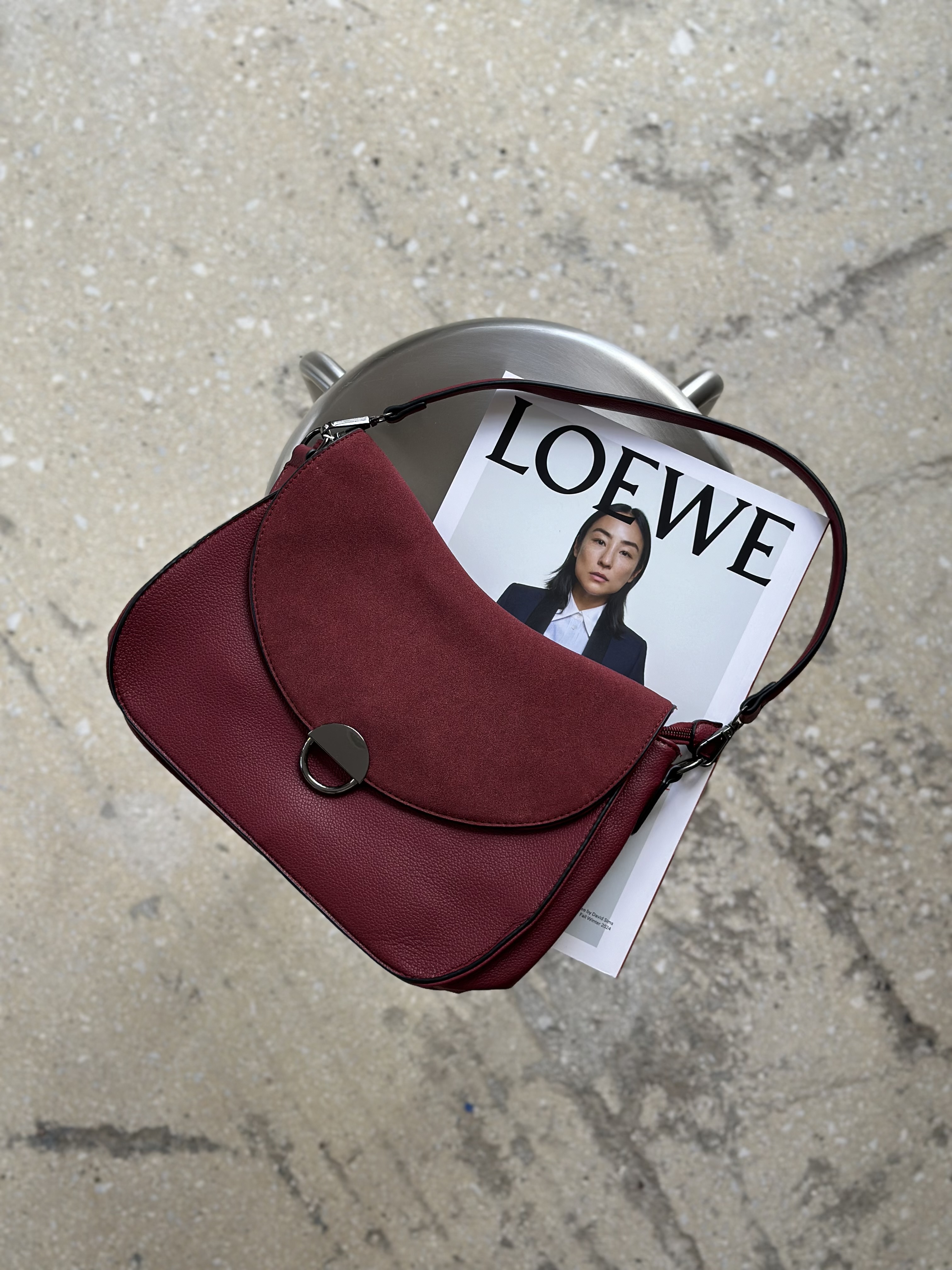 Matt Shoulder Bag with Vegan Suede detail in wine red