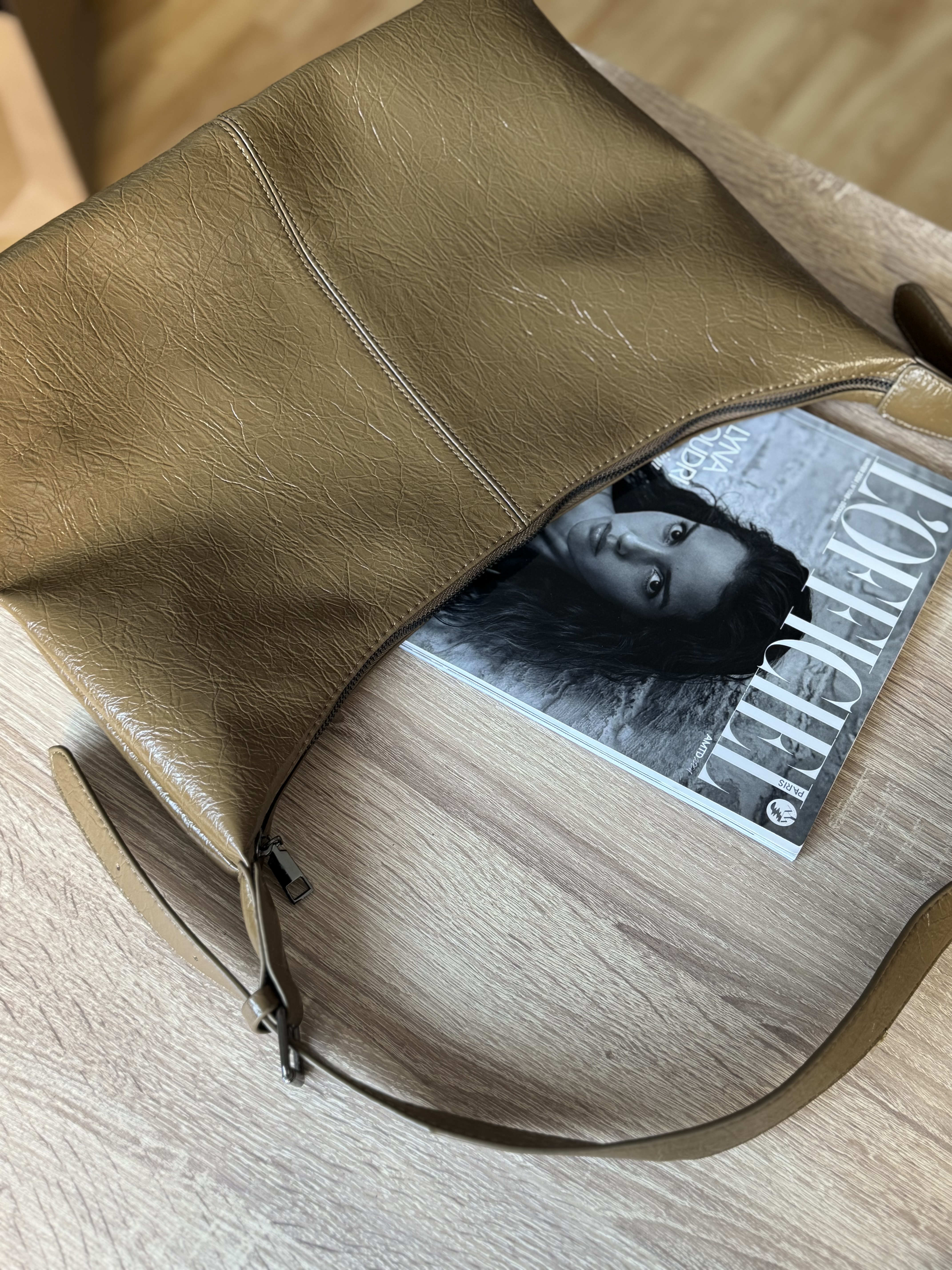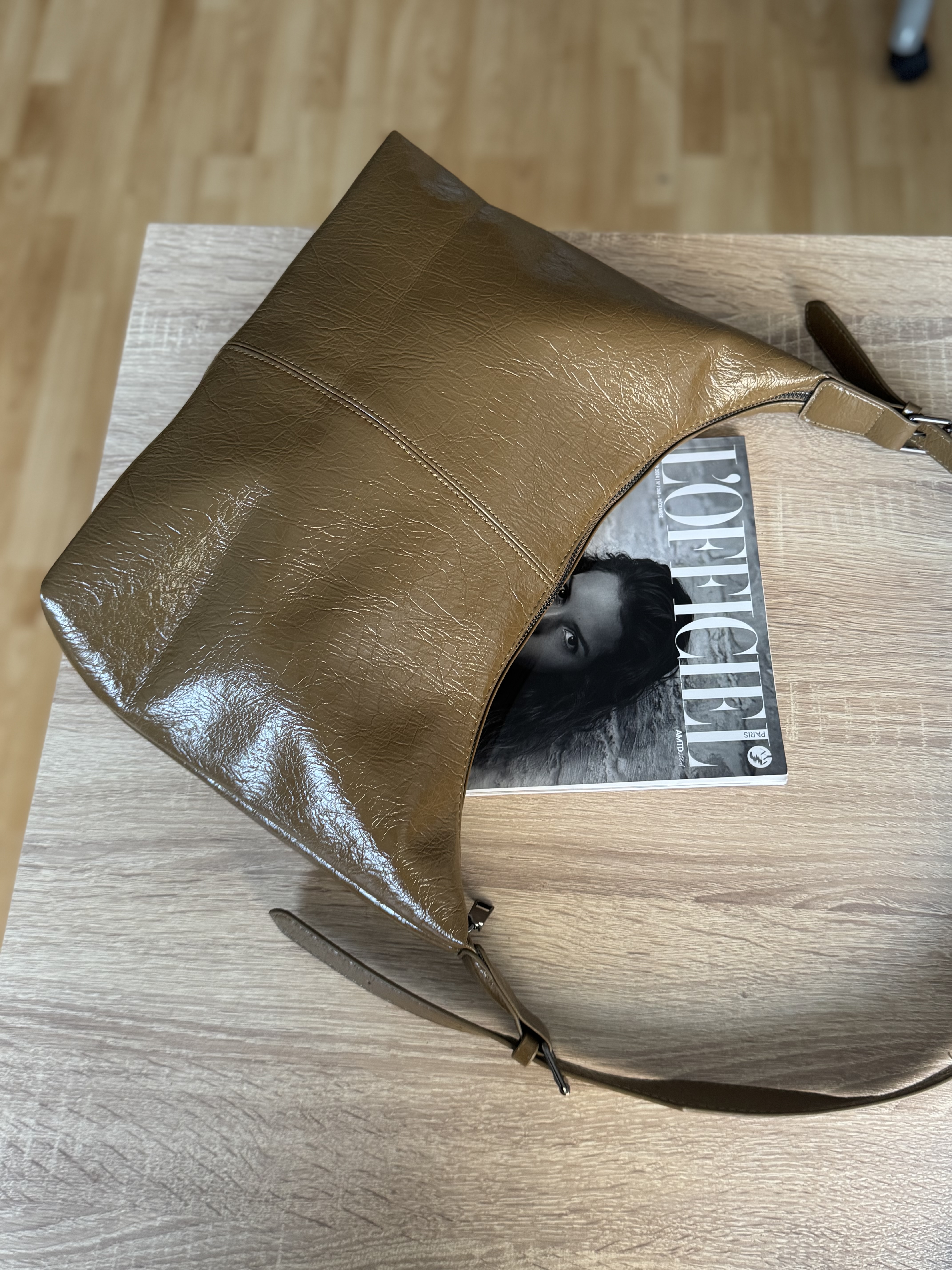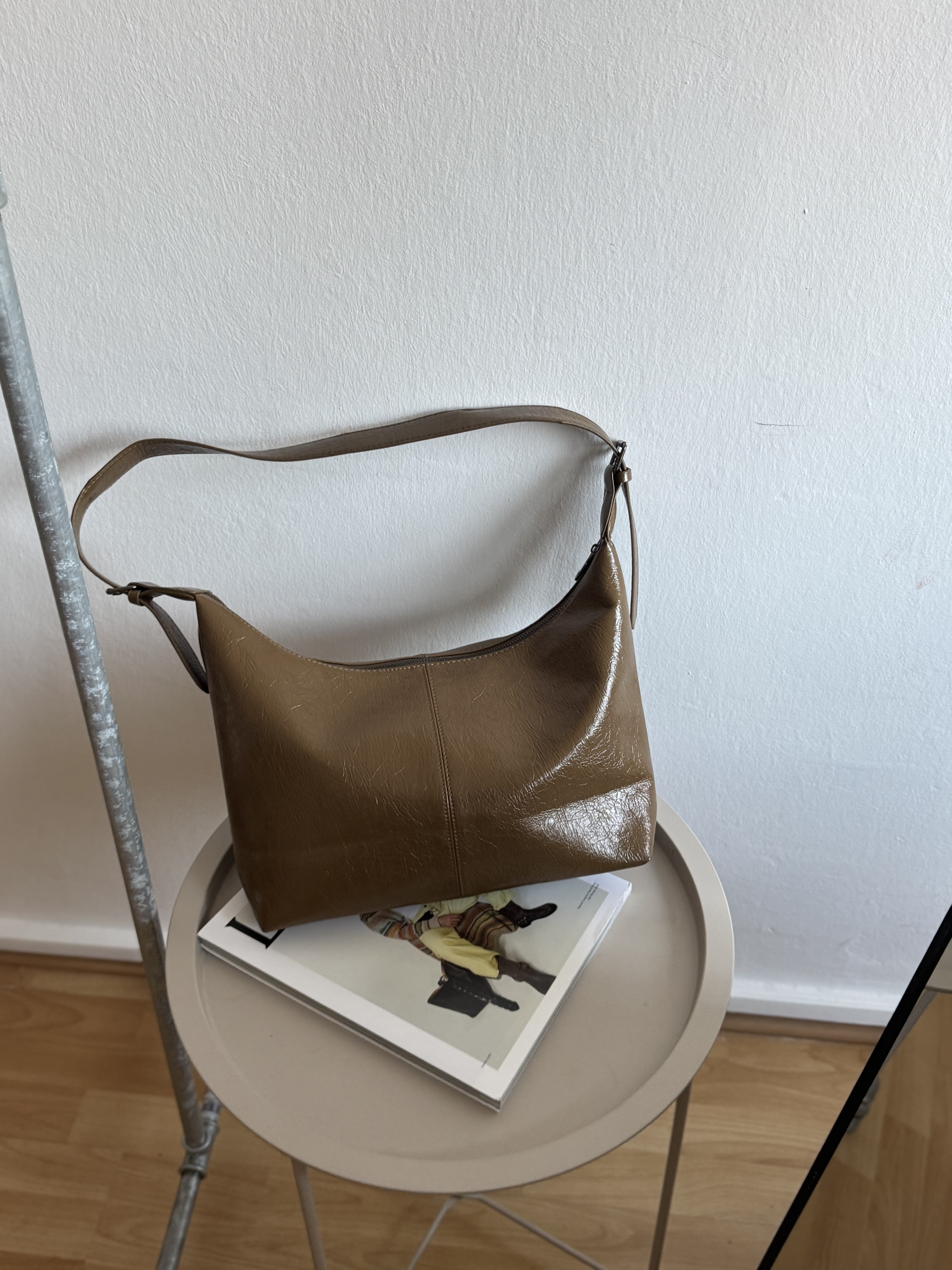 Silk casual shoulder bag in olive brown