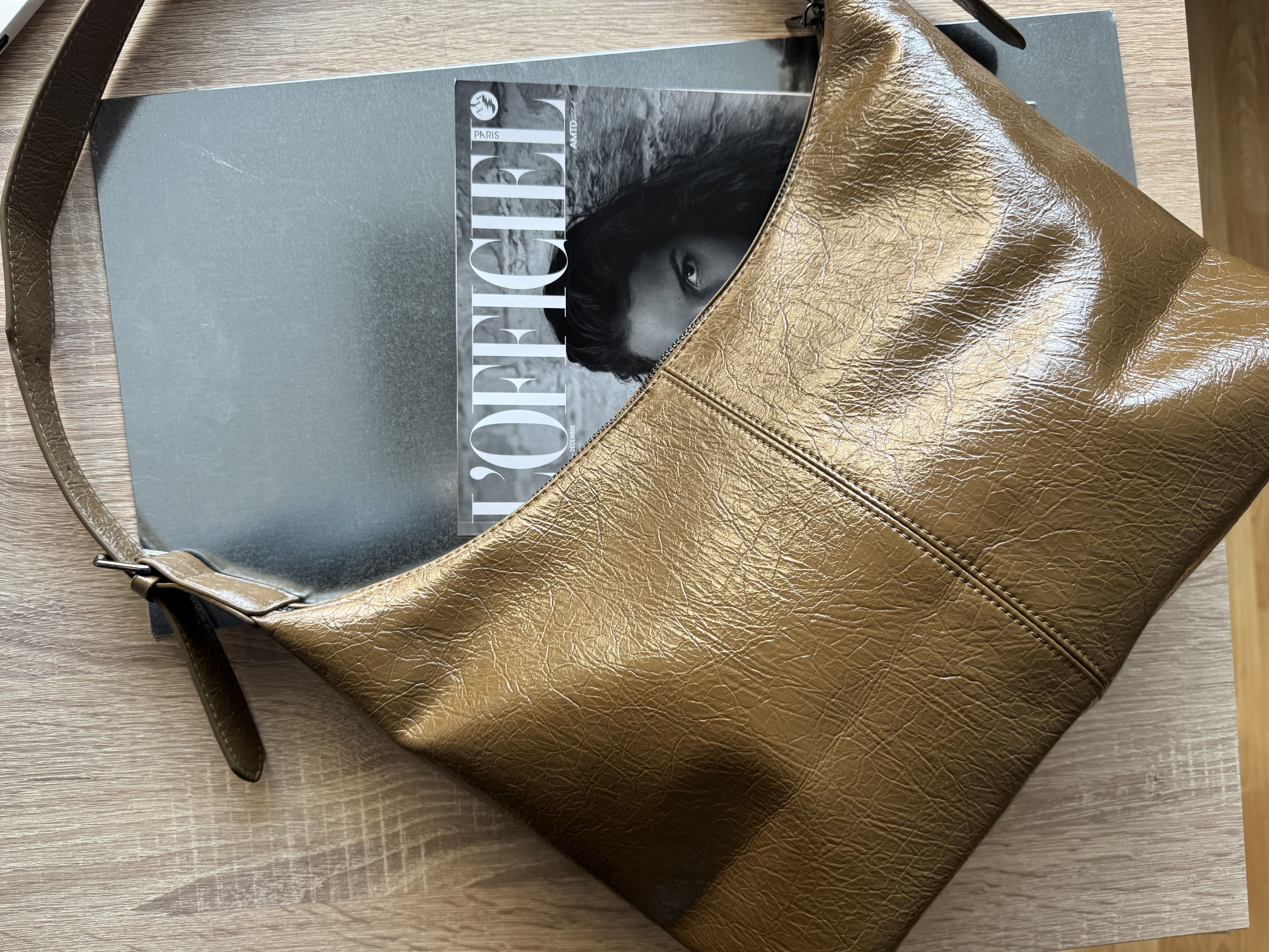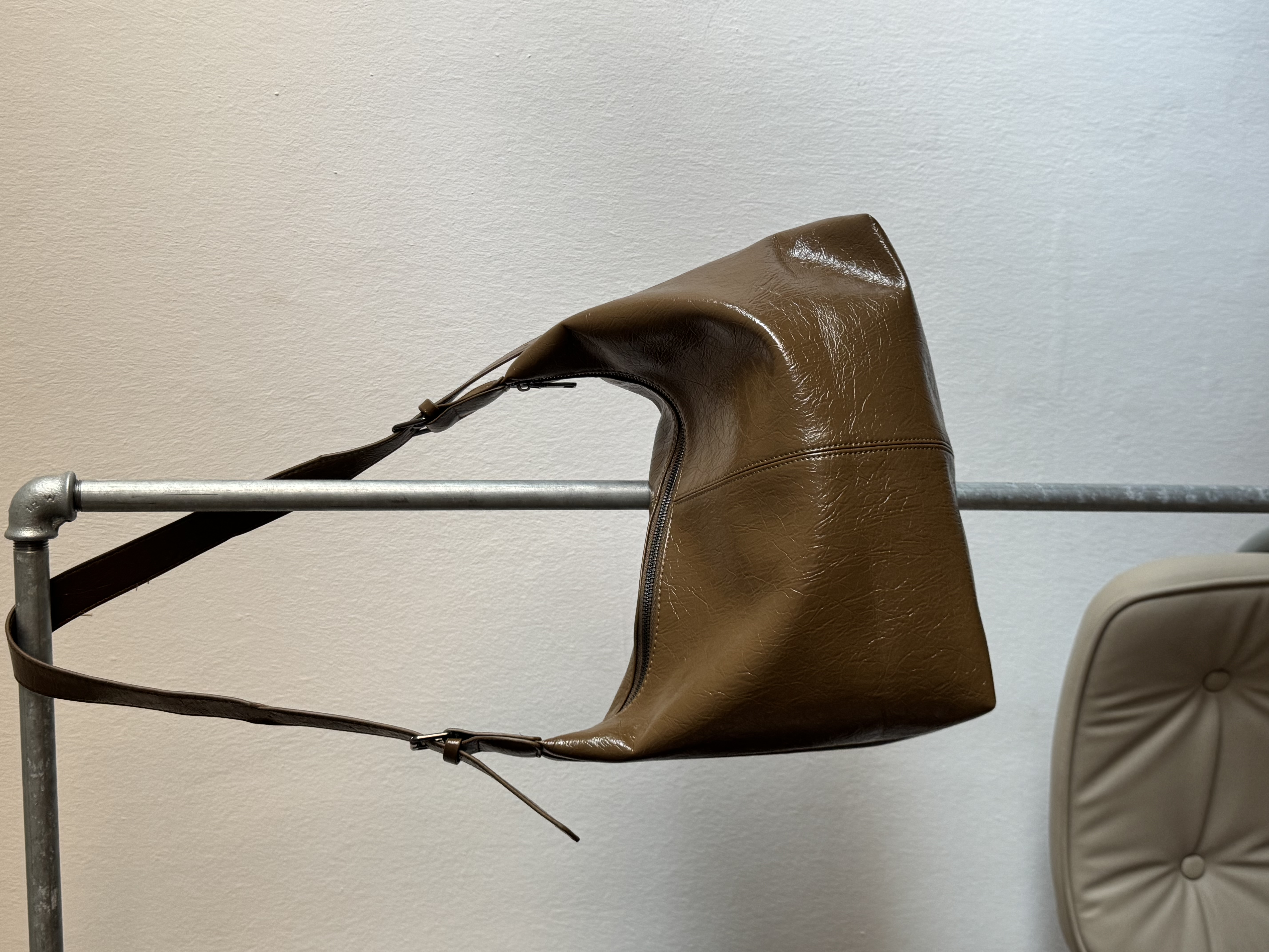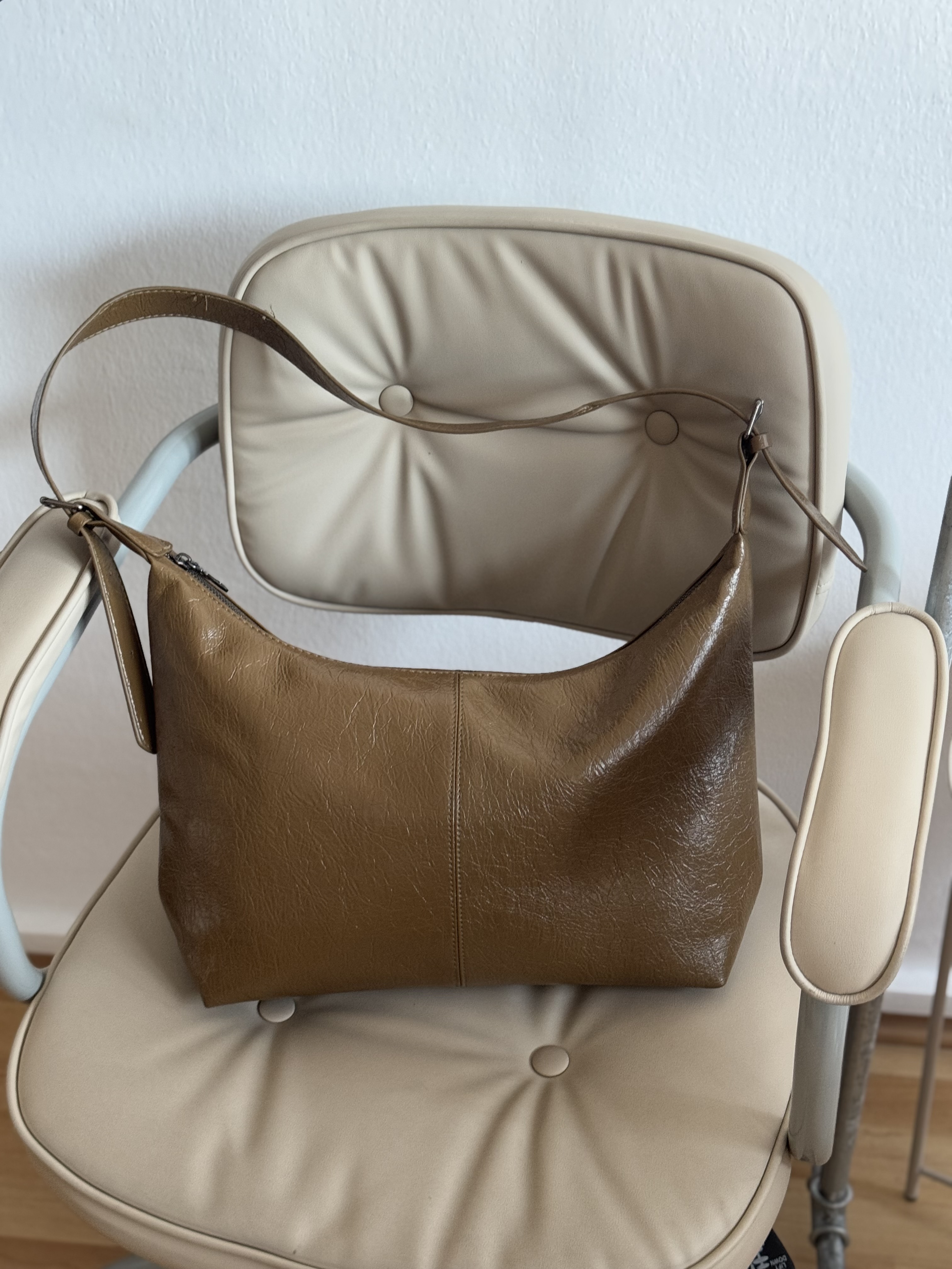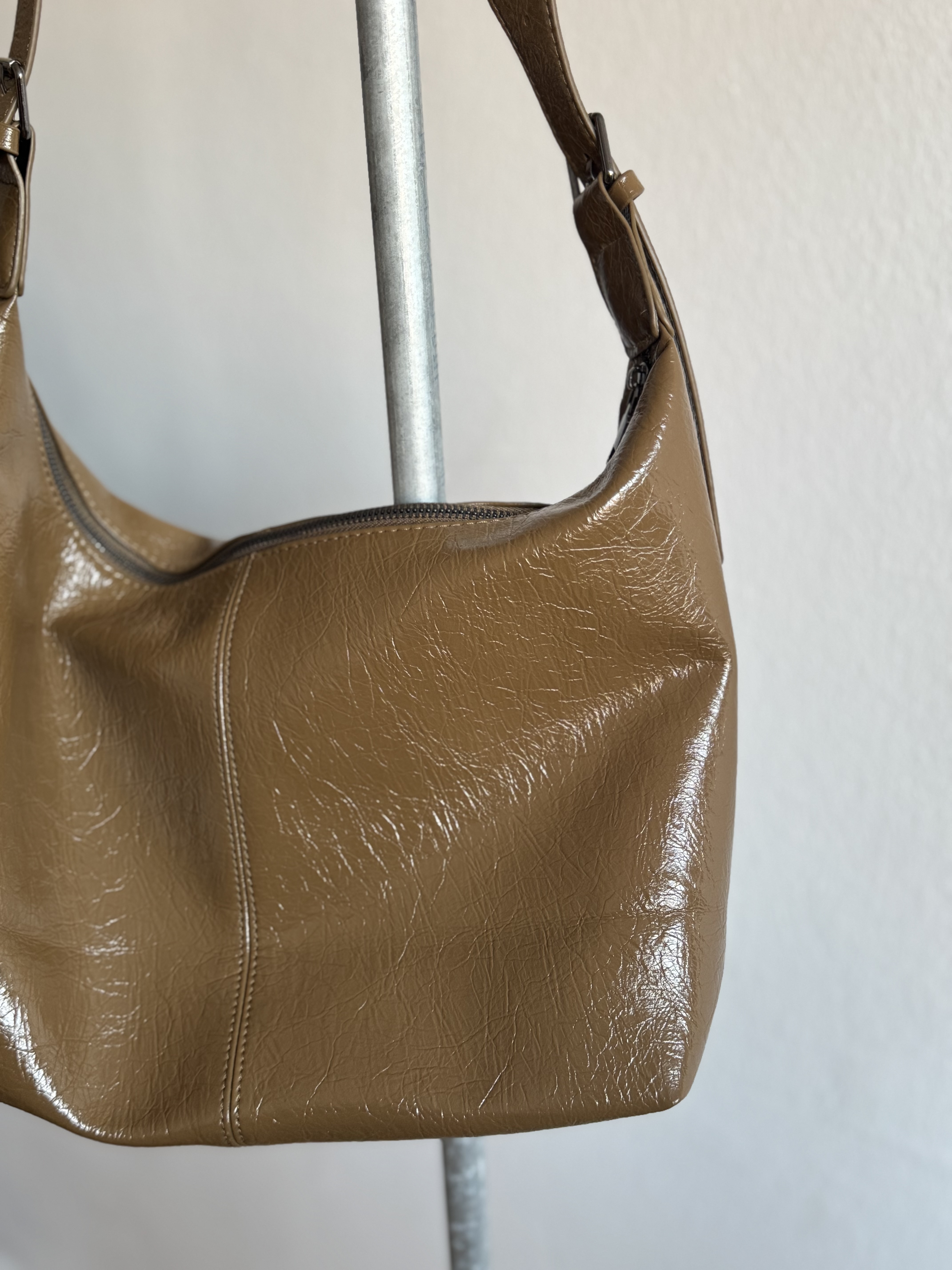 Silk casual shoulder bag in olive brown