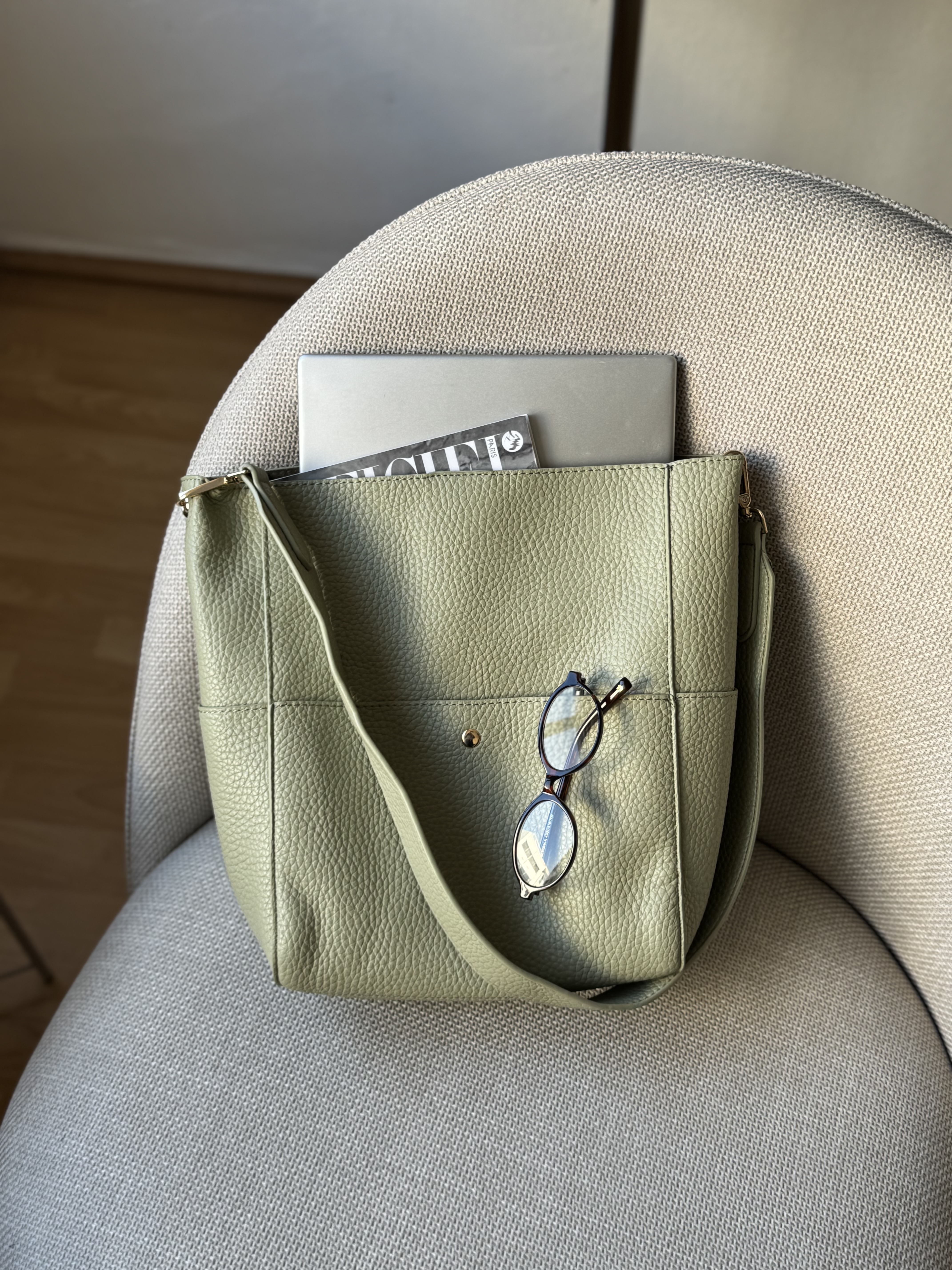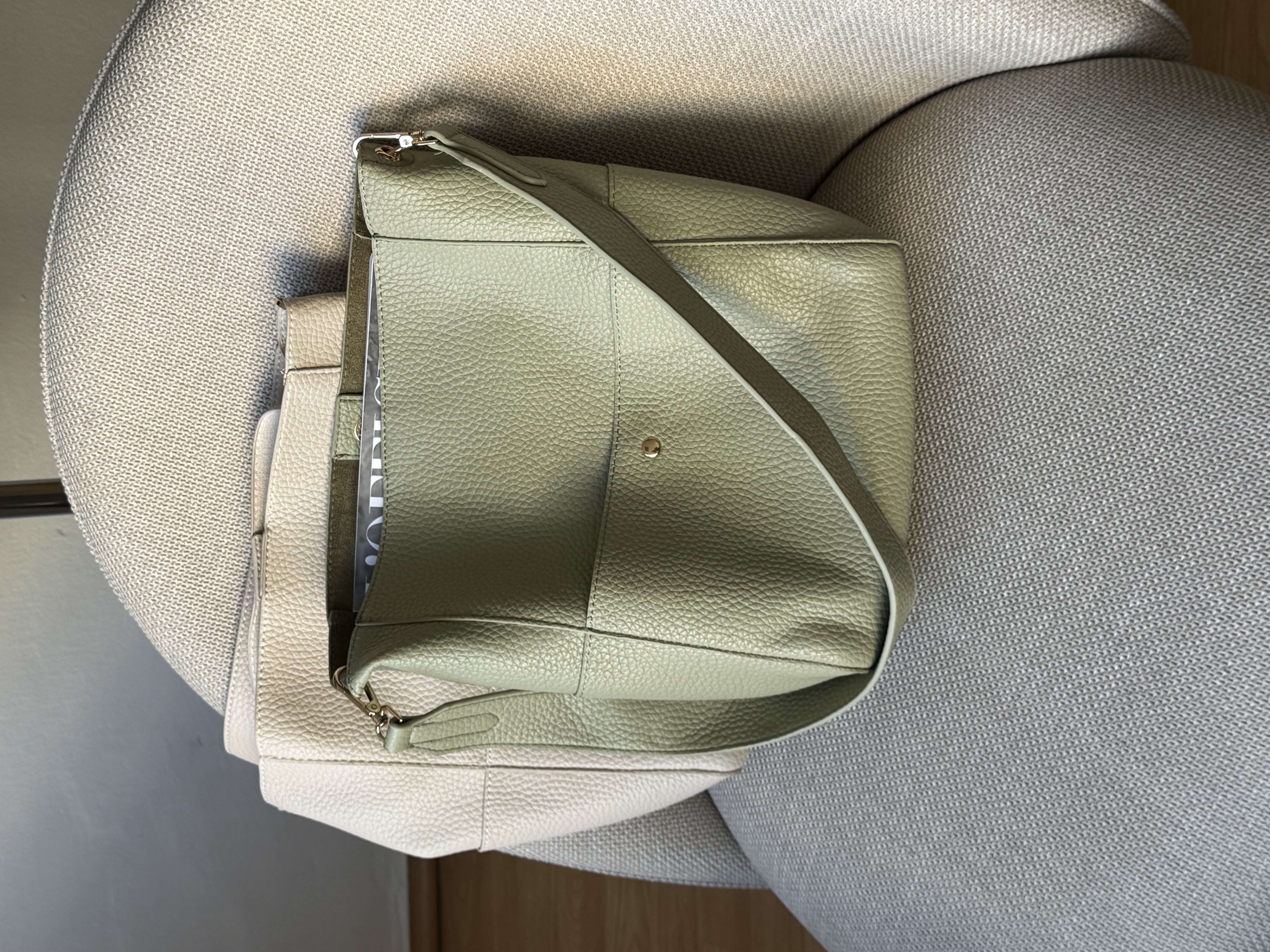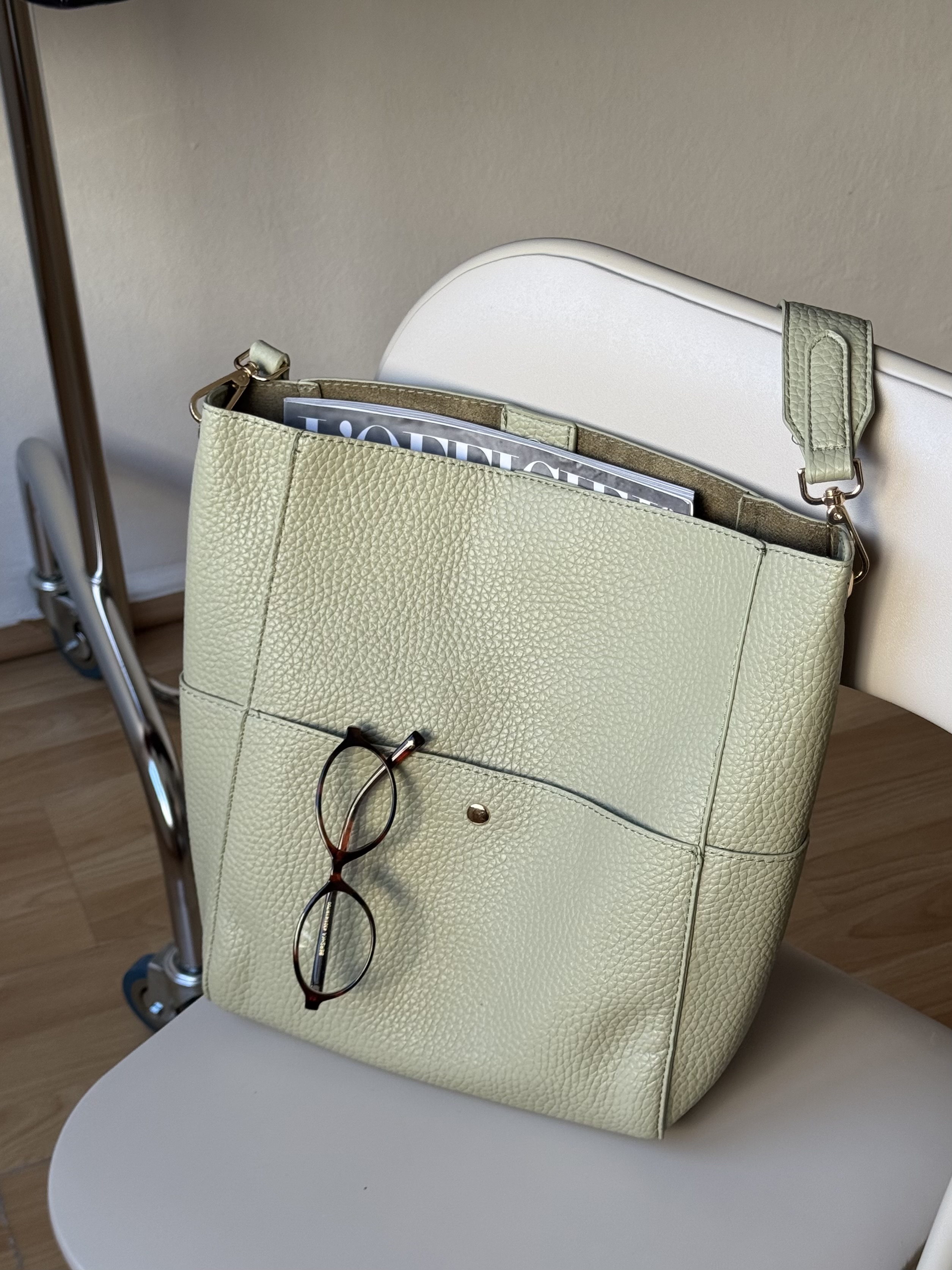 Everyday shoulder bag with pockets in pistachio