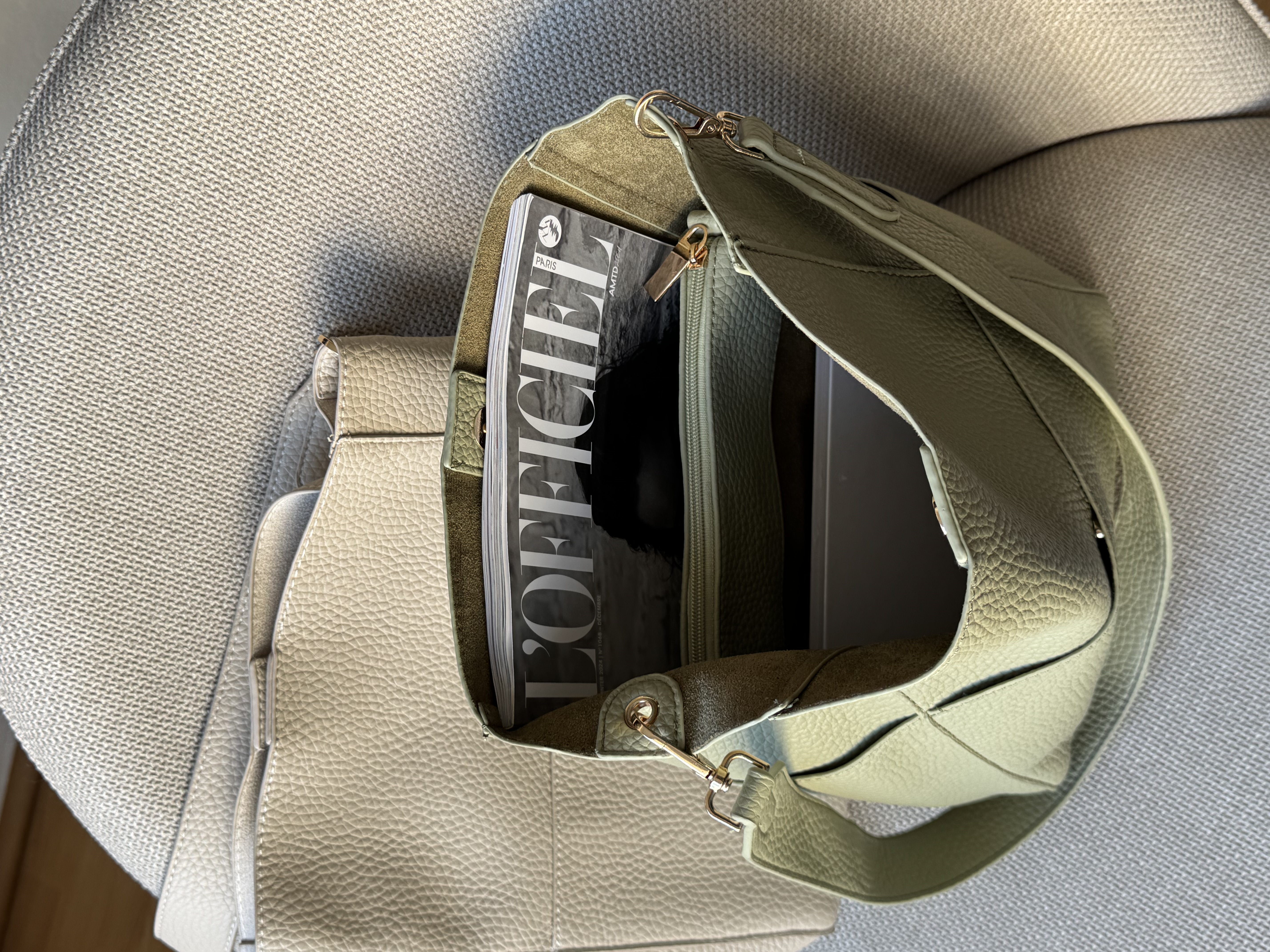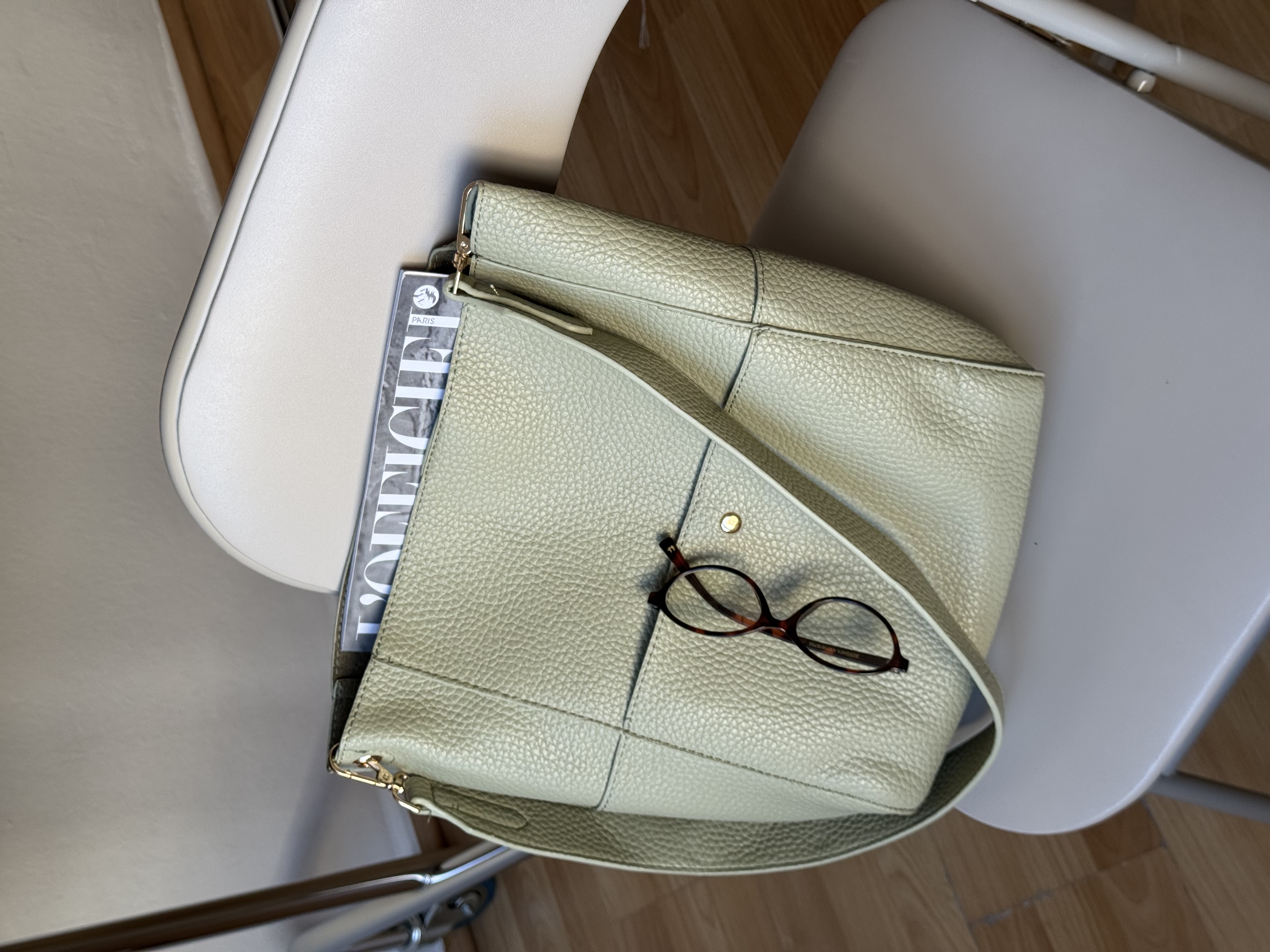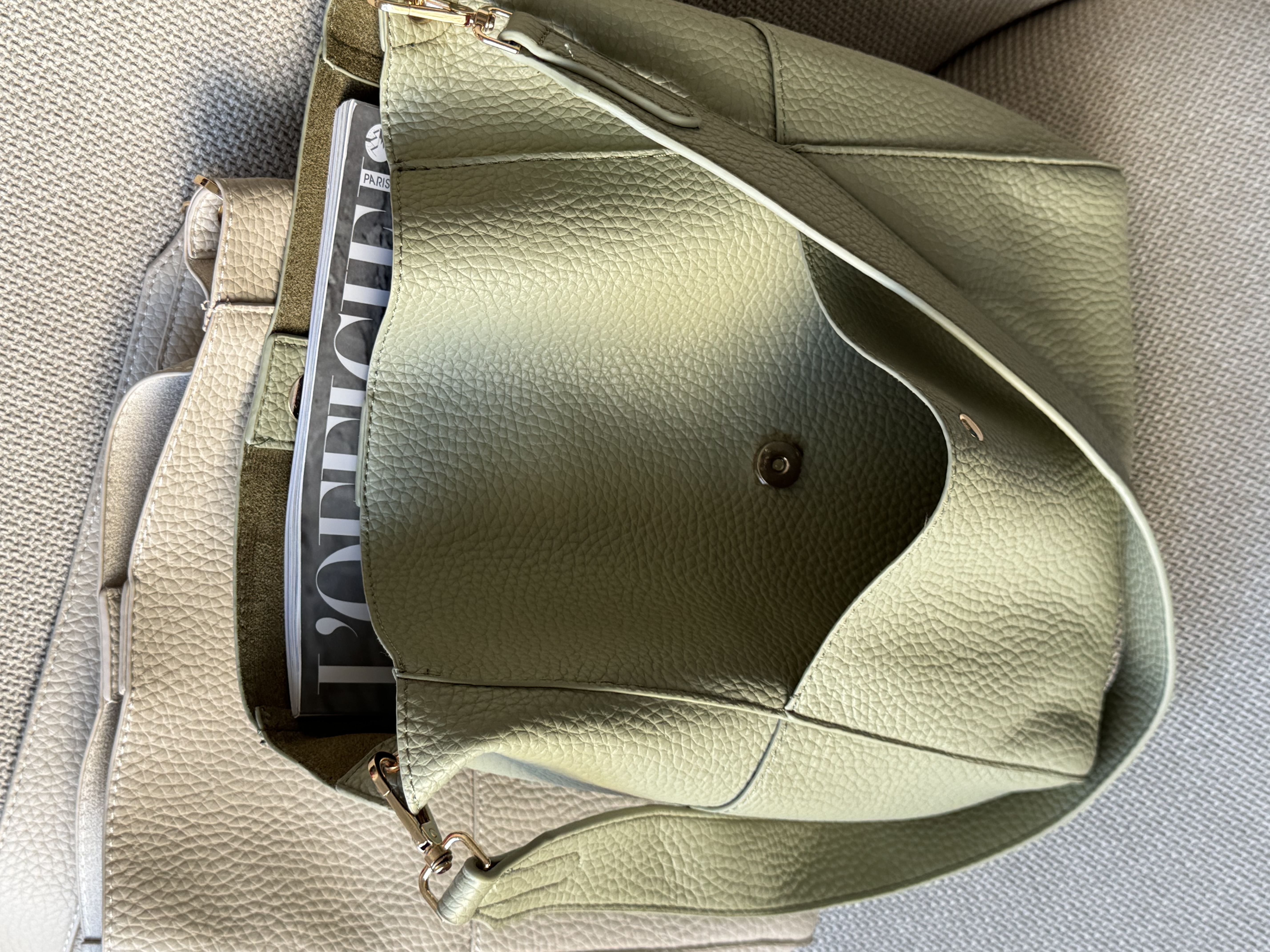 Everyday shoulder bag with pockets in pistachio