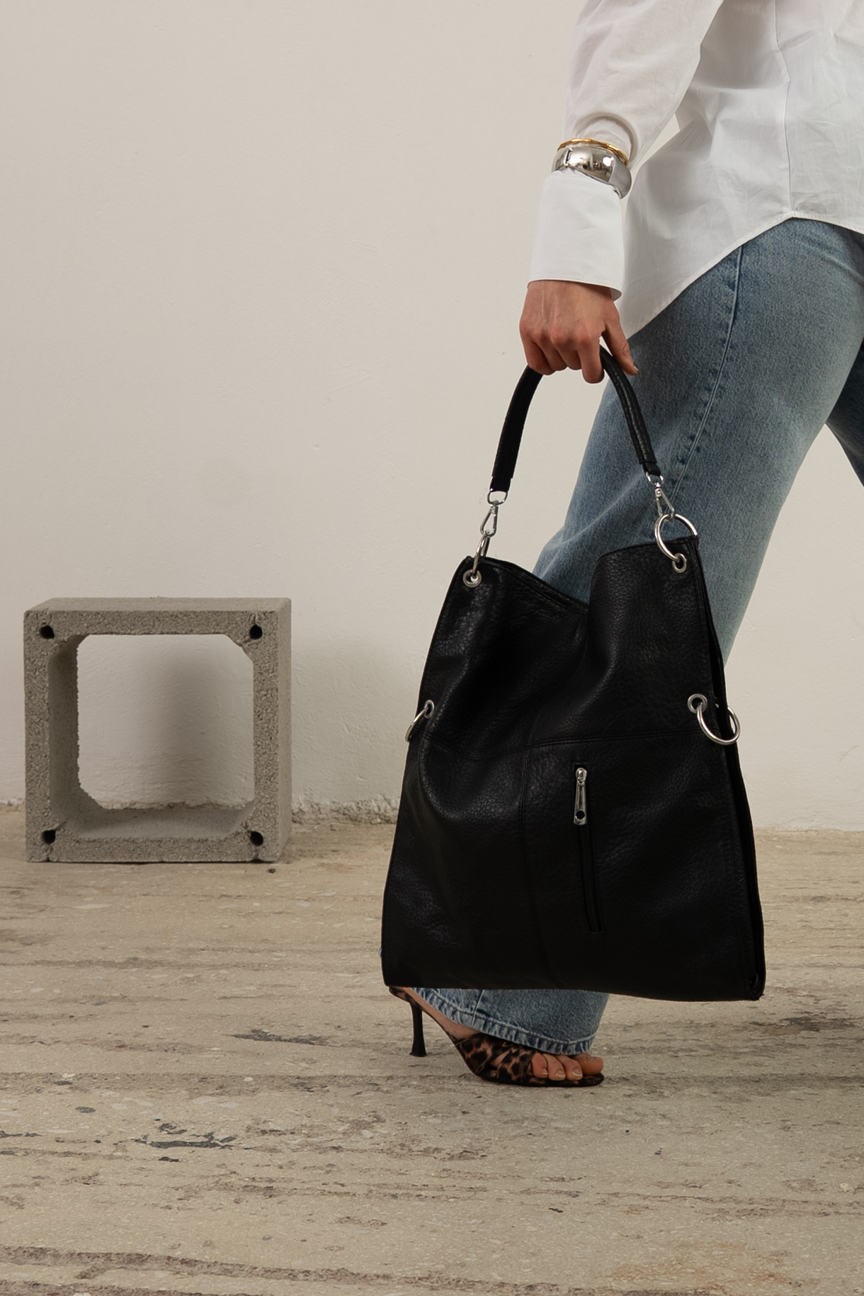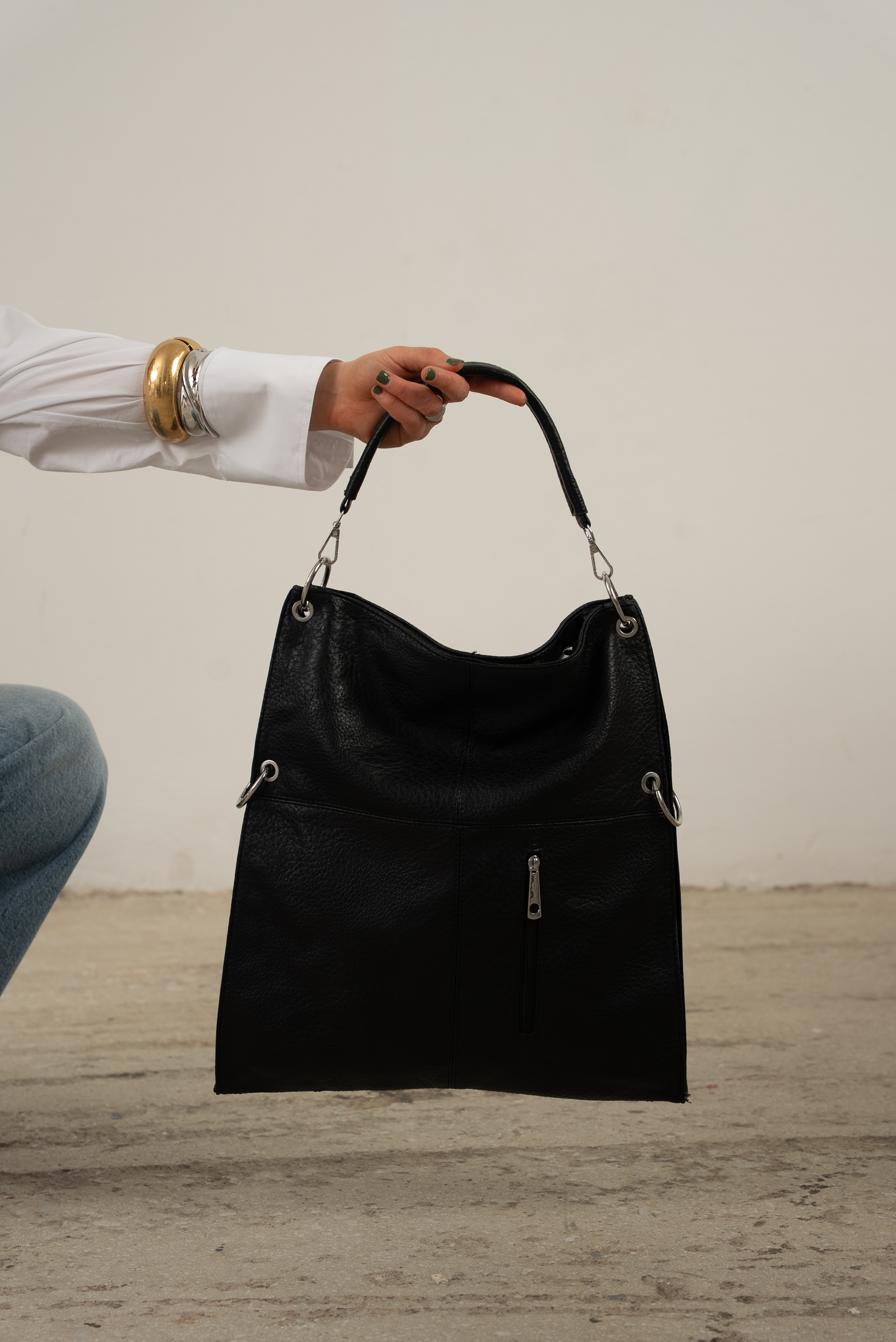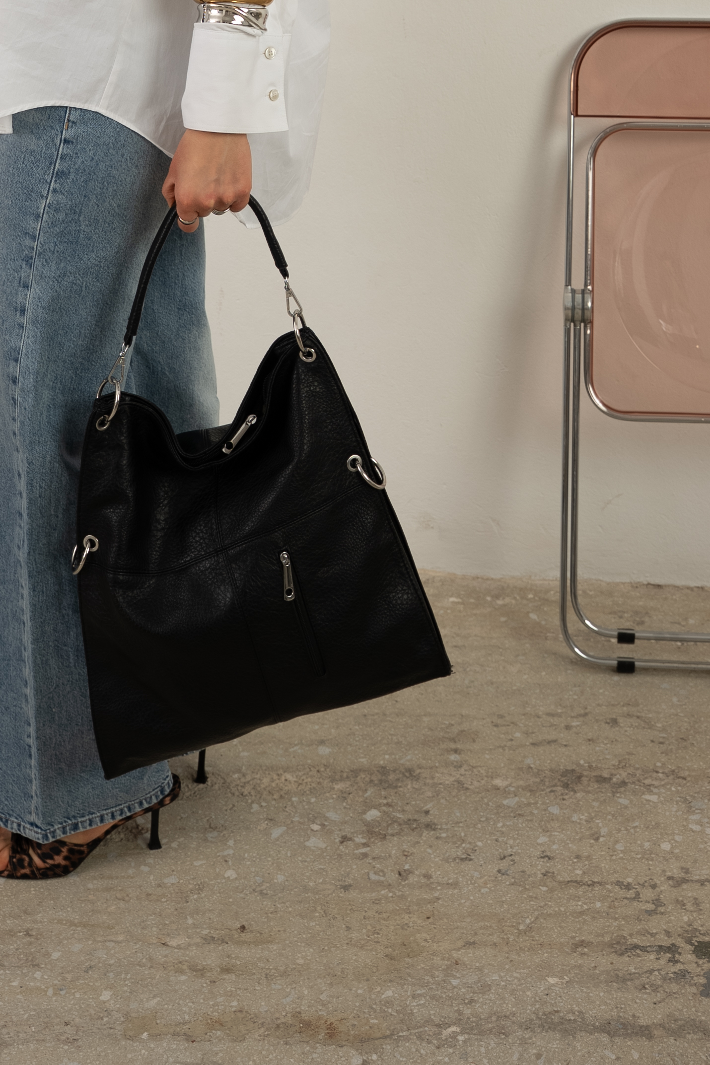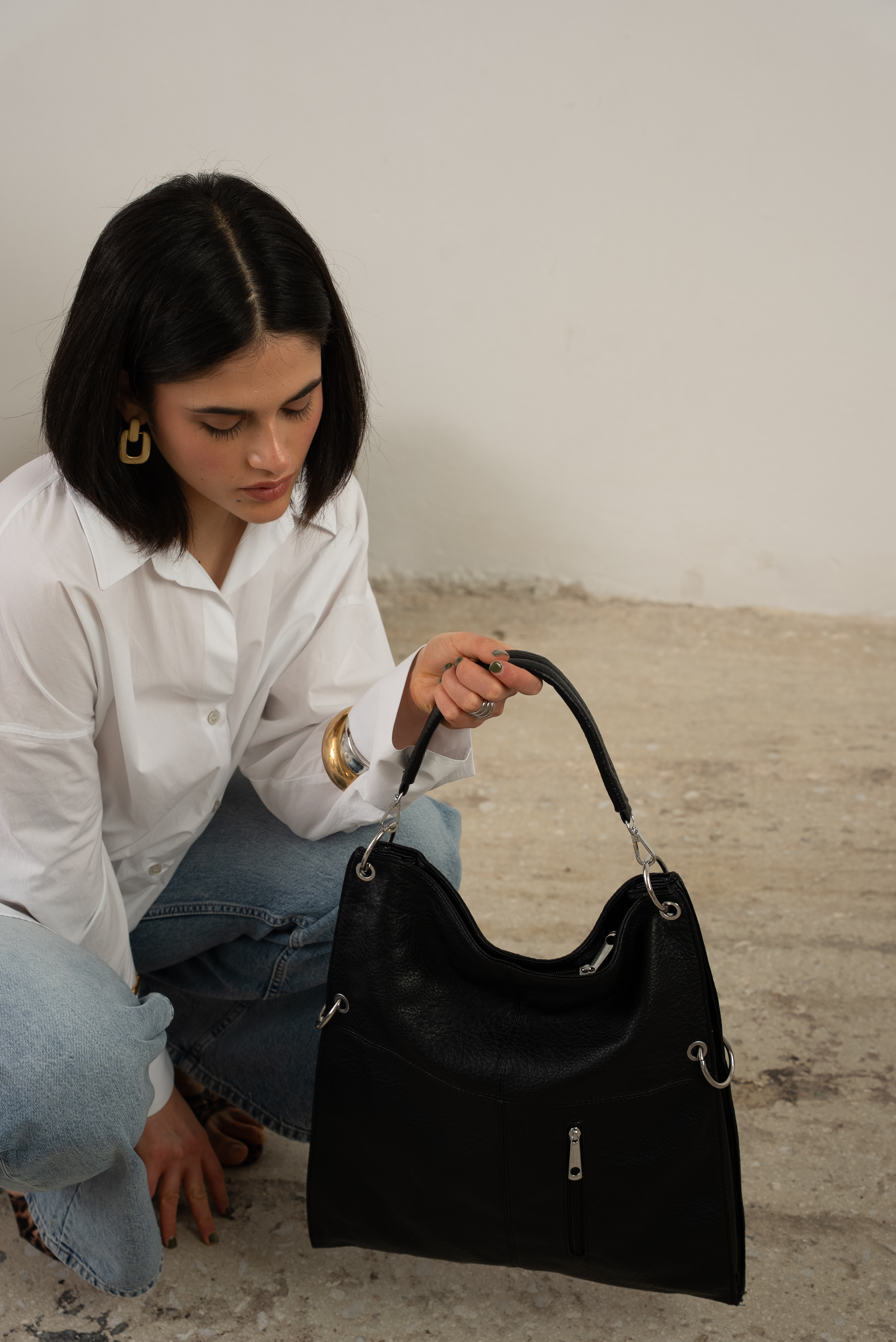 Bold shoulder bag with hoops