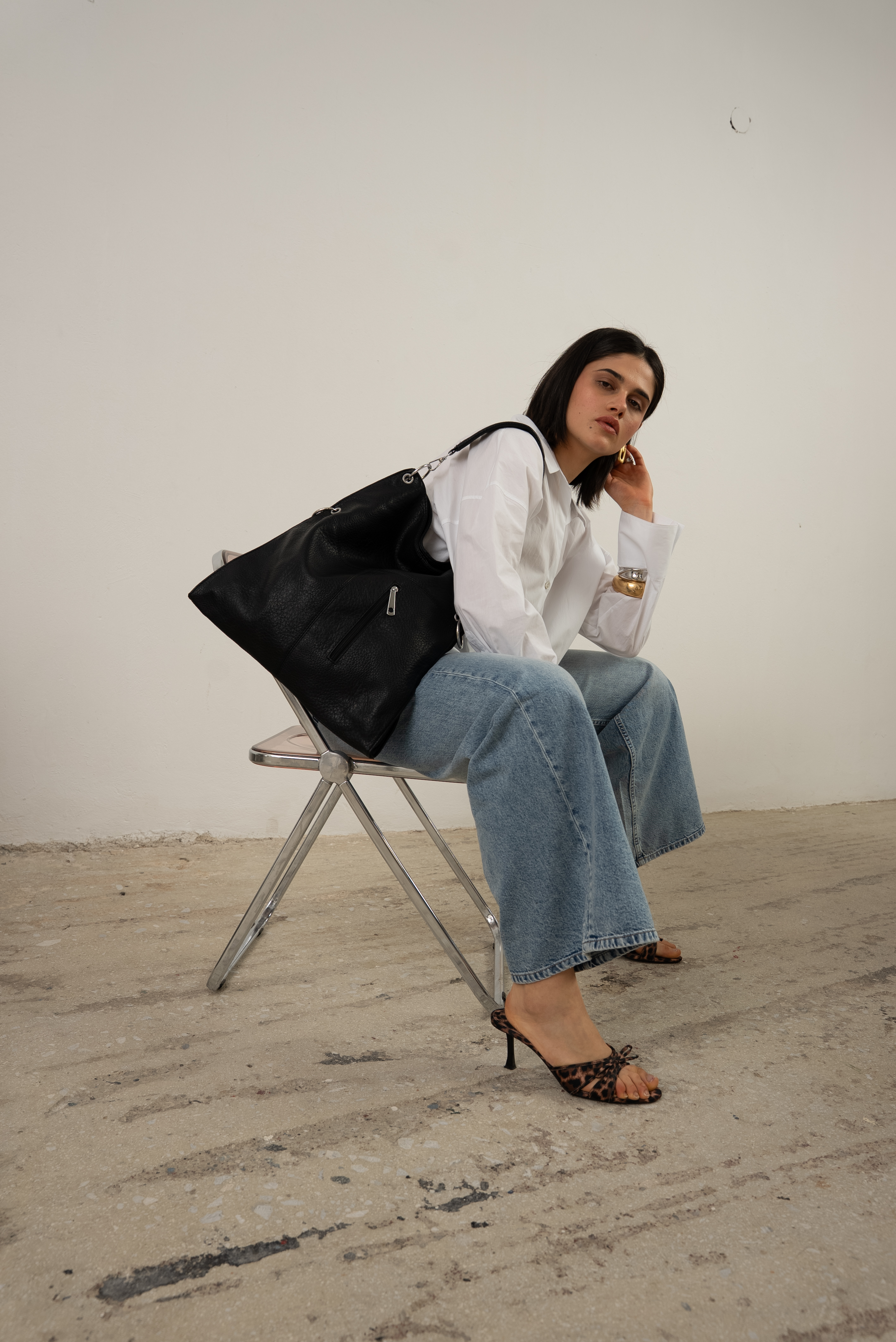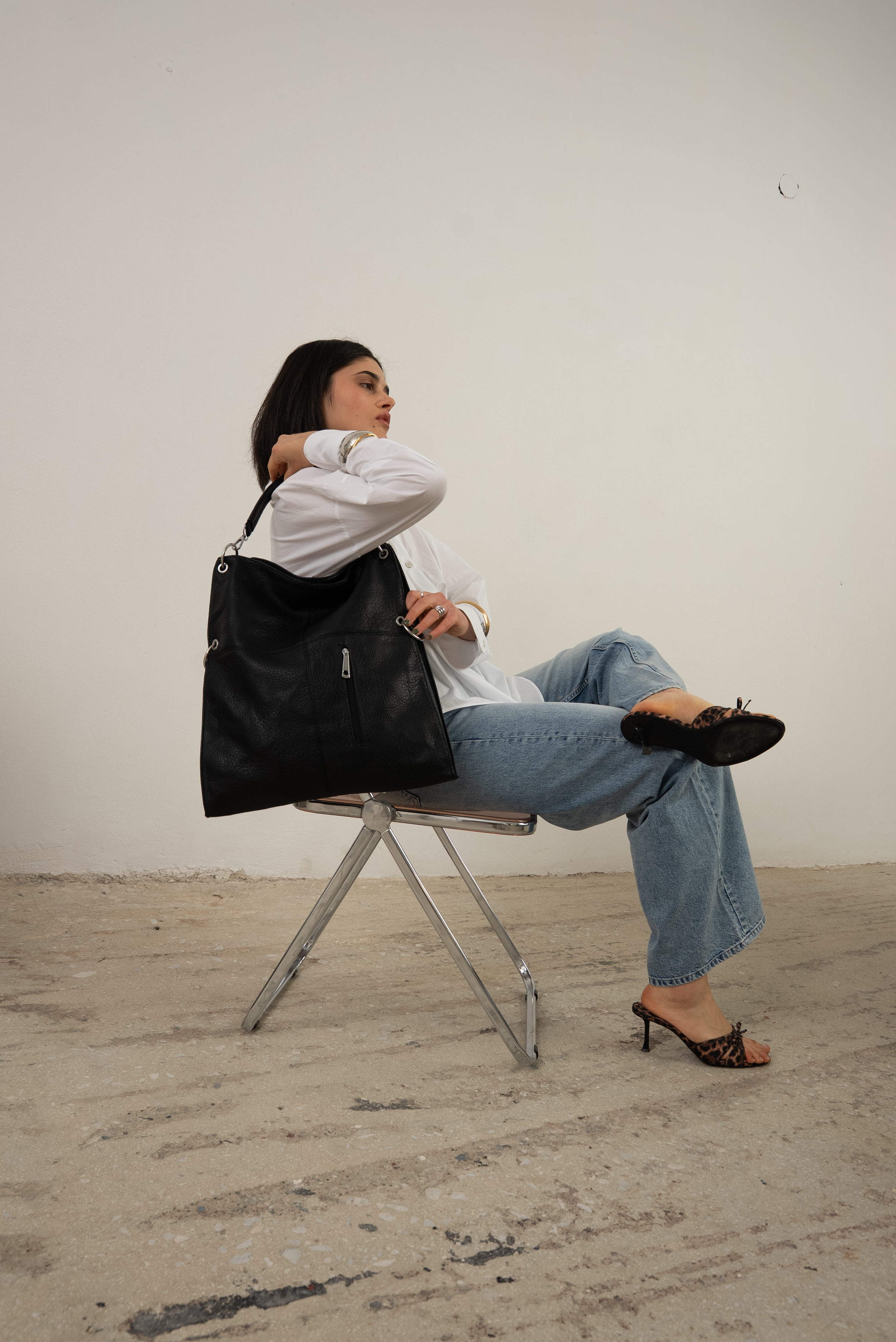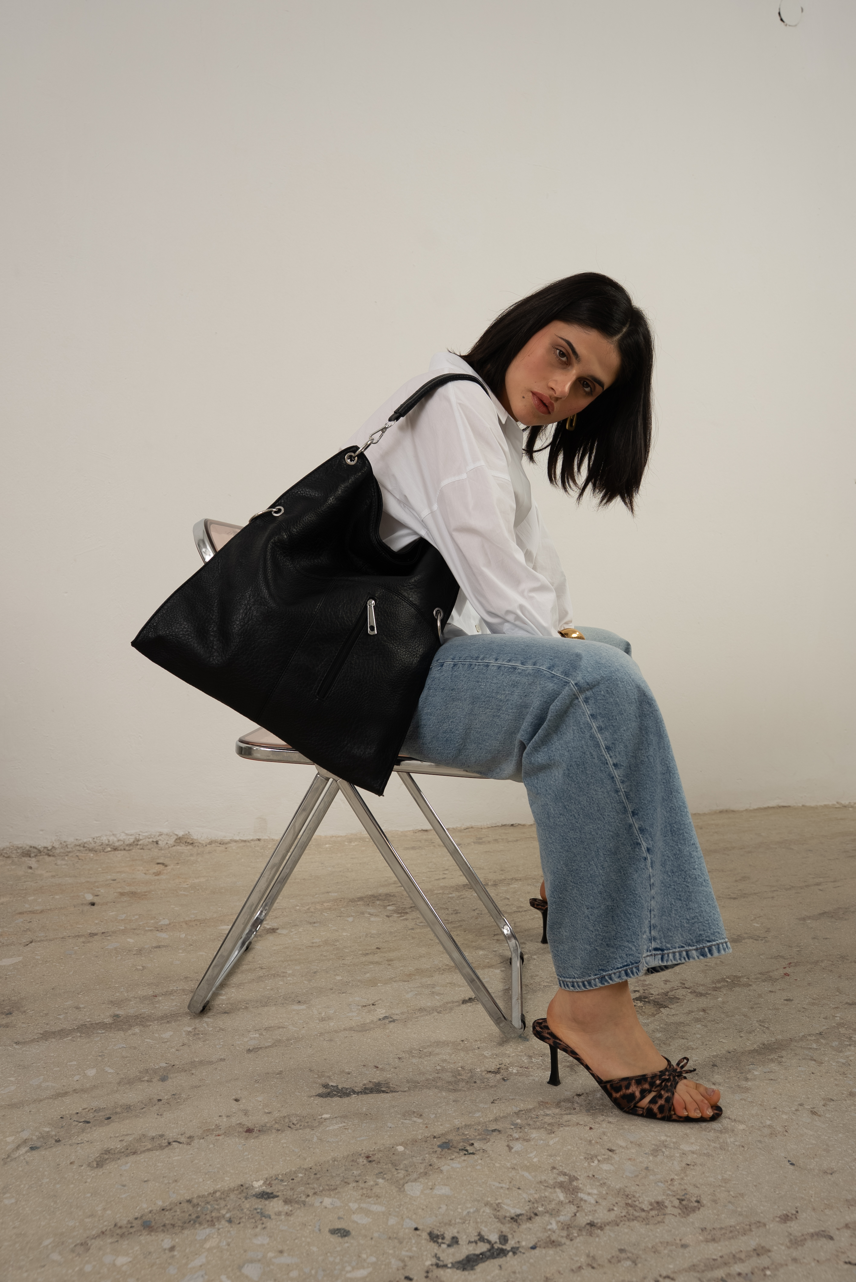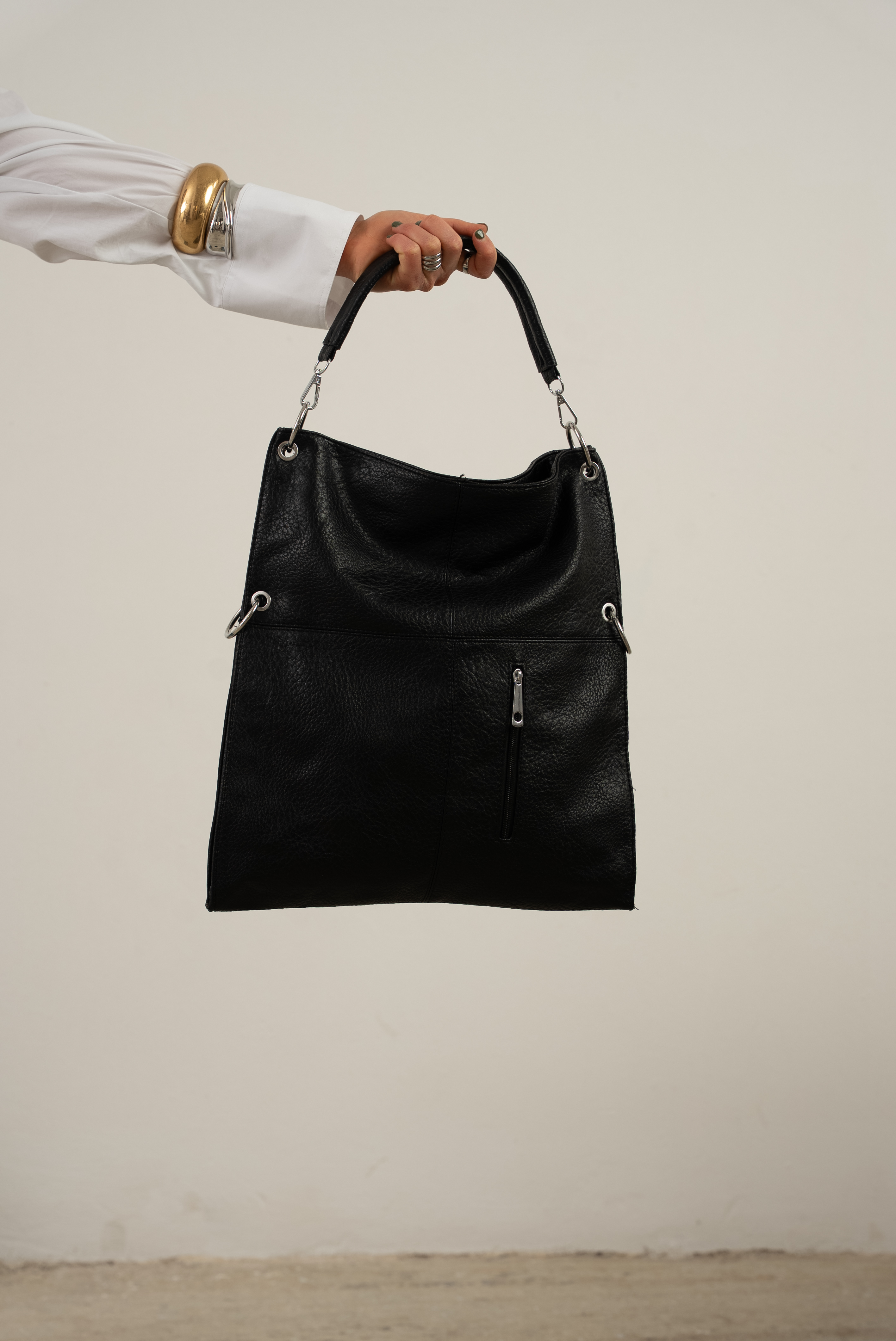 Bold shoulder bag with hoops