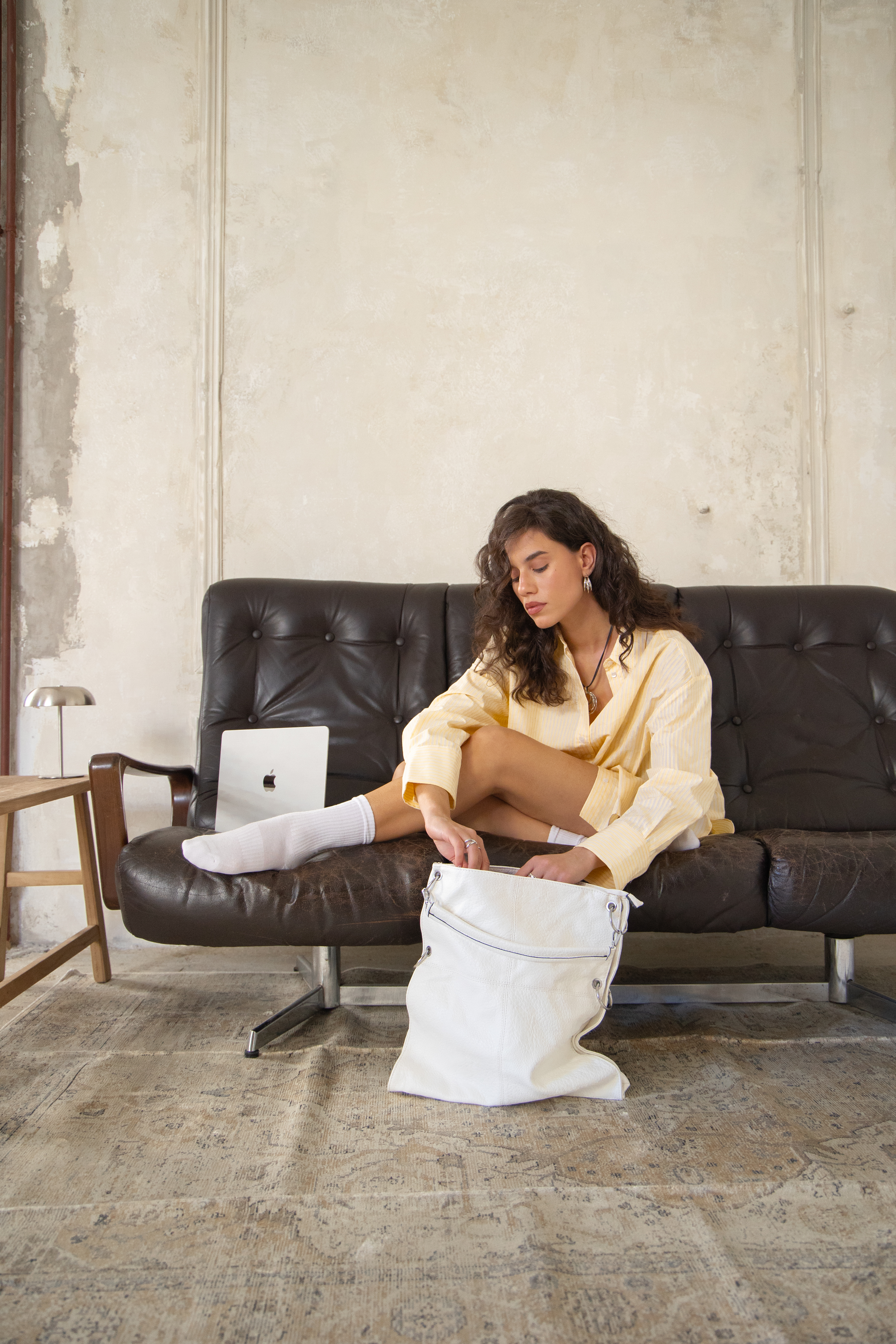 Bold shoulder bag with hoops in white