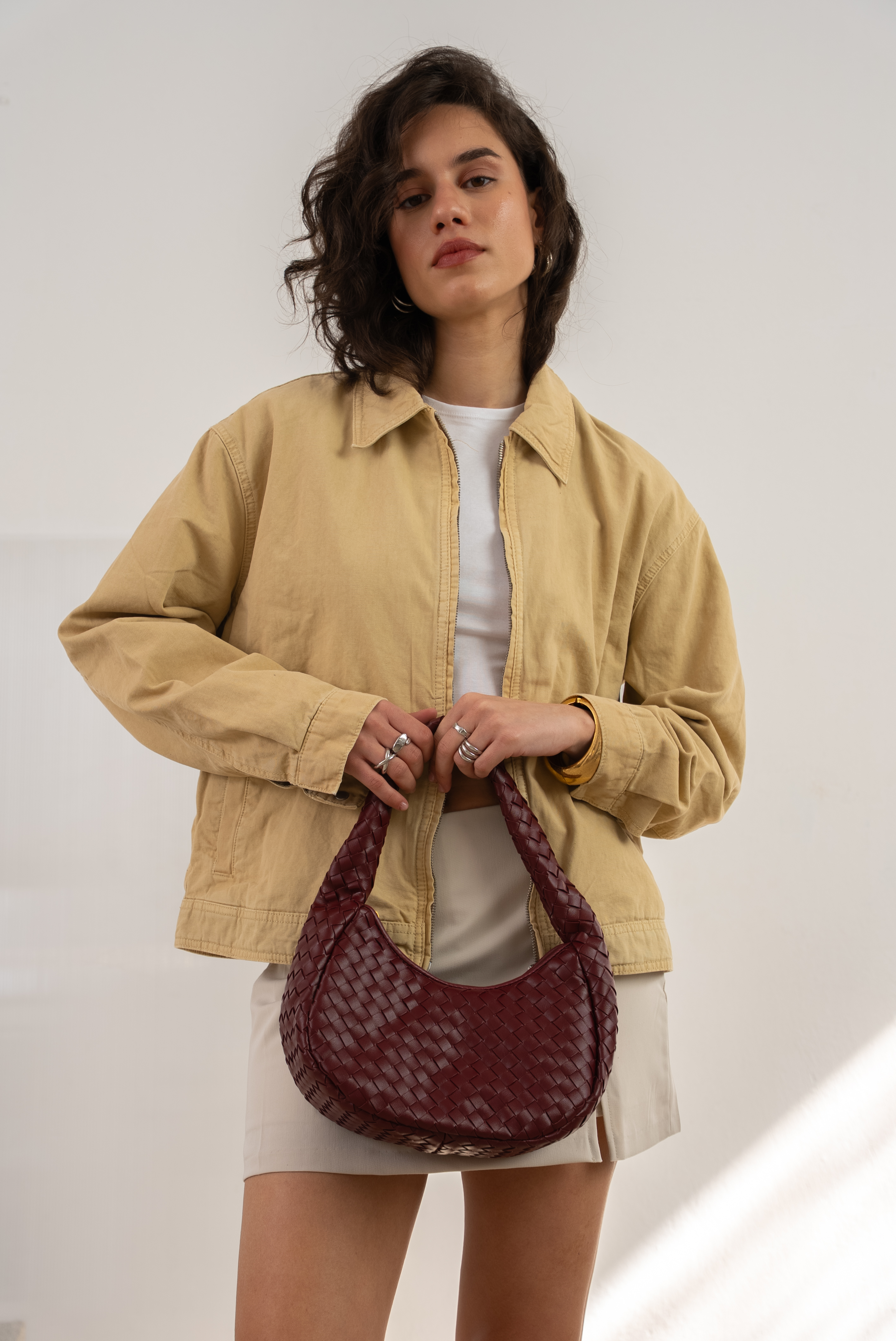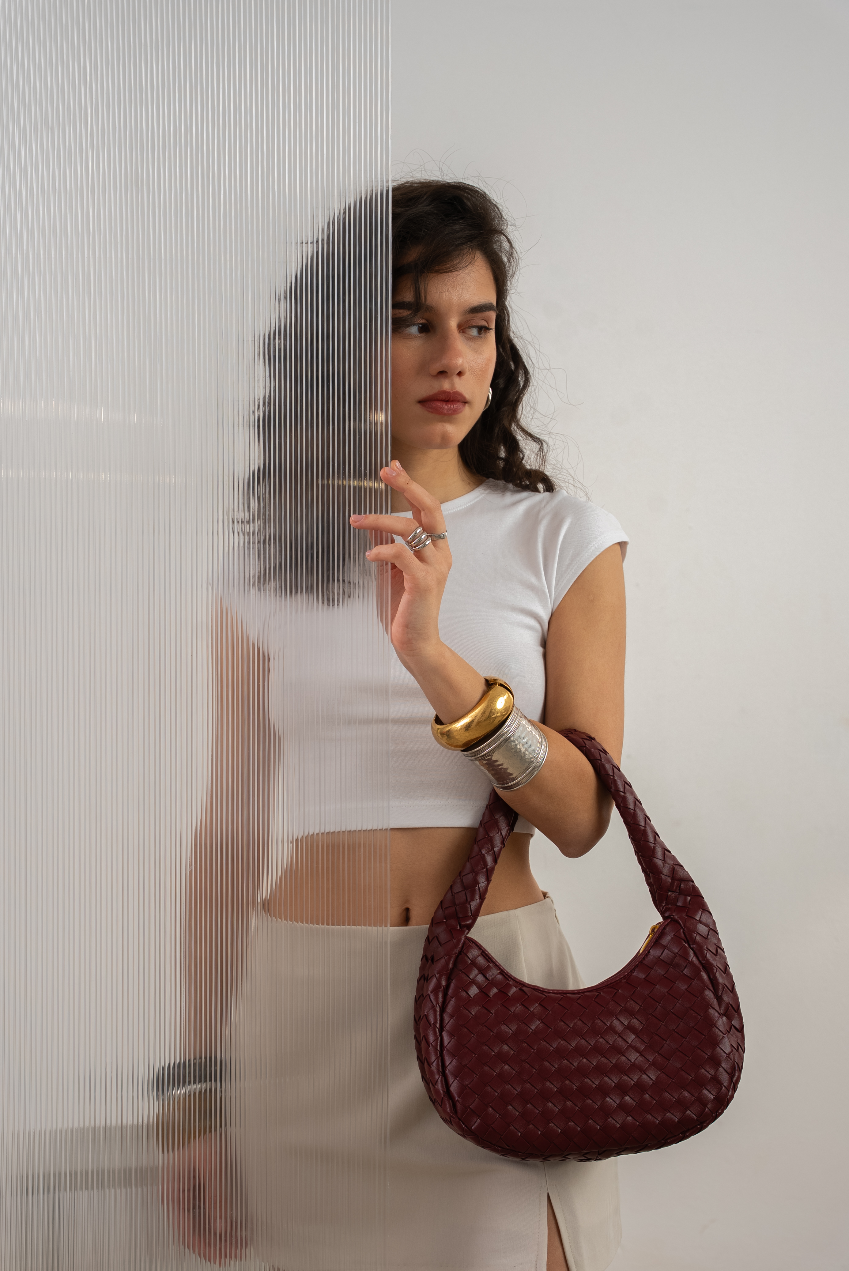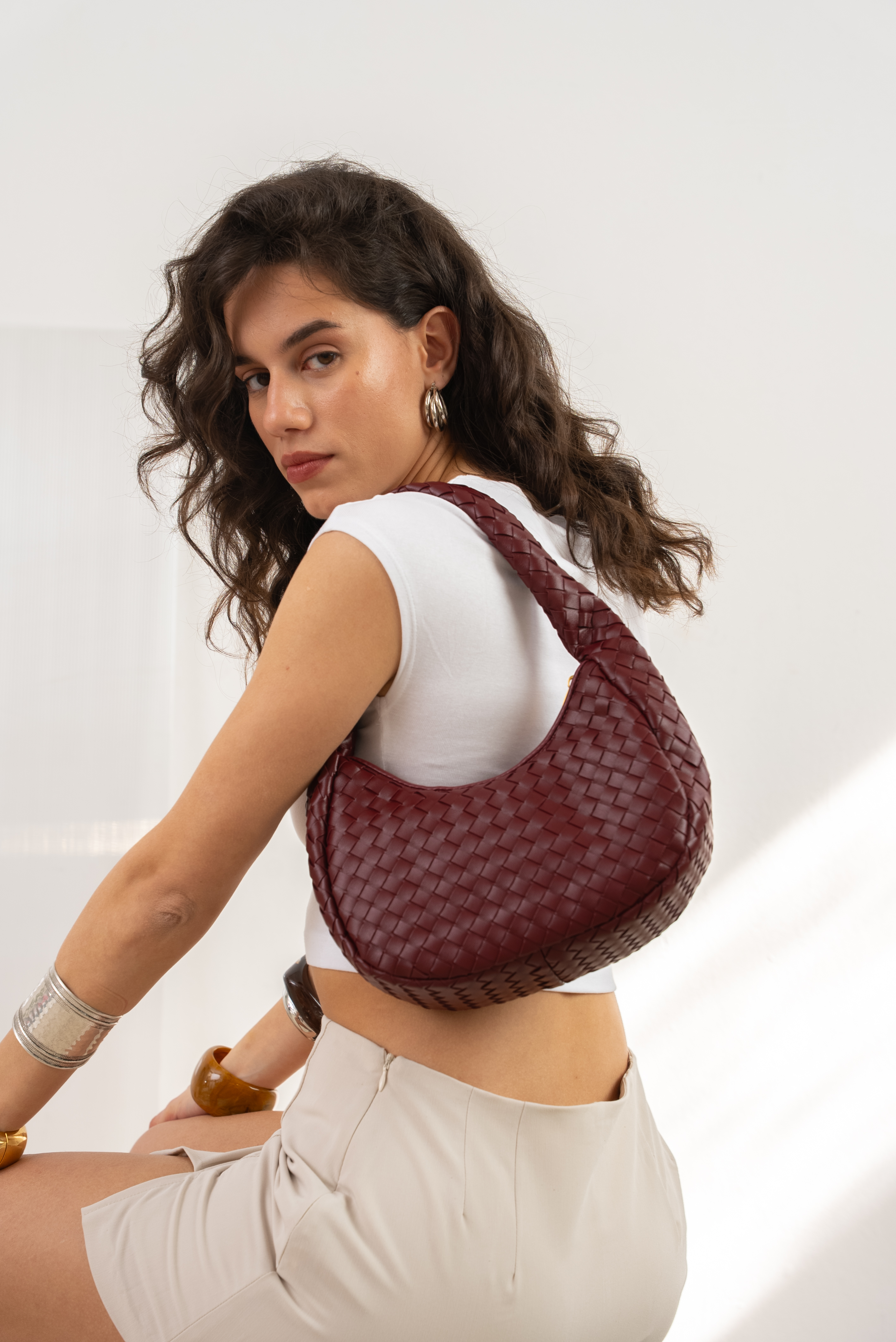 Vegan shoulder bag in wine red