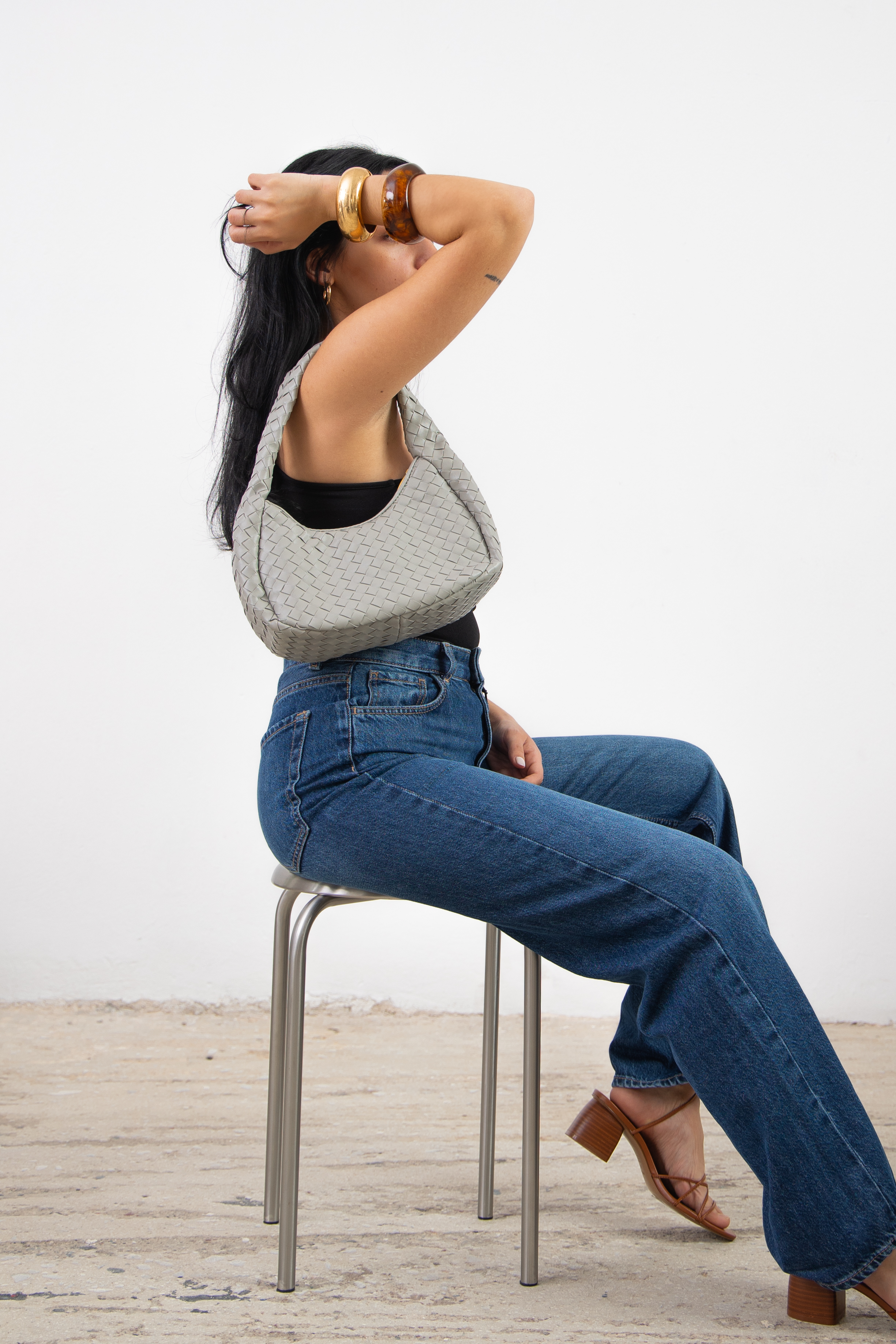 Vegan shoulder bag in iced grey