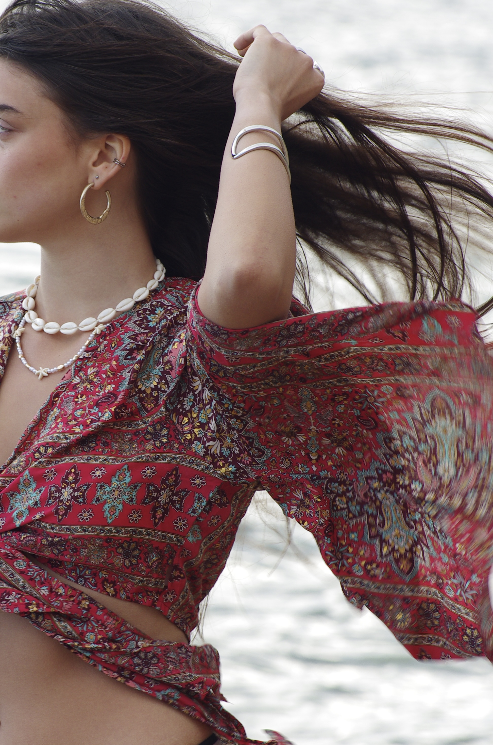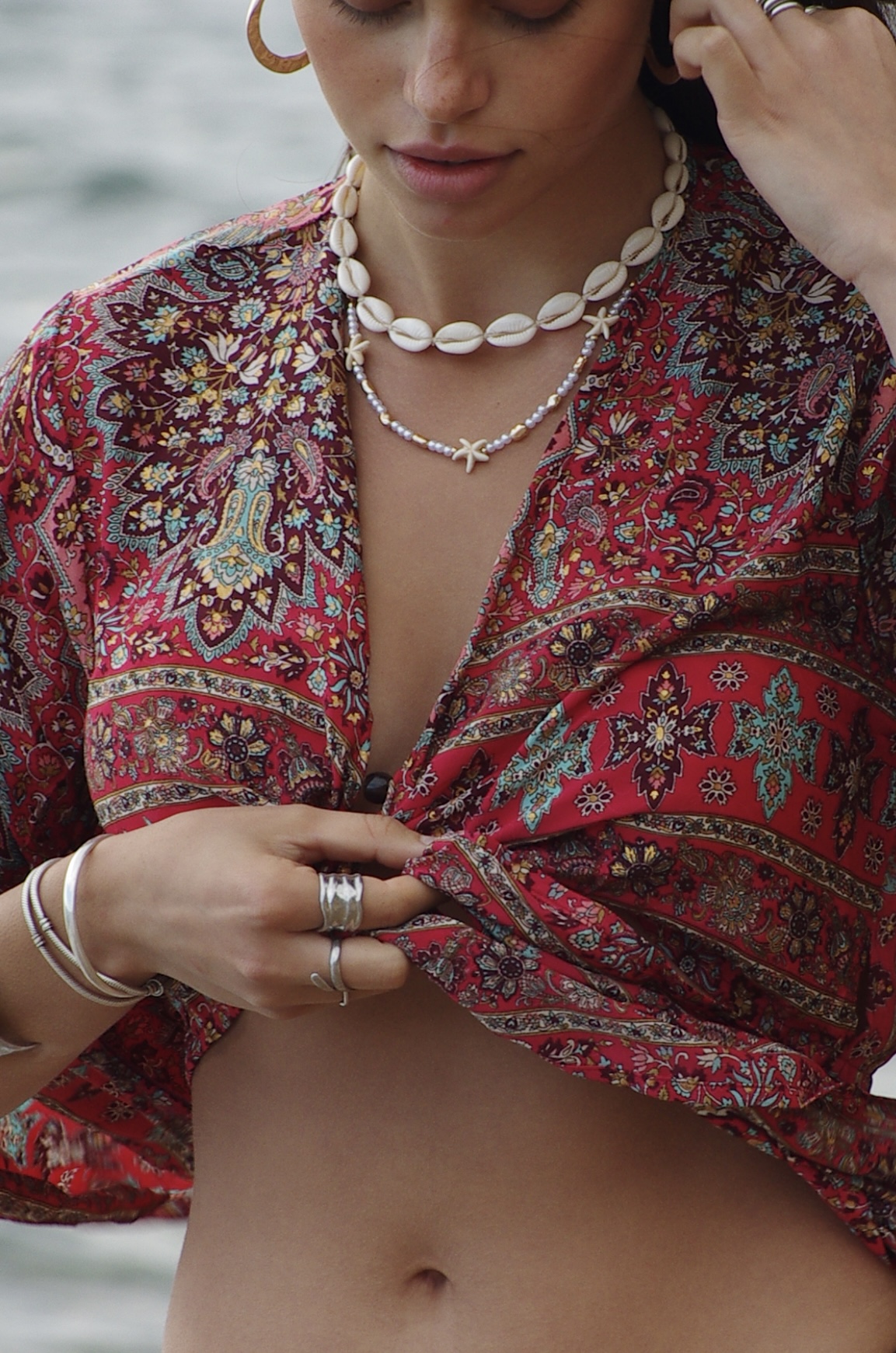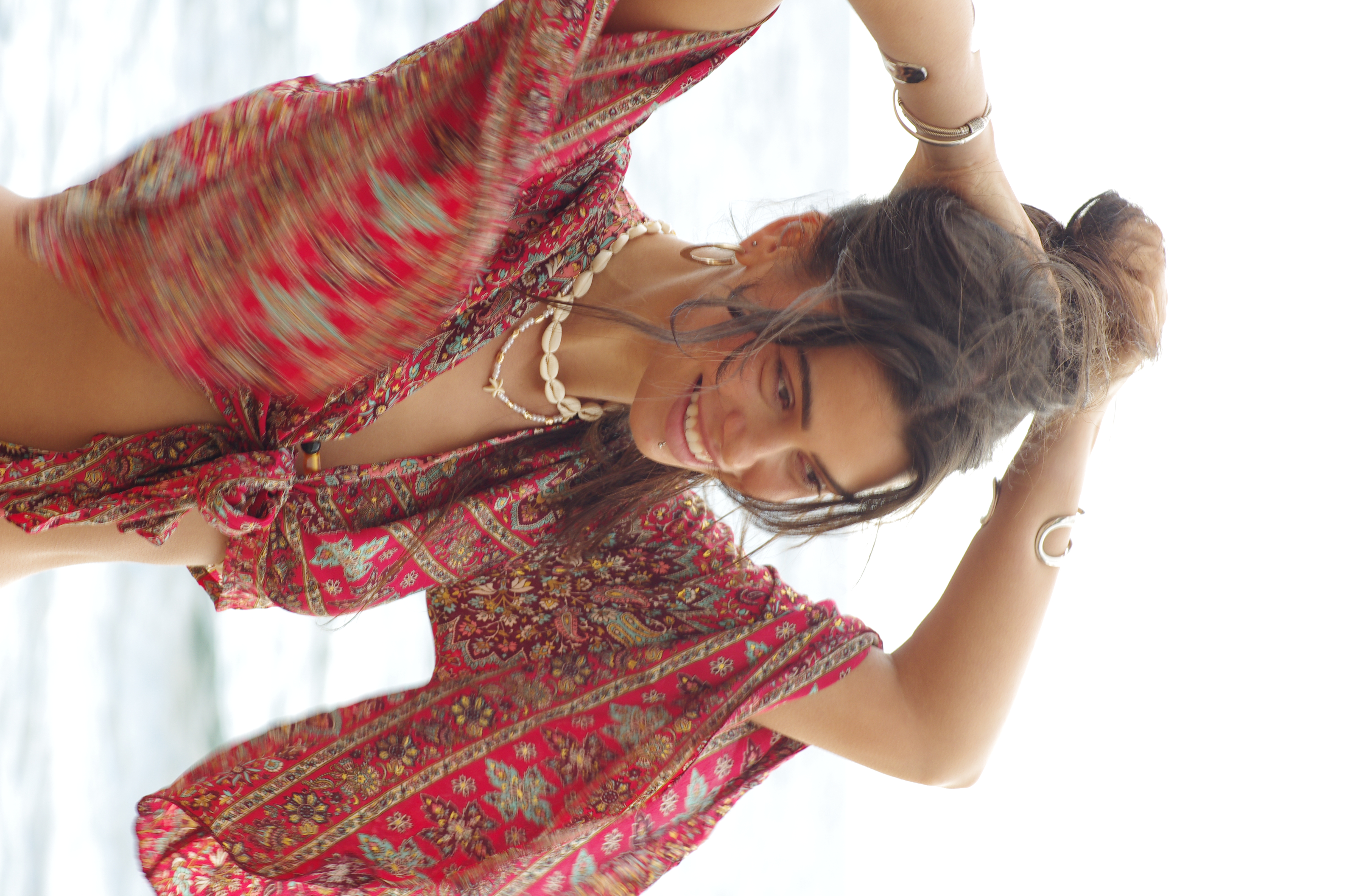 Wrap Shirt with gold details in hot pink