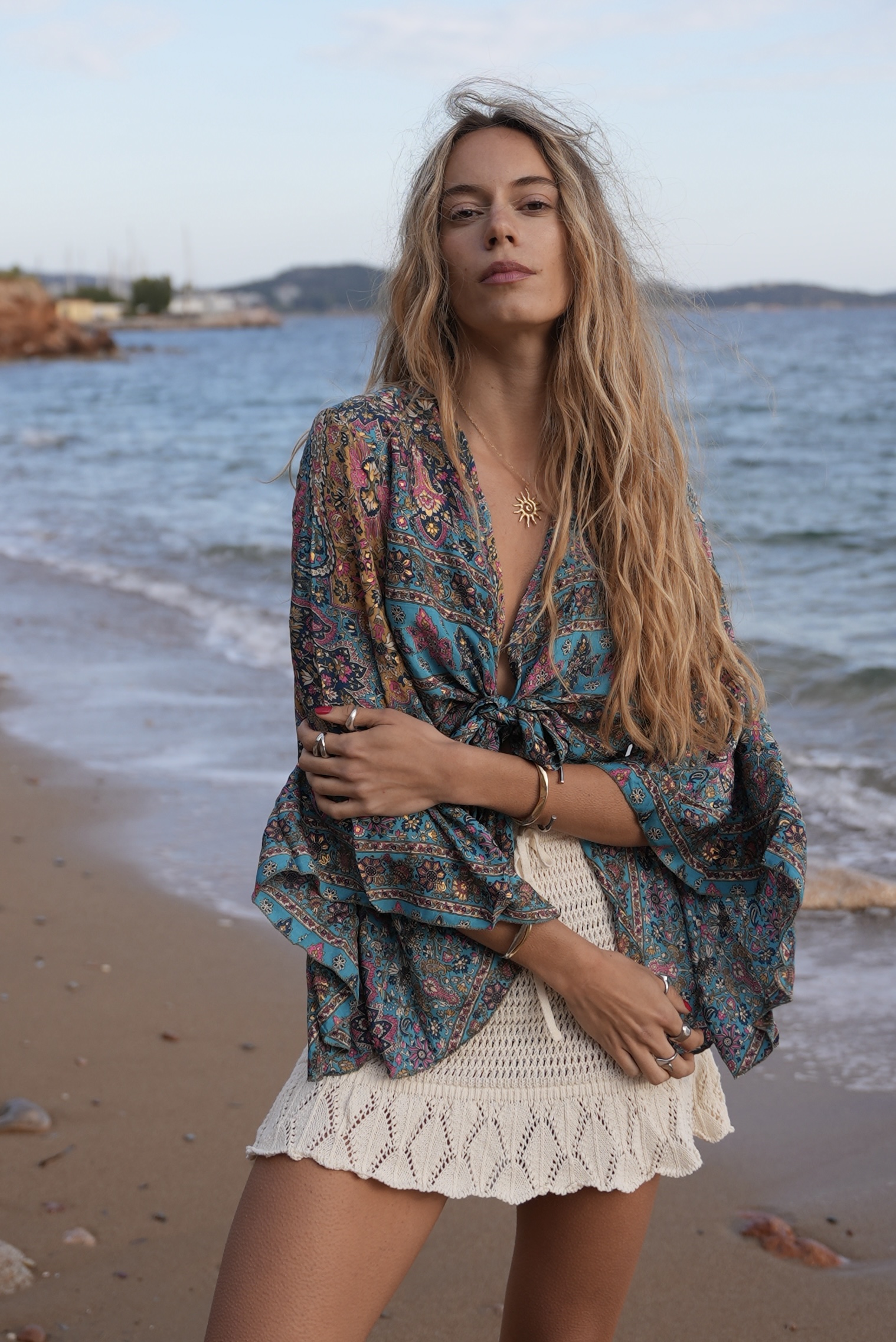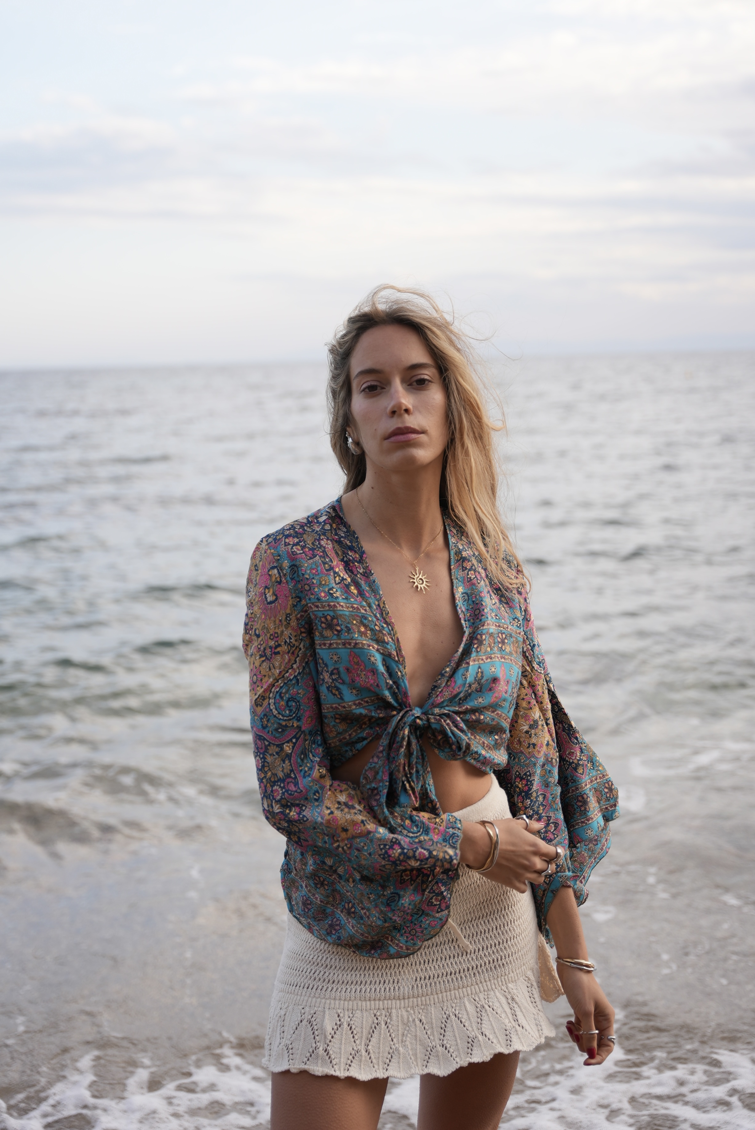 Wrap Shirt with gold details in ciel