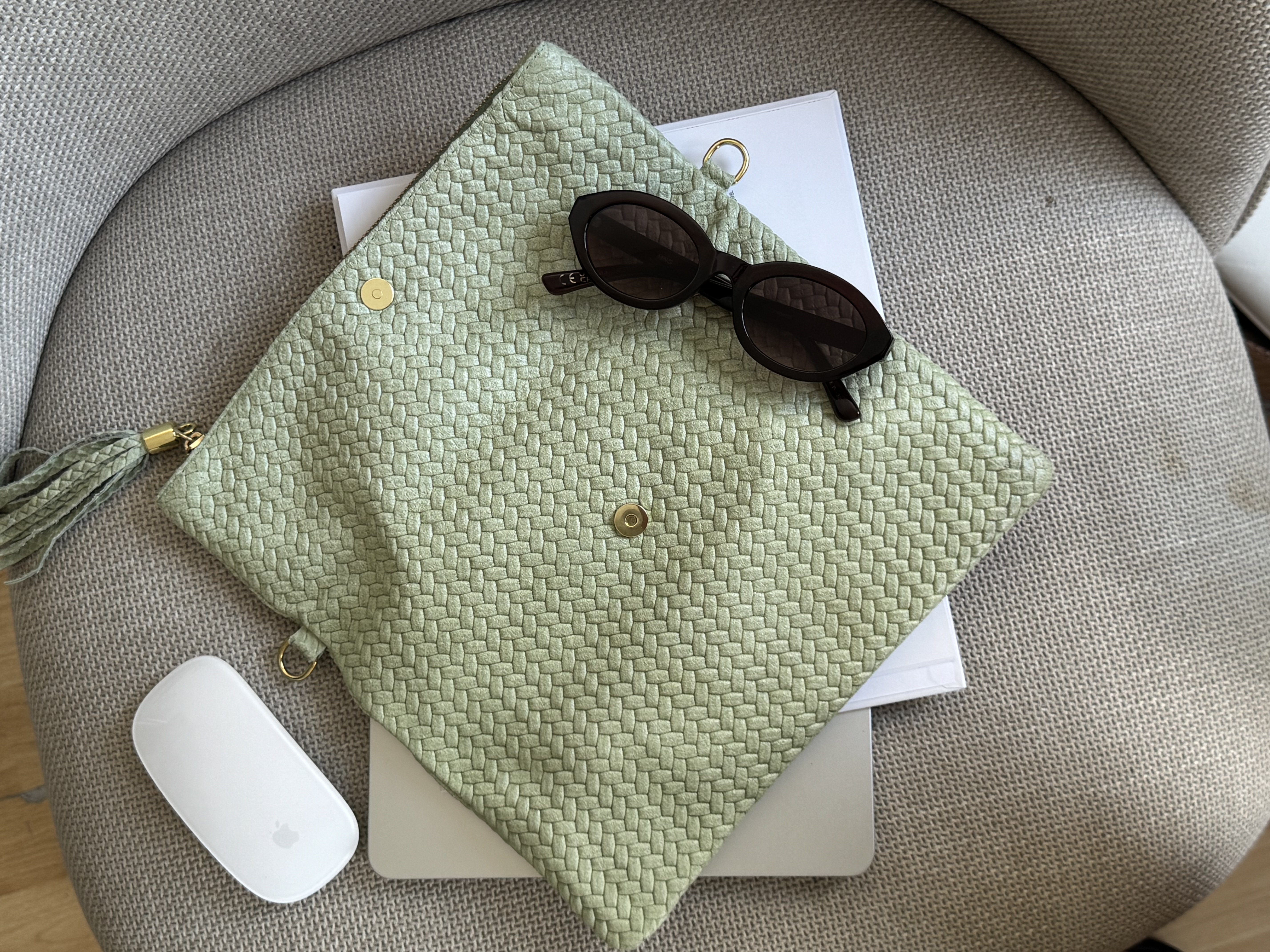 Genuine Leather Boho flap bag with adjustable strap in pistachio